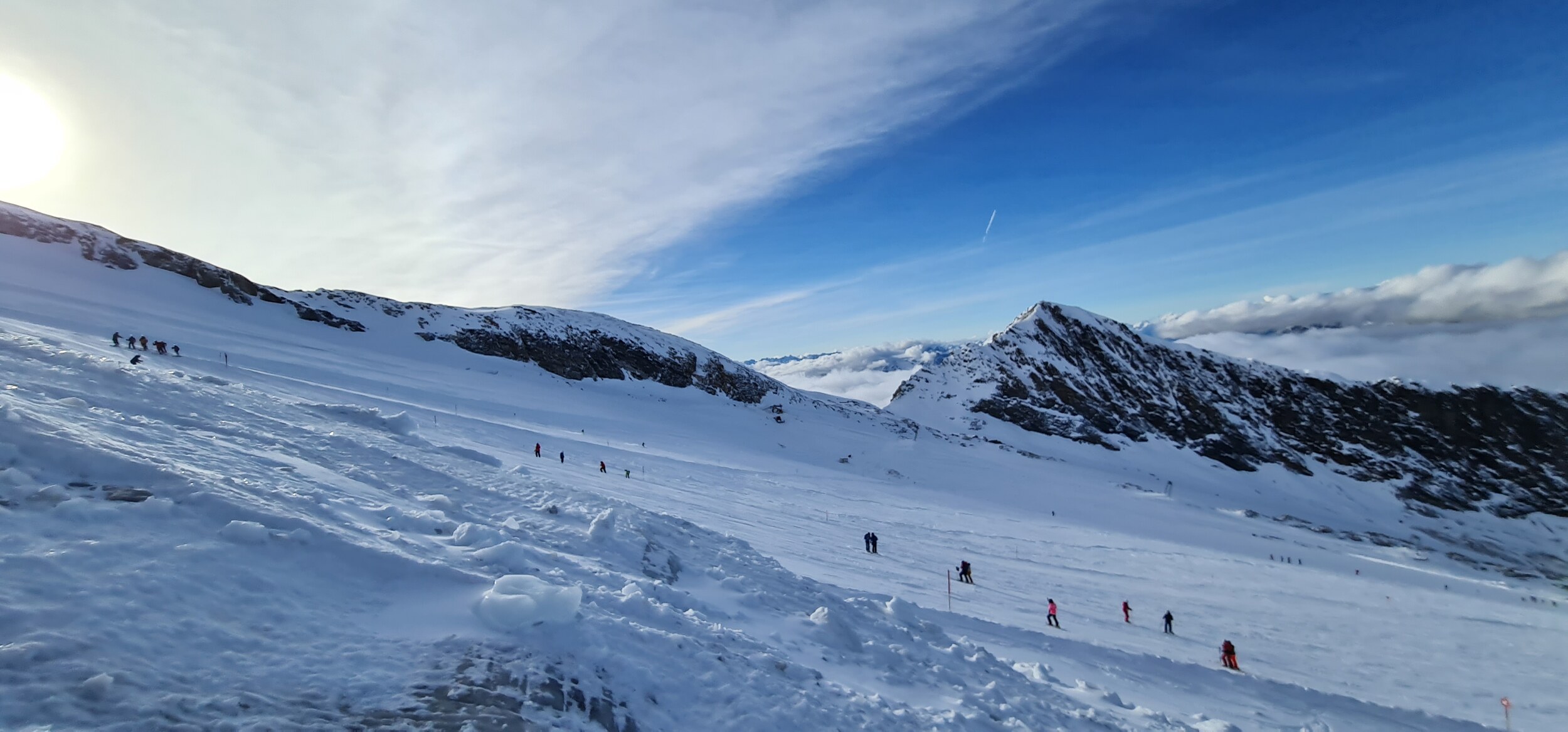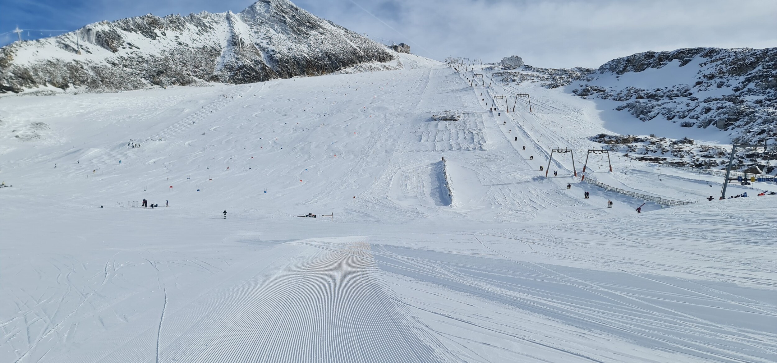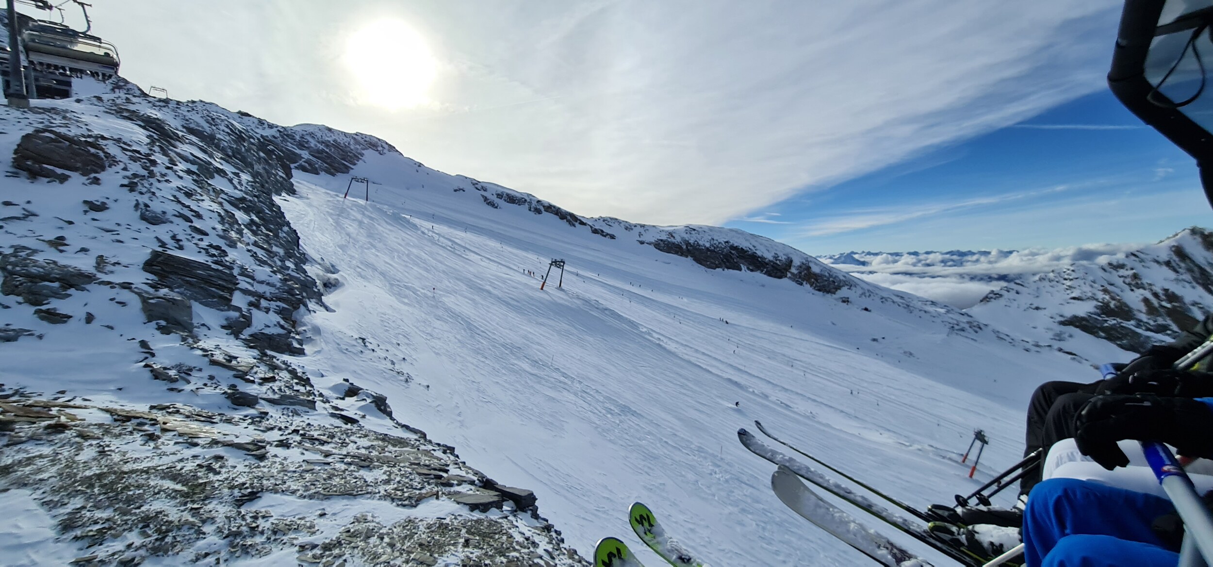 Nachdem ich den November Stress auf den Gletschern vermieden habe, geht's heute wieder los. Pünktlich ist die Abfahrt zur Sommerbergalm offen. Los ist wider Erwarten gar nicht so viel...bitter kalt...