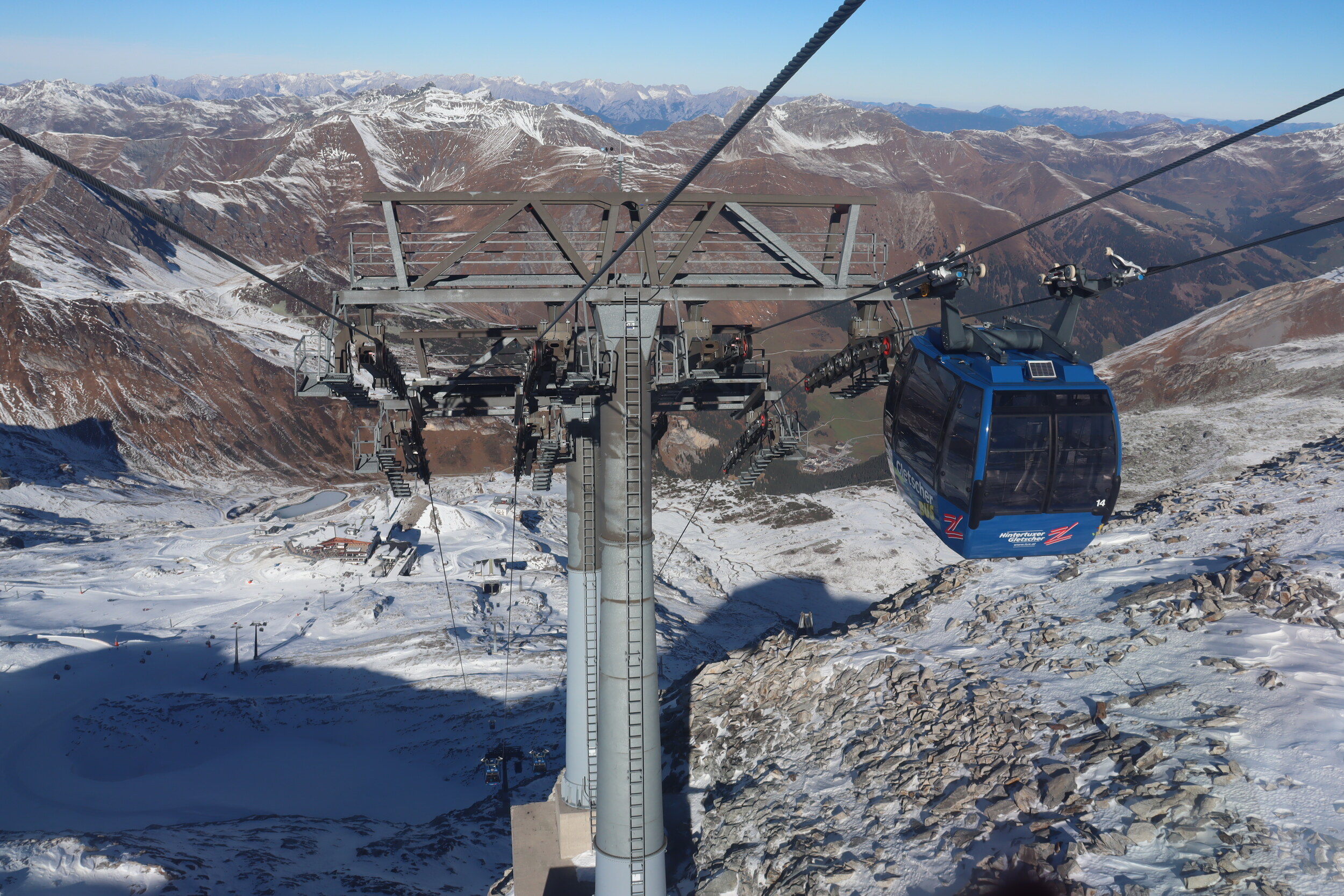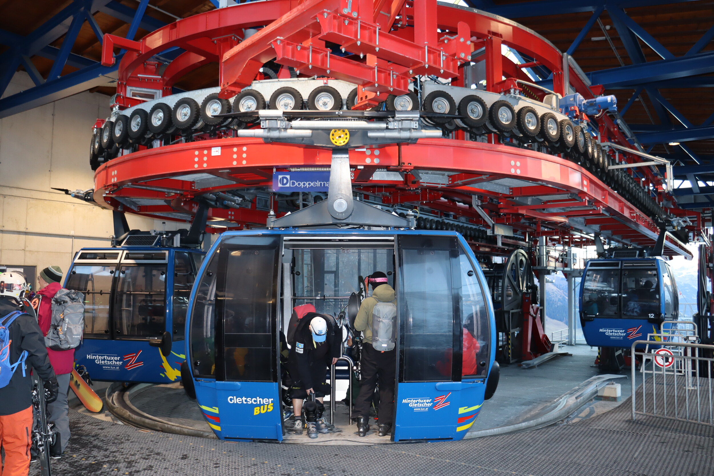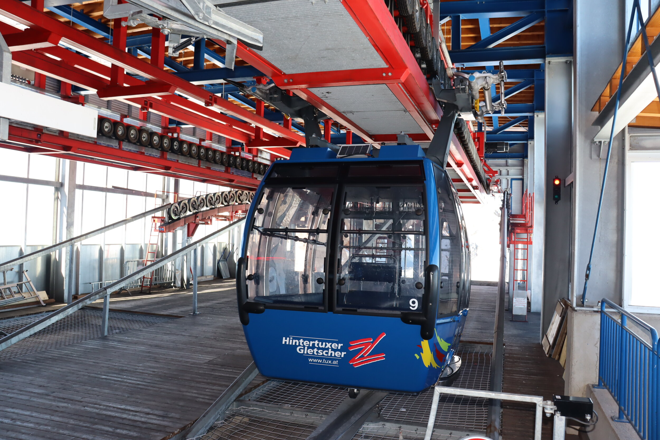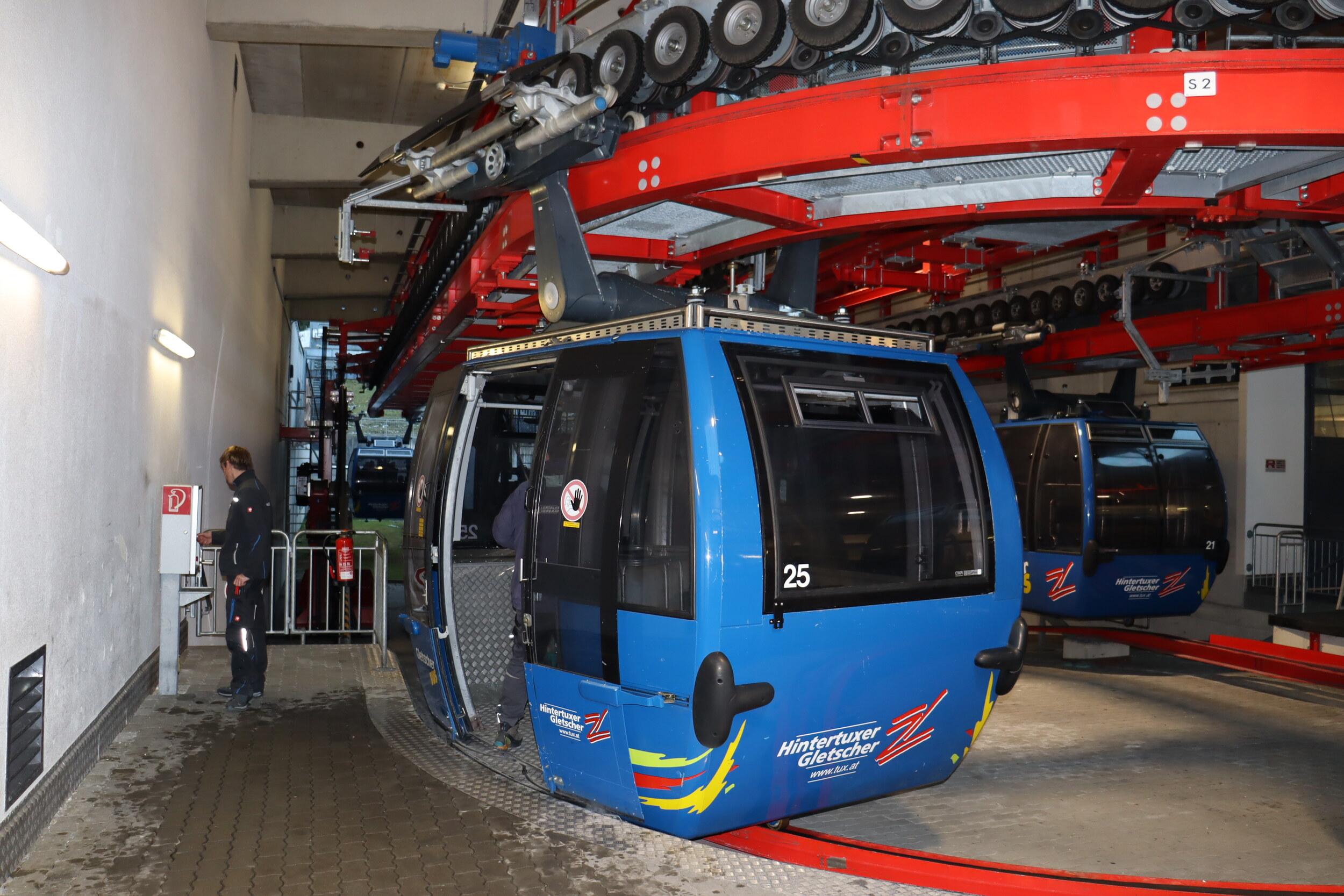 Wegen sonnige Fotos von Funitel zu machen (ich war vorher am Hintertux nur einmal im Sommer 2009 beim nicht so gutes Wetter, deshalb fehlte mir dies), beim Bergfahrt morgens bzw. Talfahrt spätnachmittags ist die Strecke noch/schon komplett im Schatten, deshalb gegen 12:30 eine extra Tal- und Bergfahrt gemacht.
