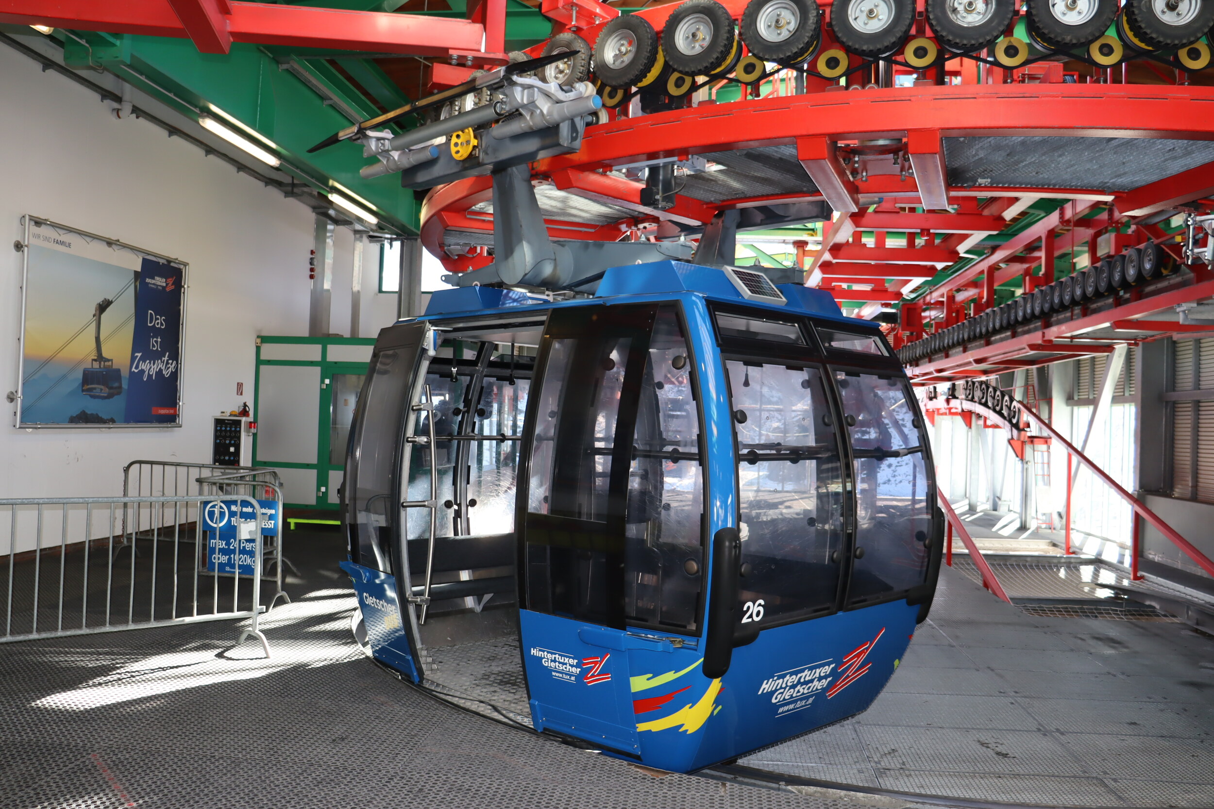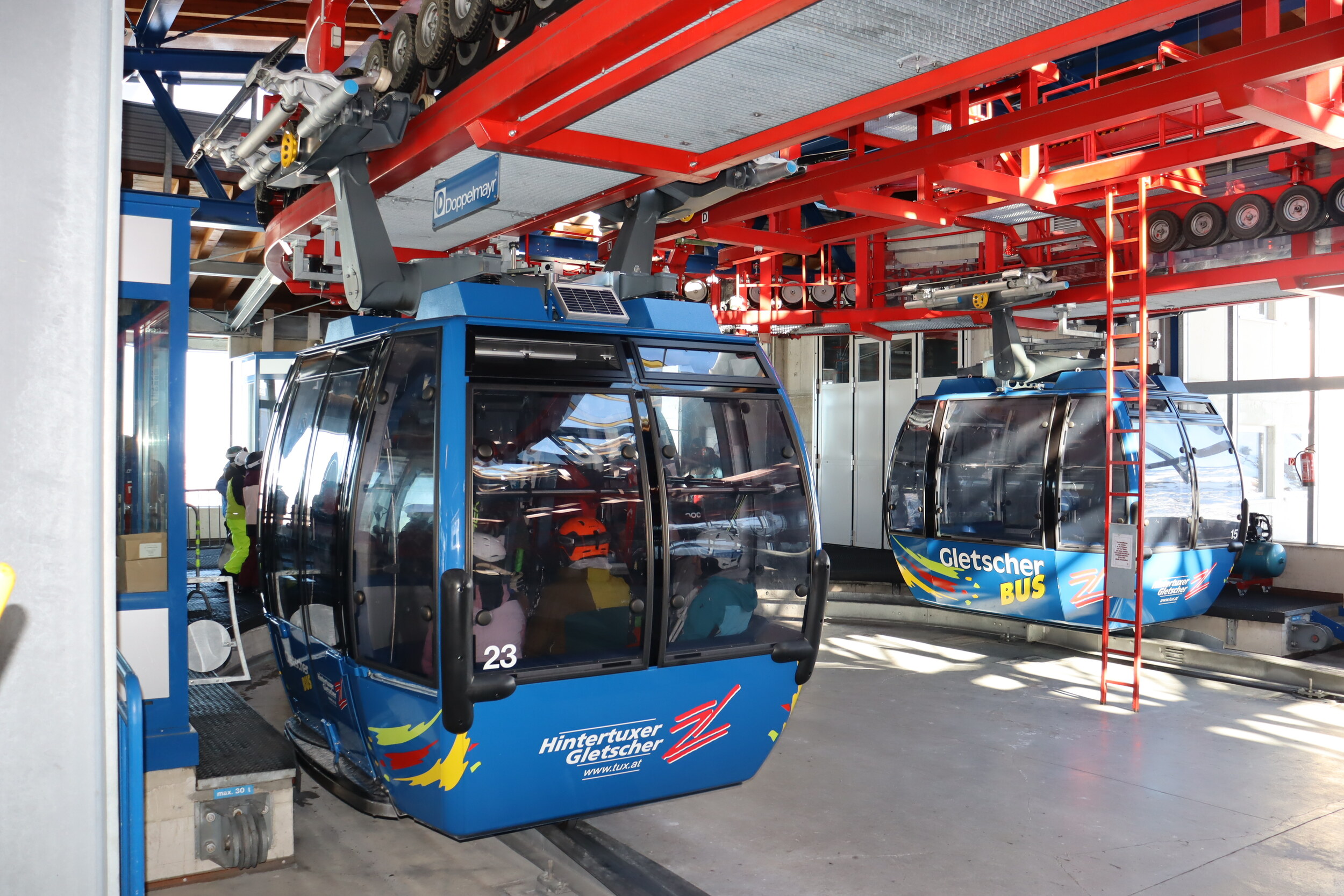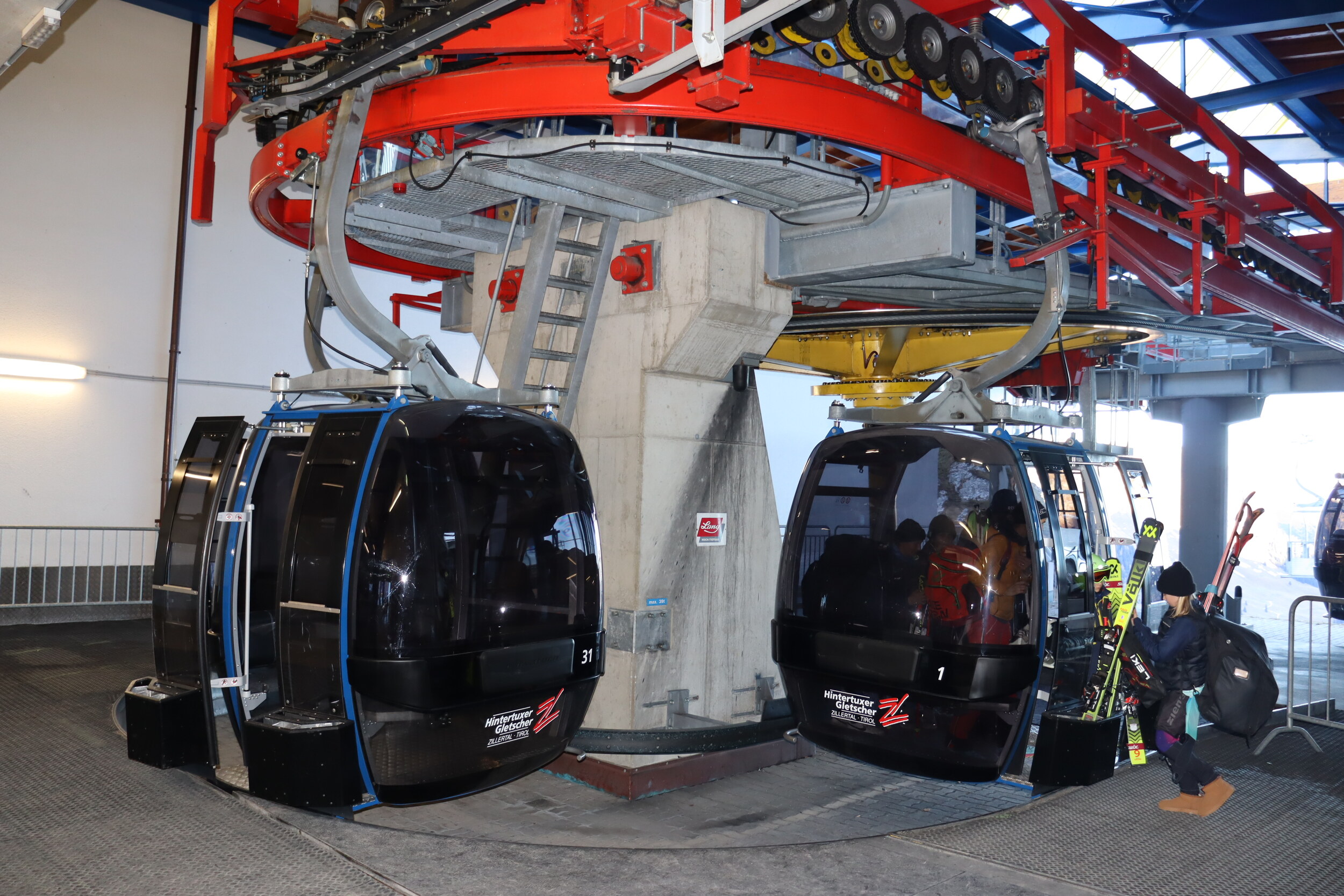 Wegen sonnige Fotos von Funitel zu machen (ich war vorher am Hintertux nur einmal im Sommer 2009 beim nicht so gutes Wetter, deshalb fehlte mir dies), beim Bergfahrt morgens bzw. Talfahrt spätnachmittags ist die Strecke noch/schon komplett im Schatten, deshalb gegen 12:30 eine extra Tal- und Bergfahrt gemacht.