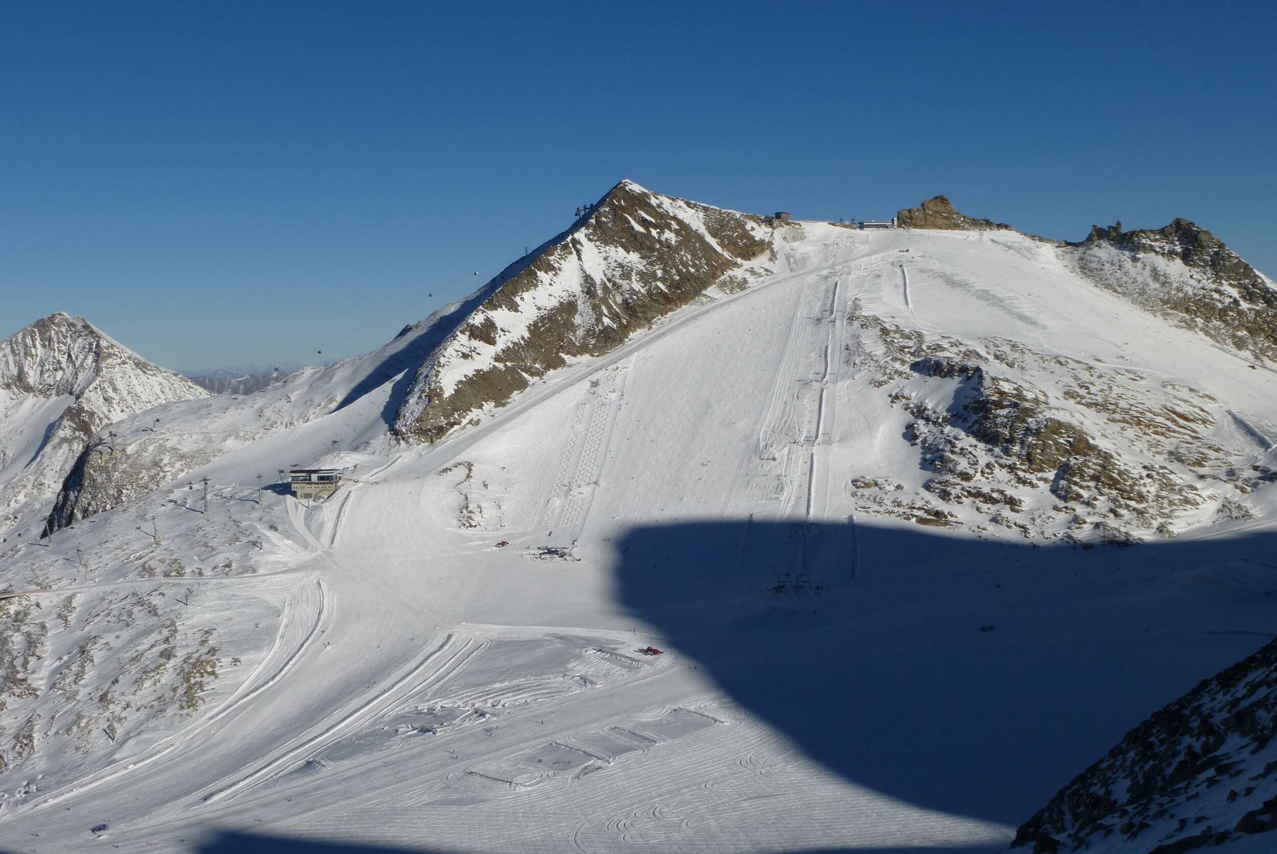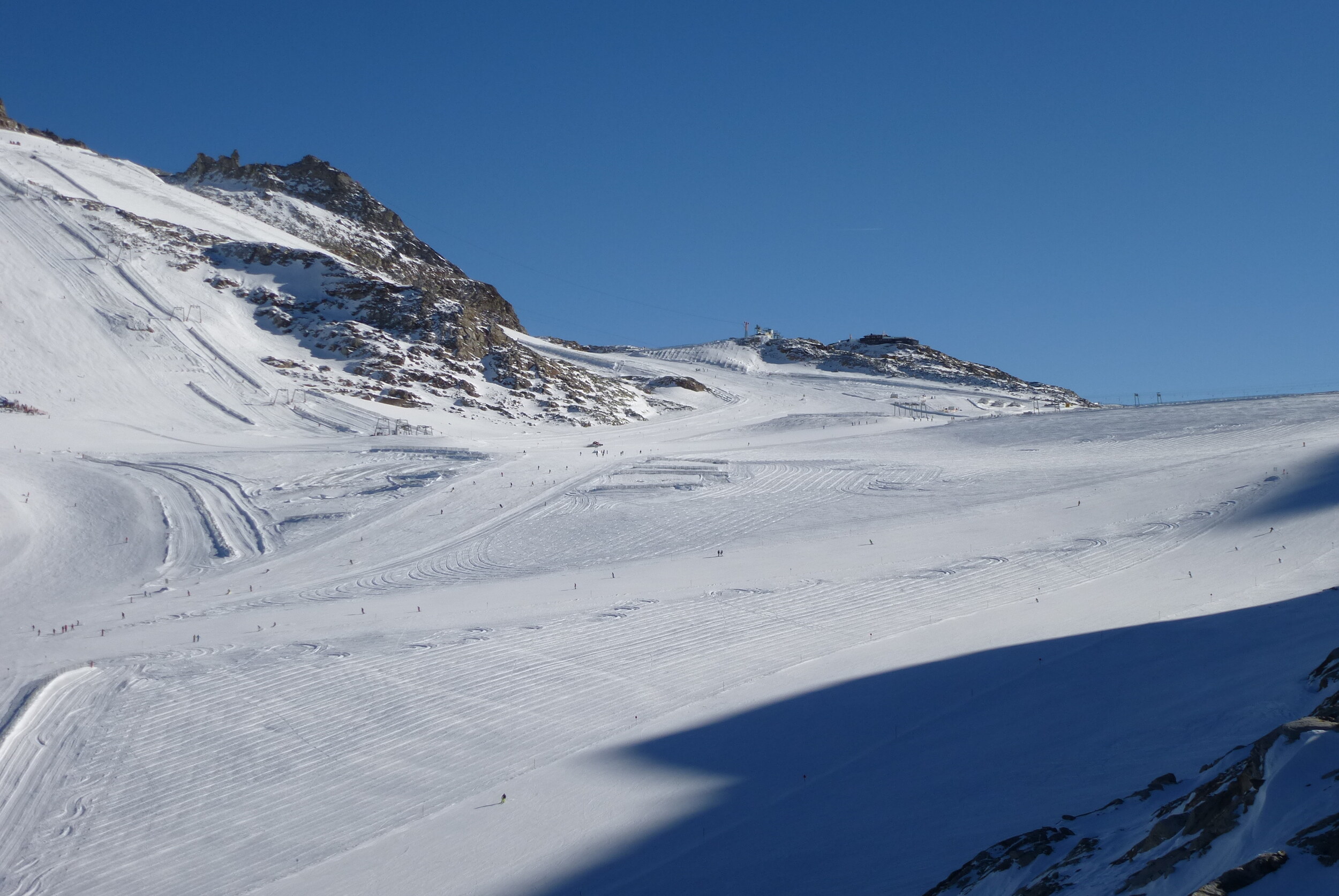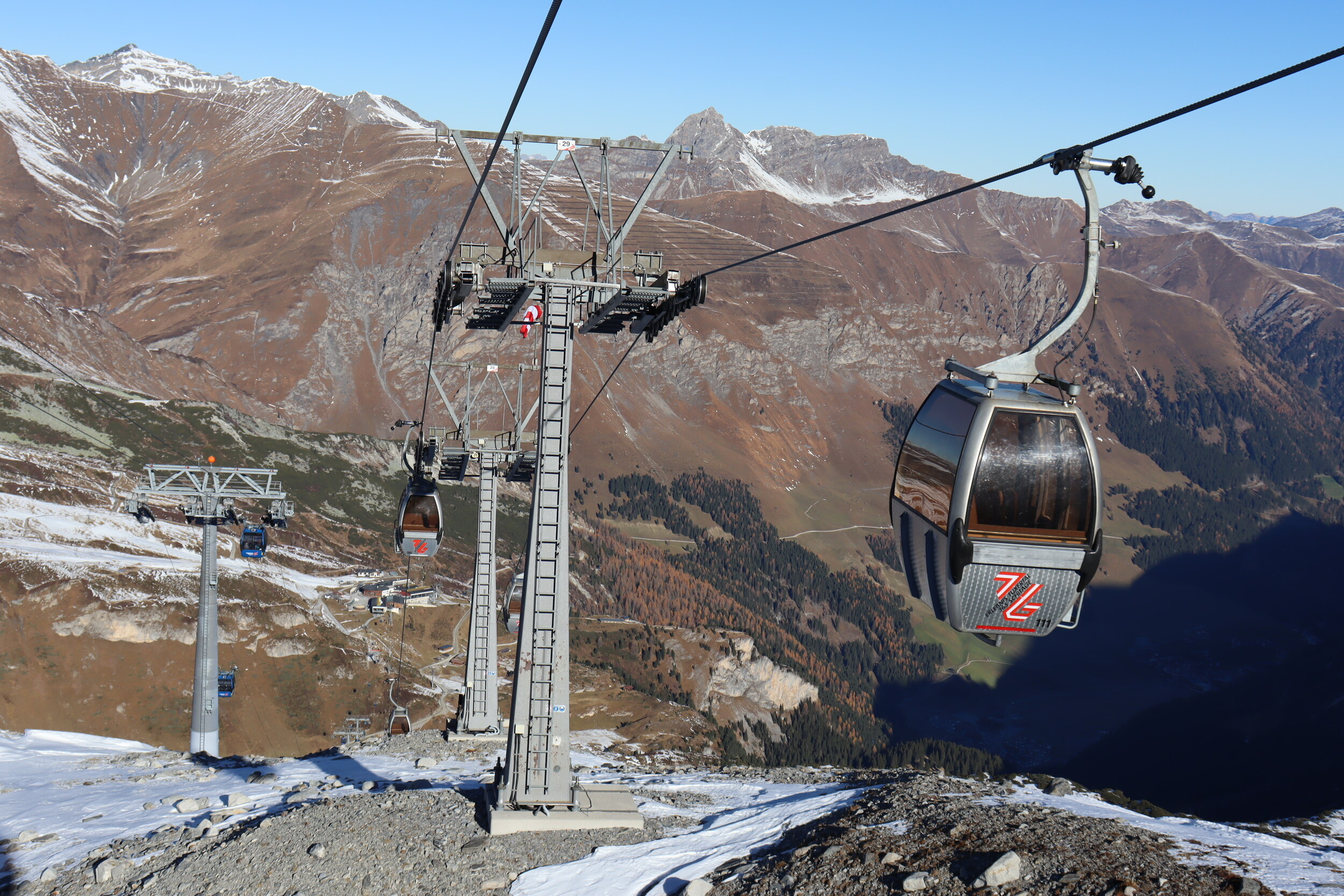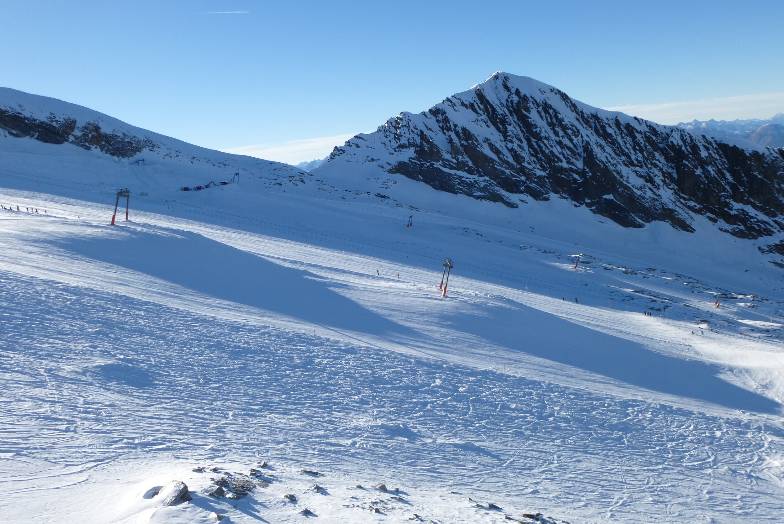 Wegen sonnige Fotos von Funitel zu machen (ich war vorher am Hintertux nur einmal im Sommer 2009 beim nicht so gutes Wetter, deshalb fehlte mir dies), beim Bergfahrt morgens bzw. Talfahrt spätnachmittags ist die Strecke noch/schon komplett im Schatten, deshalb gegen 12:30 eine extra Tal- und Bergfahrt gemacht.