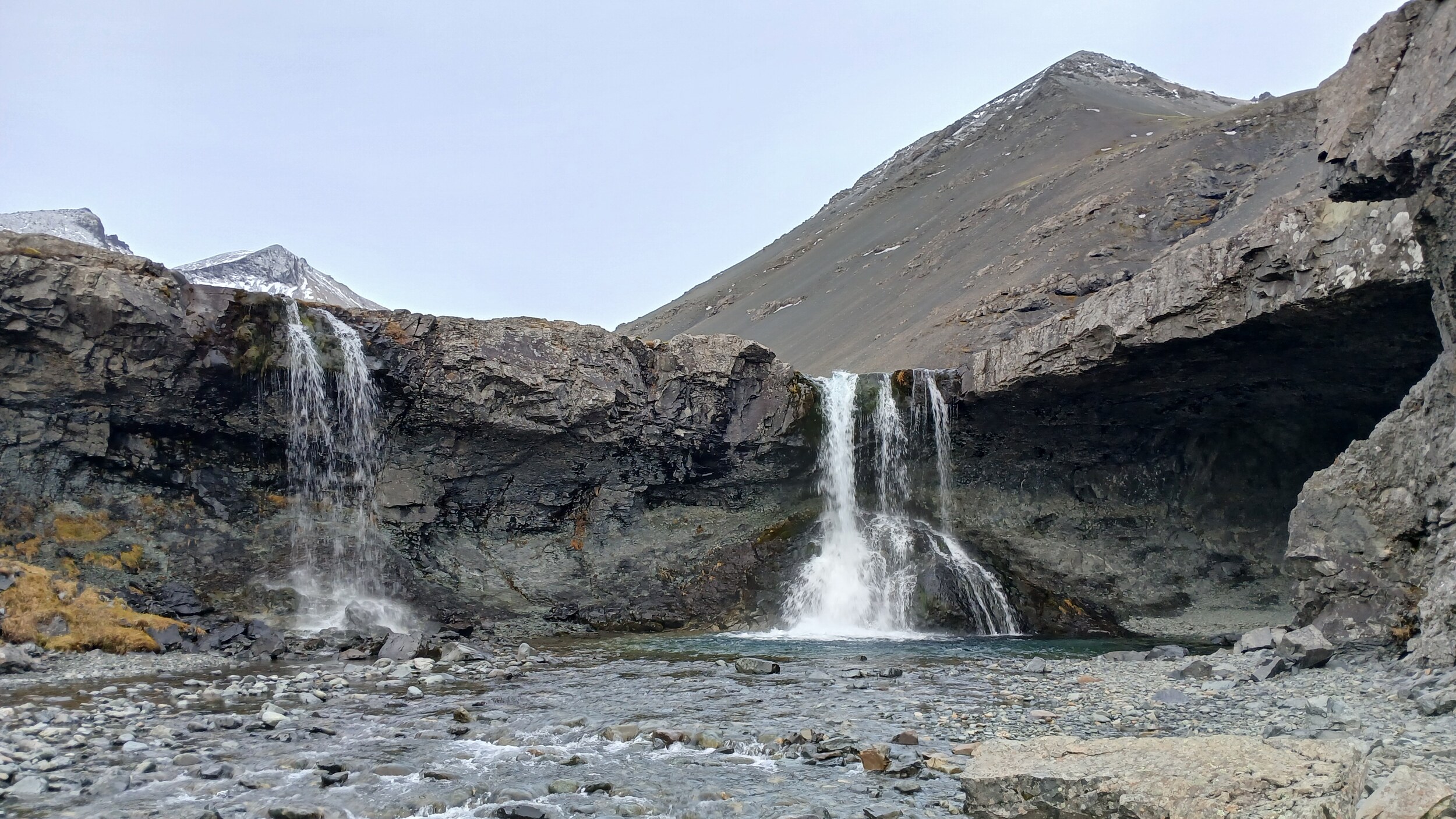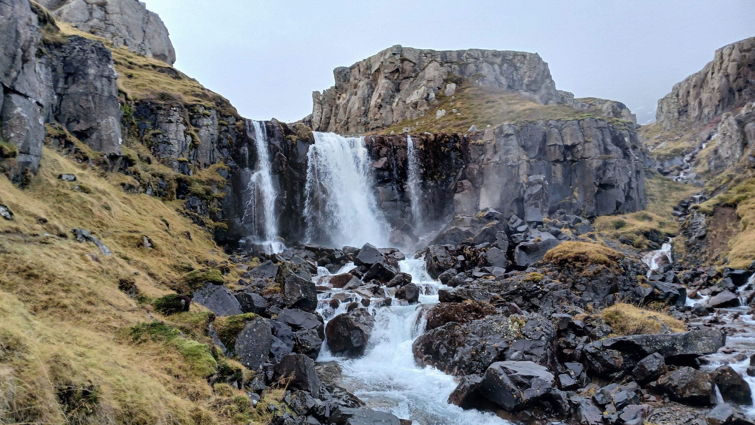 Der eigentliche Skútafoss fällt ein paar Meter weiter hinten über zwei Wasserfälle in ein kleines Becken