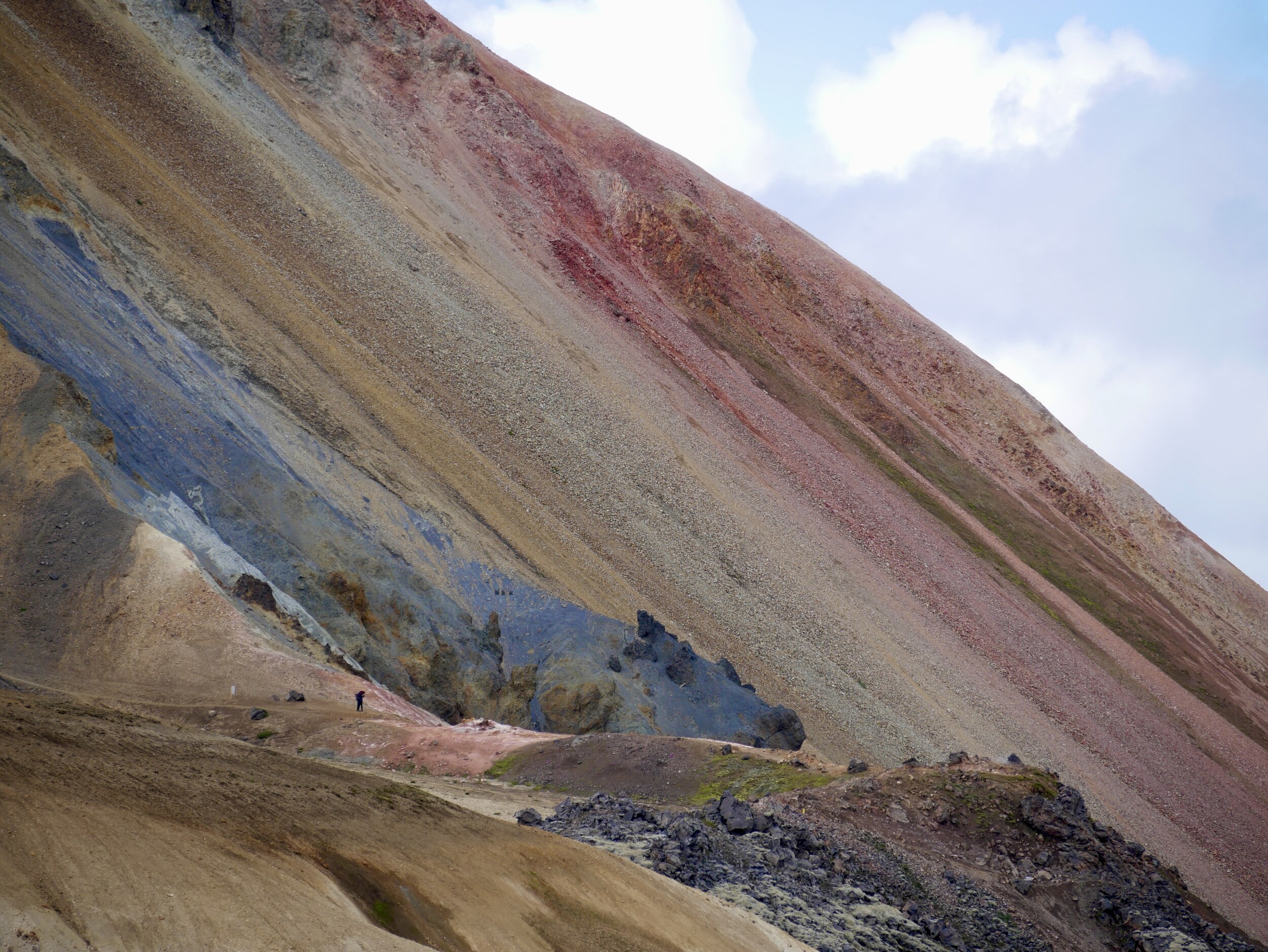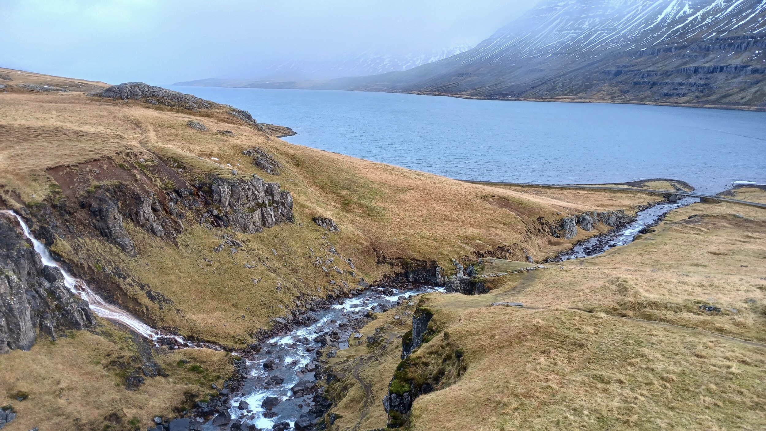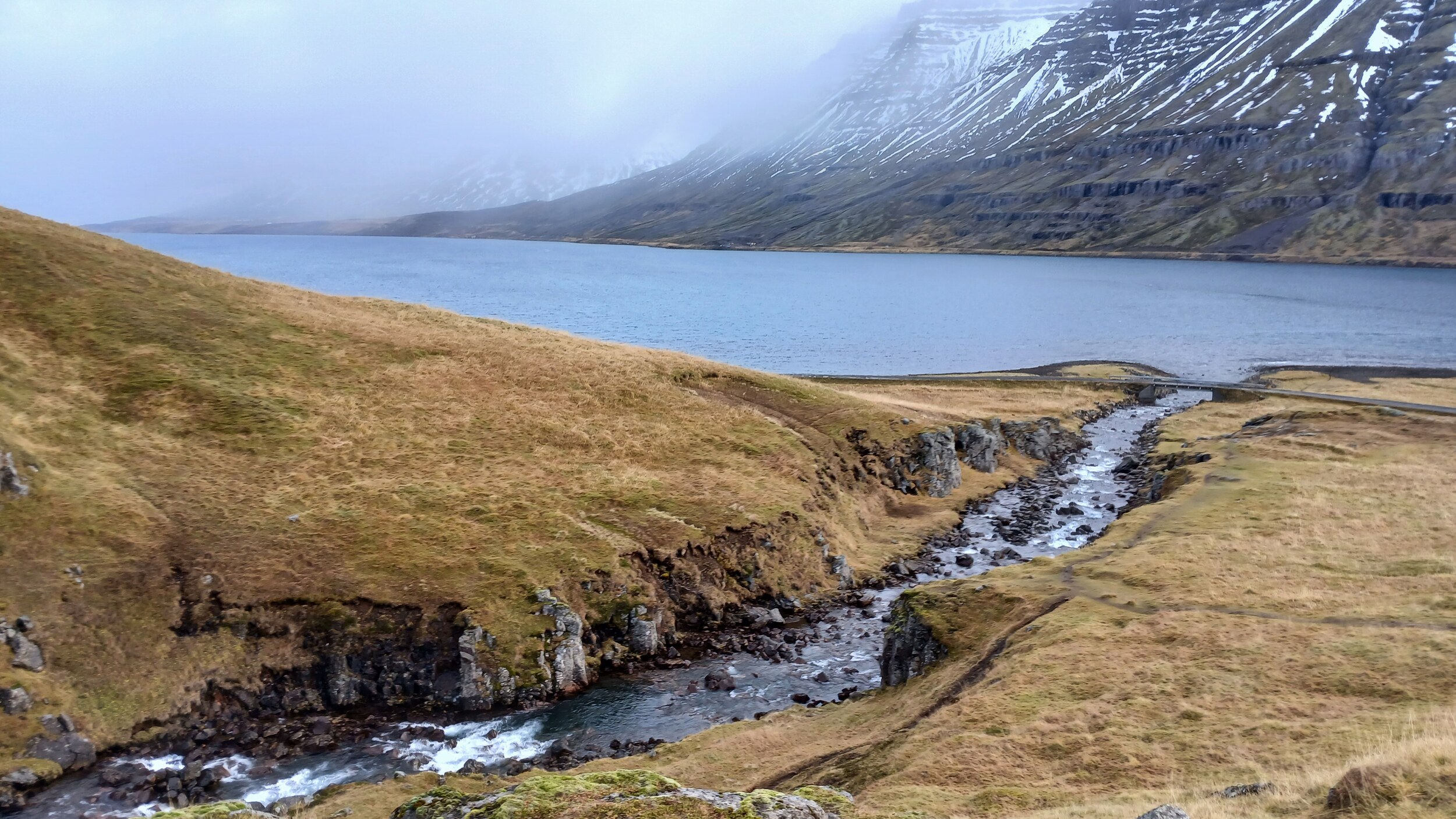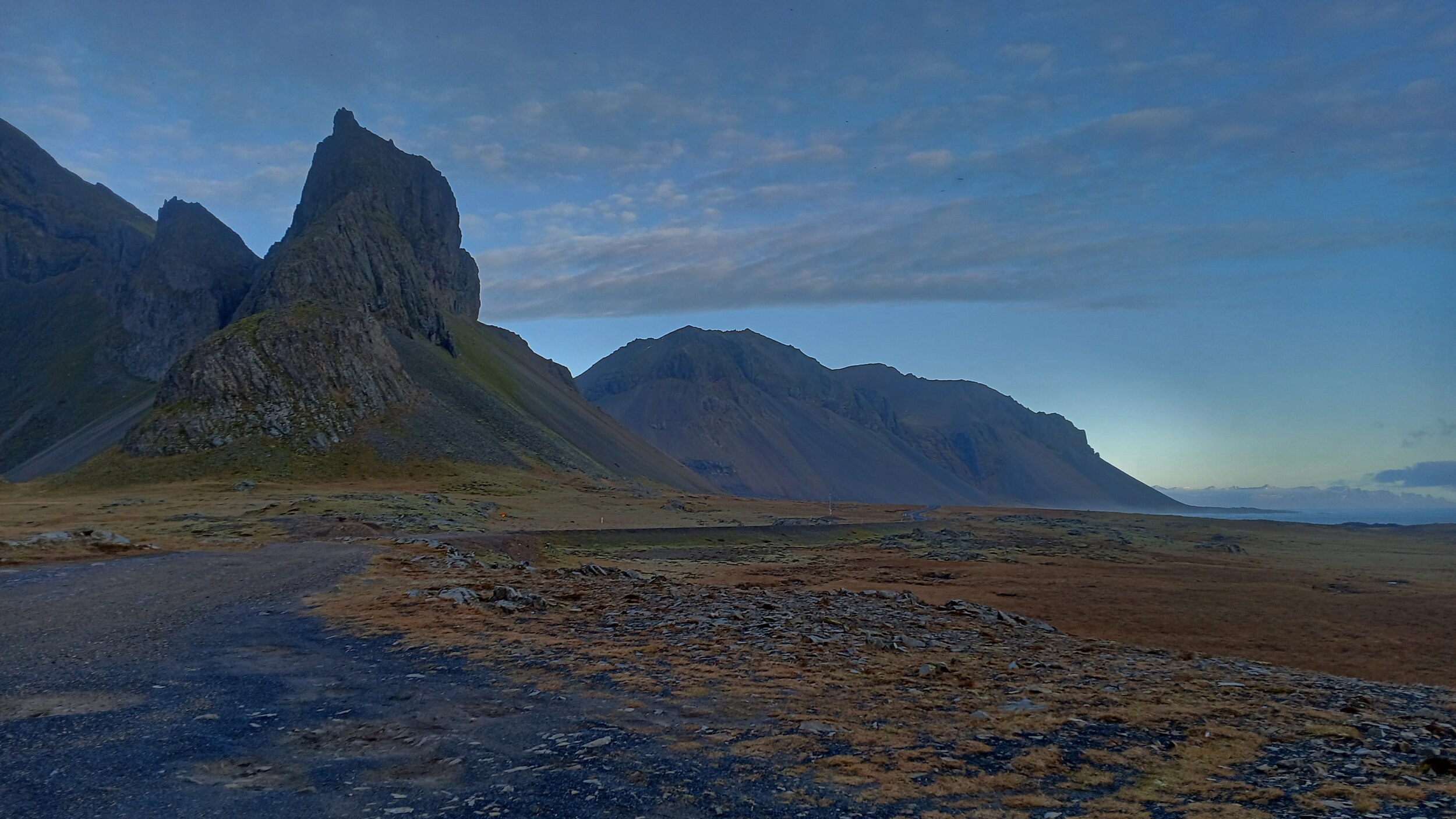Ehe für die Ringstraße ein Tunnel gebaut wurde, ging es früher über den Pass Almannaskarð. Der Pass war wohl das steilste Stück der Ringstraße. V.a. die Südzufahrt ist wirklich enorm steil. Daher ist die verbliebene Schotterstraße wohl auch nur offiziell von Norden her befahrbar, wobei die Sperrungen der Südauffahrt, die es wohl üblicherweise gibt, bei unserem Besuch nicht da waren.