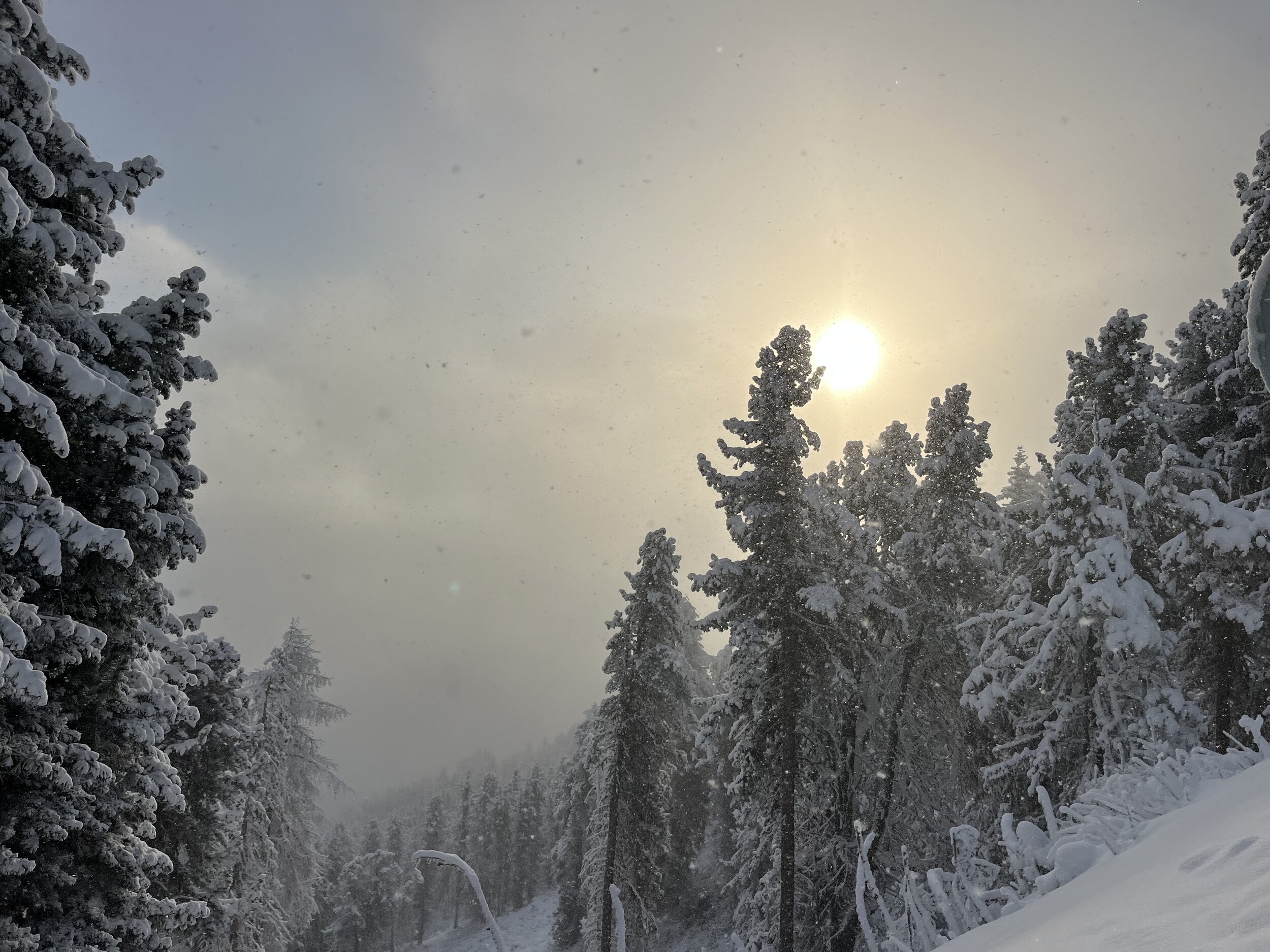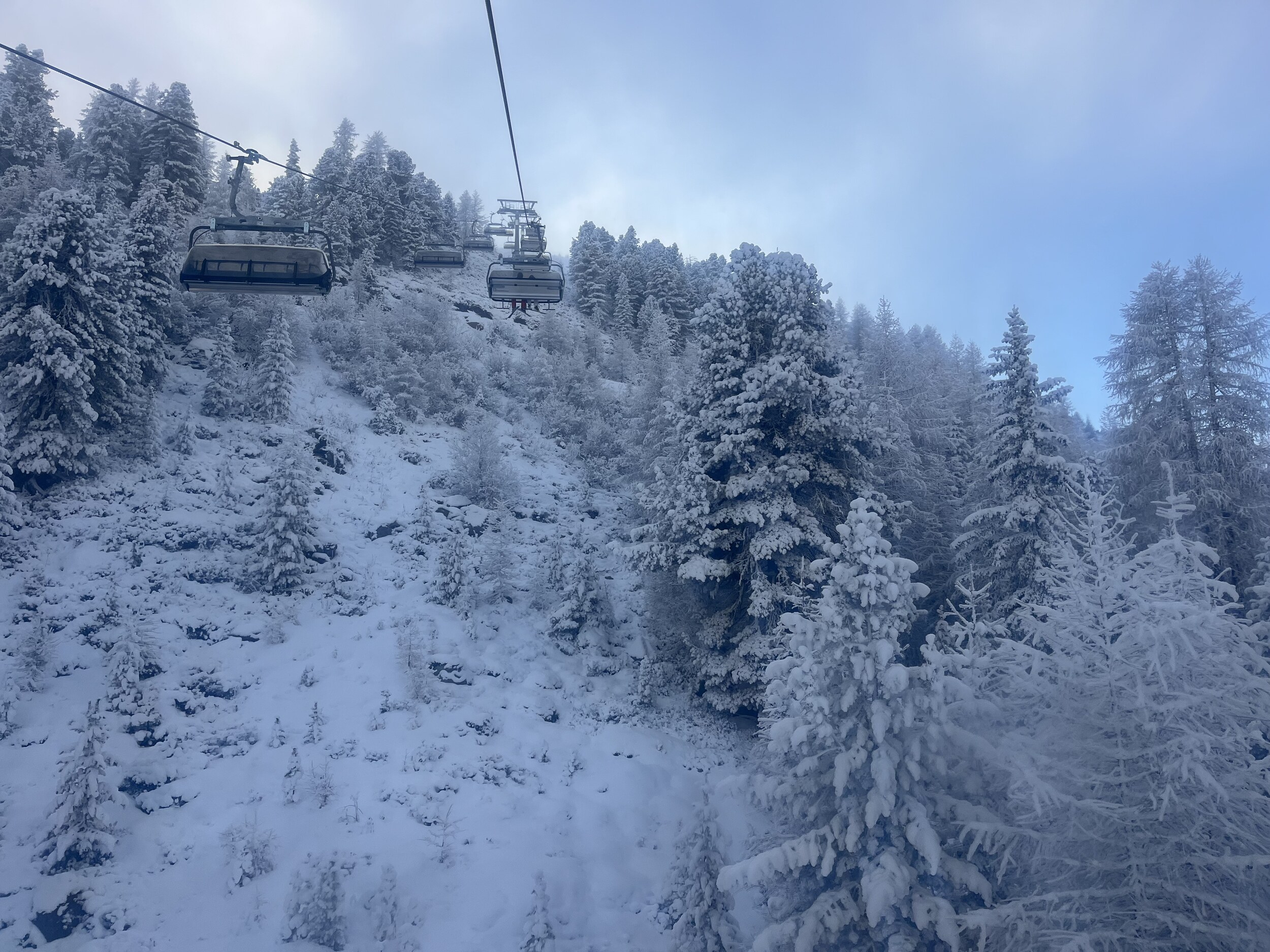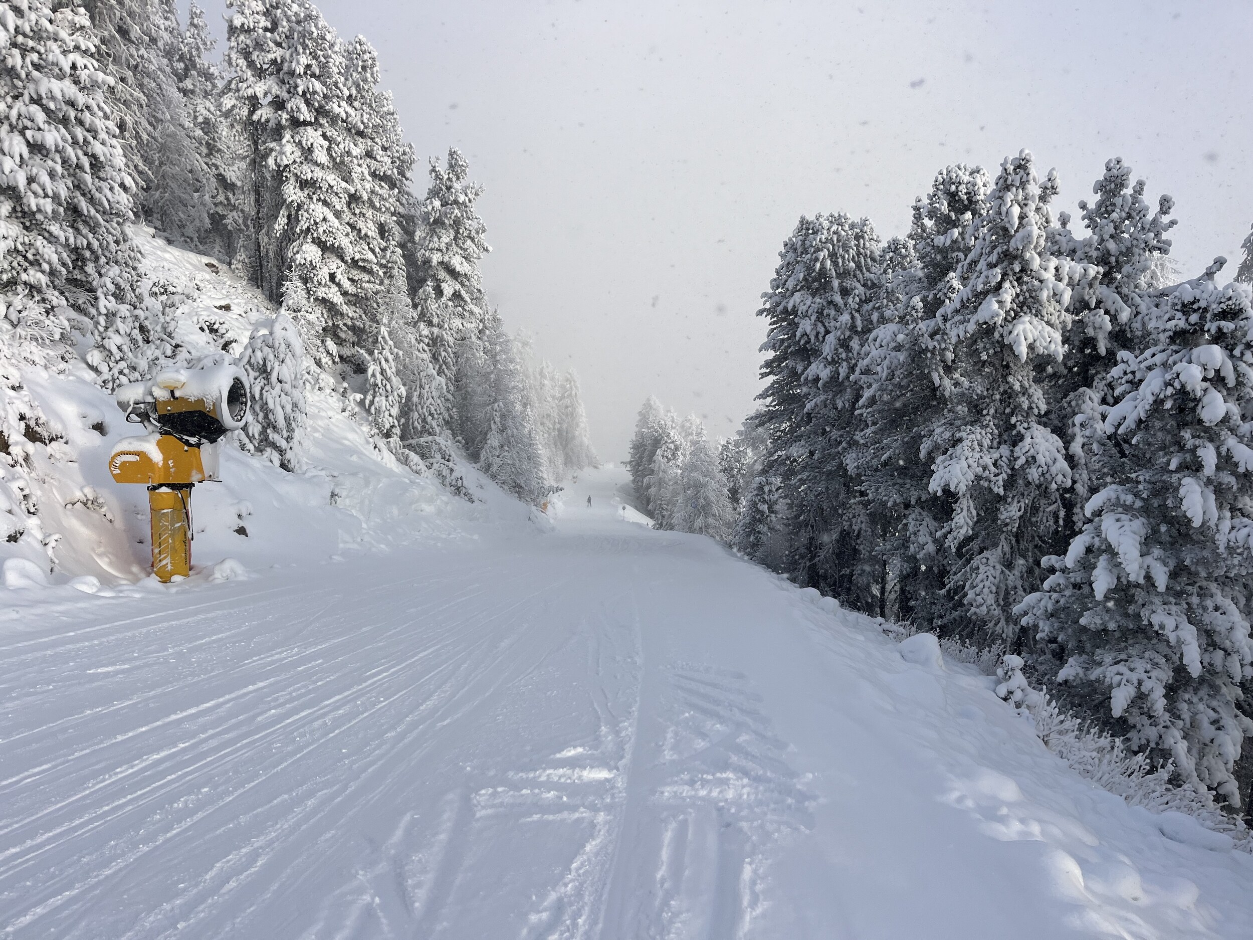 Im Bereich des Nebels hat es etwas Neuschnee auf der Piste.