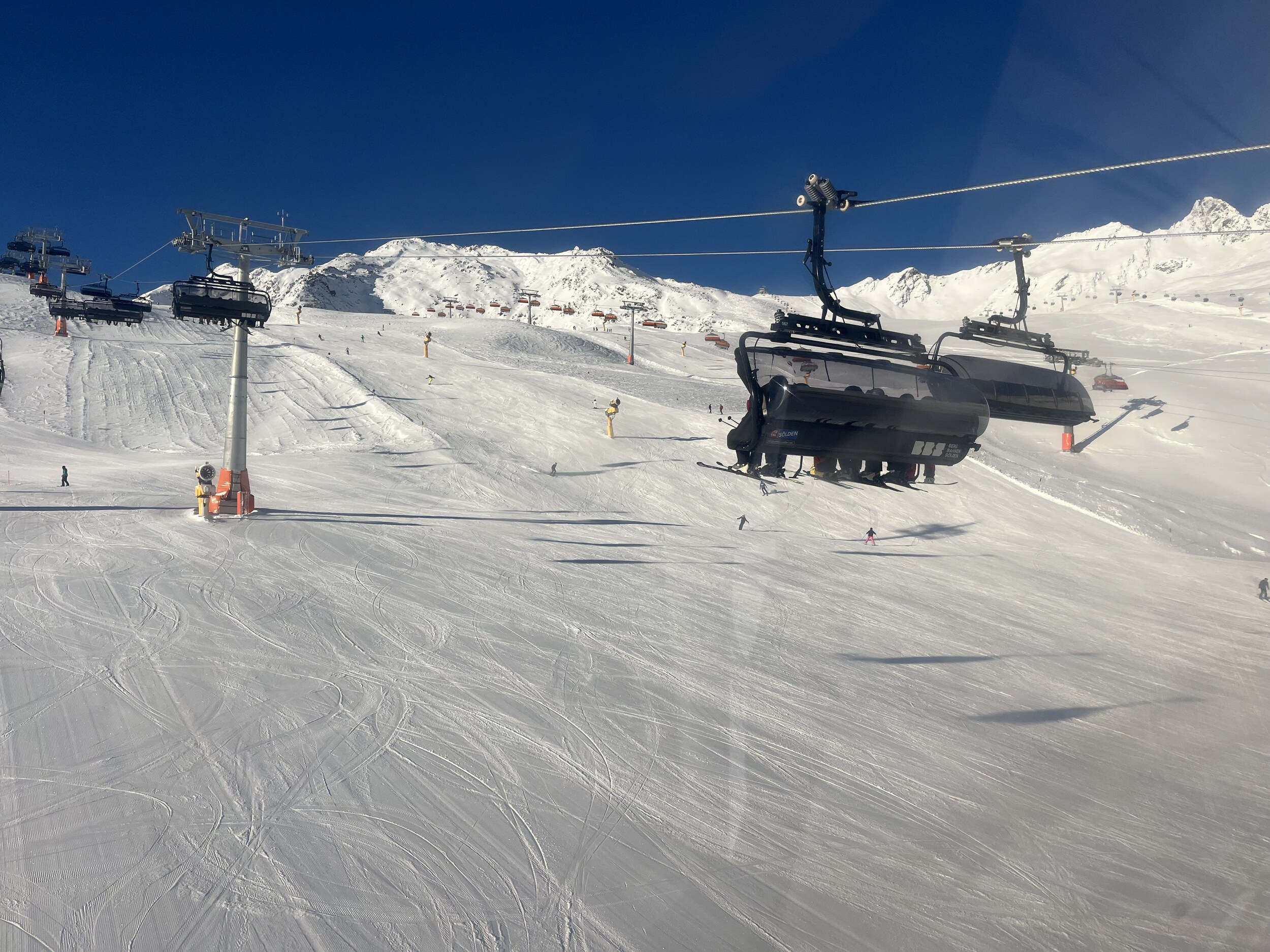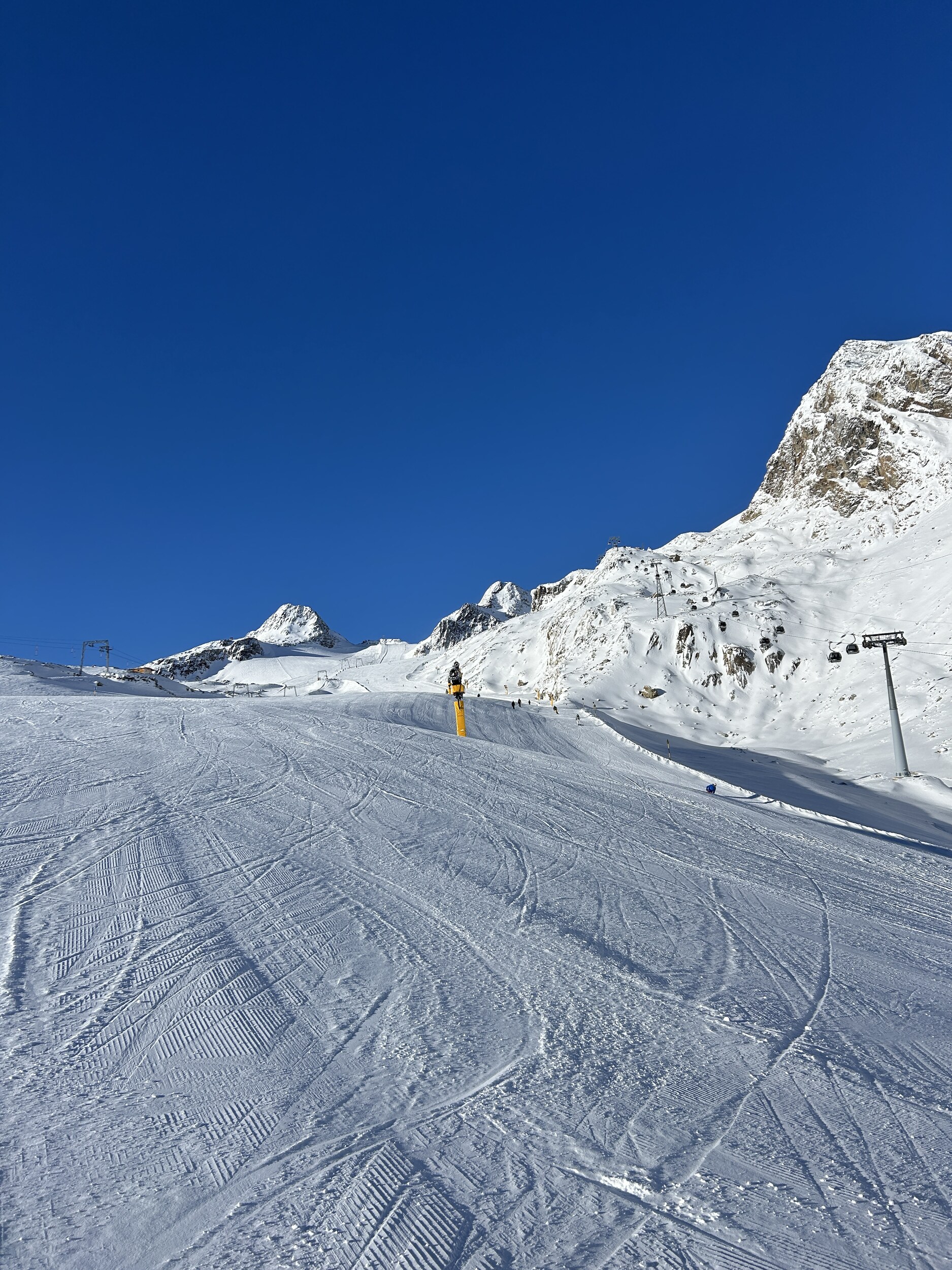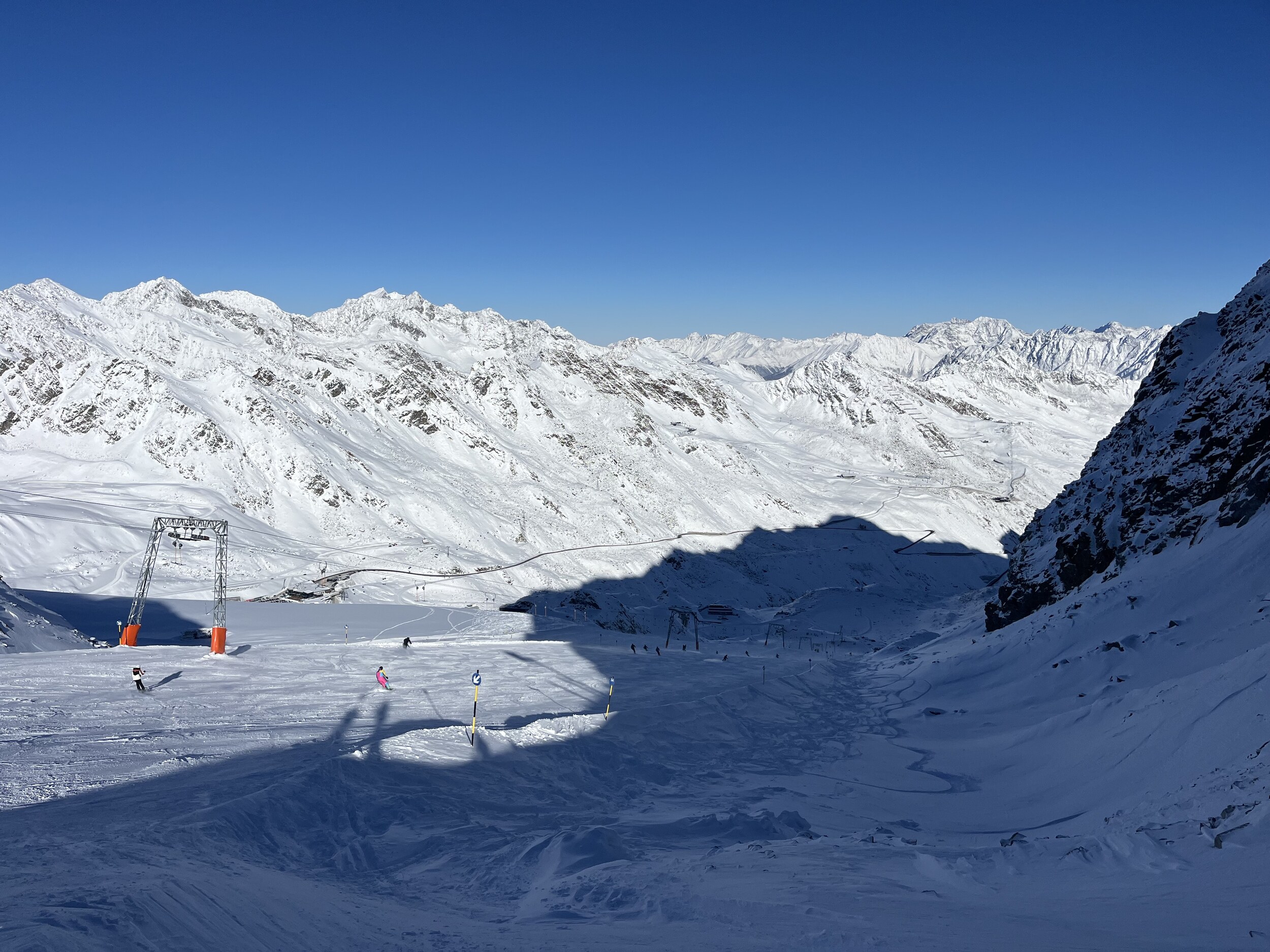 Nicht ganz so eisig kalt und etwas weniger los. Heute morgens am Giggijoch gewesen, da waren die Pisten auch echt gut. Am Gletscher aber deutlich griffiger und weniger Knollen.