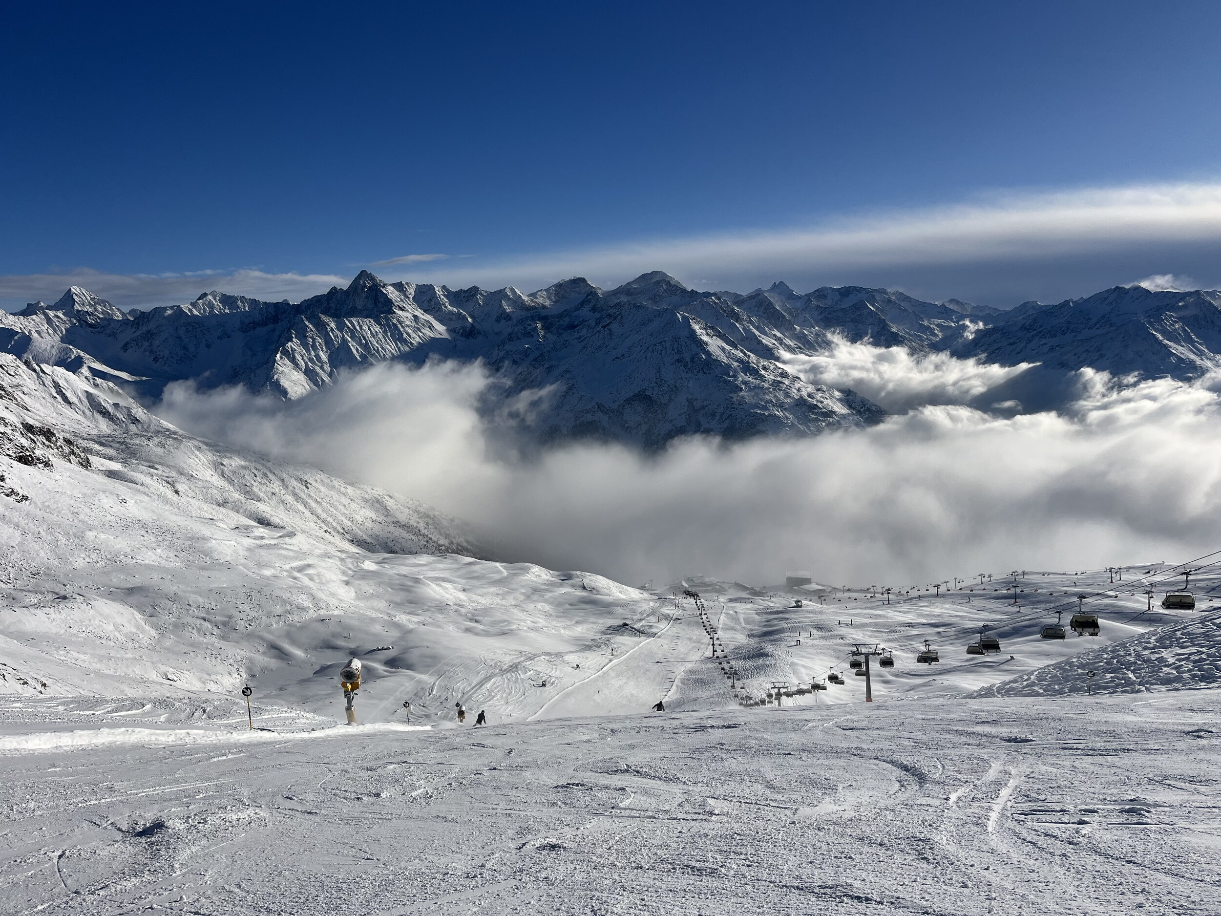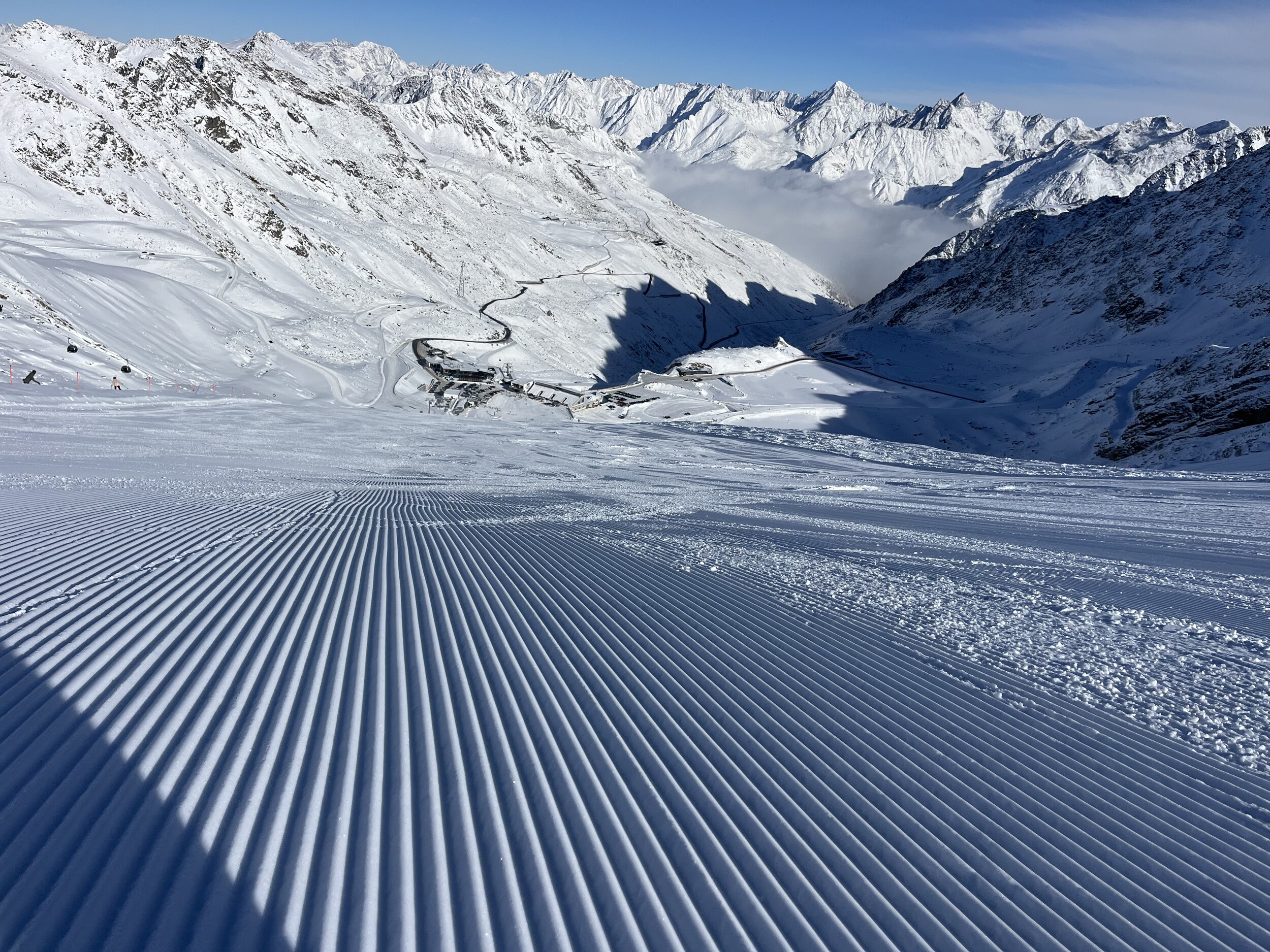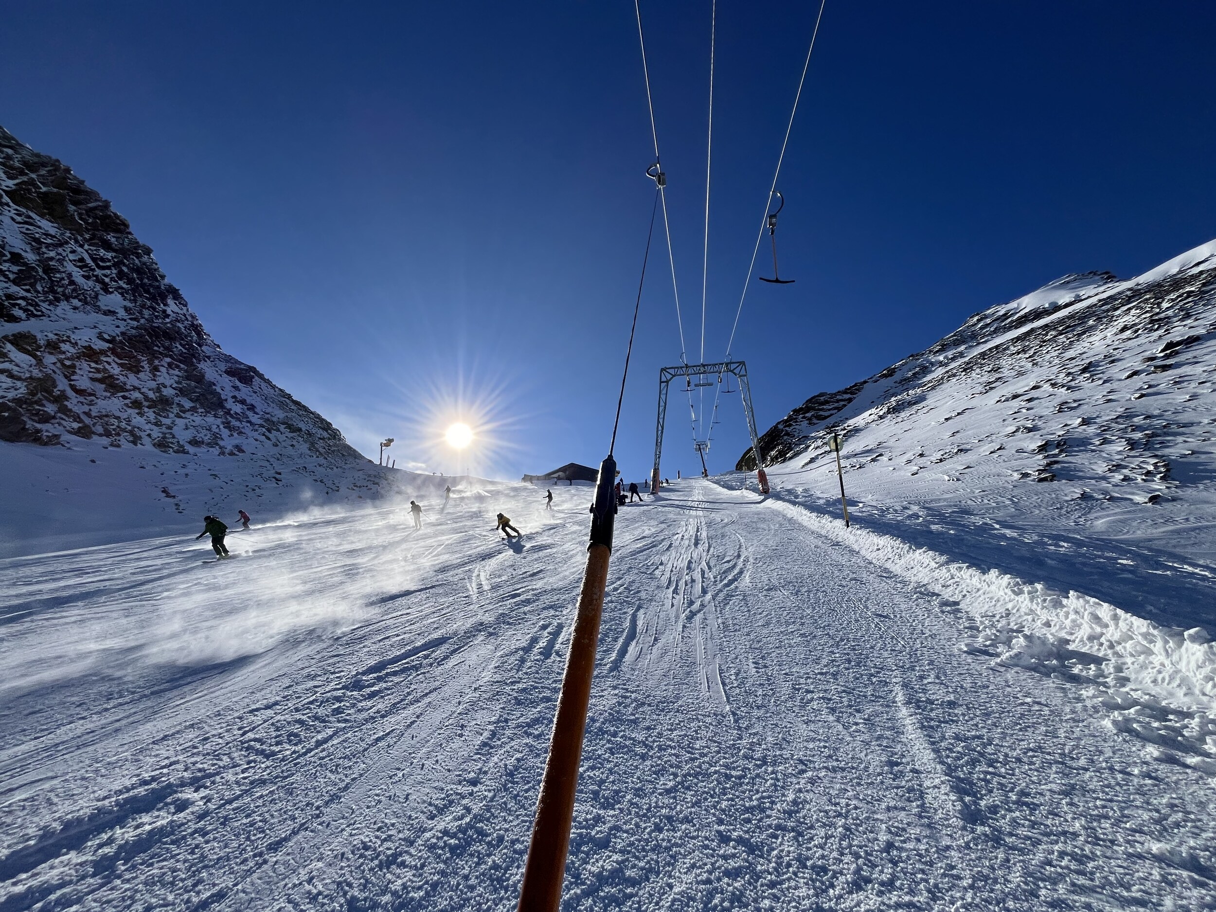 Nicht ganz so eisig kalt und etwas weniger los. Heute morgens am Giggijoch gewesen, da waren die Pisten auch echt gut. Am Gletscher aber deutlich griffiger und weniger Knollen.