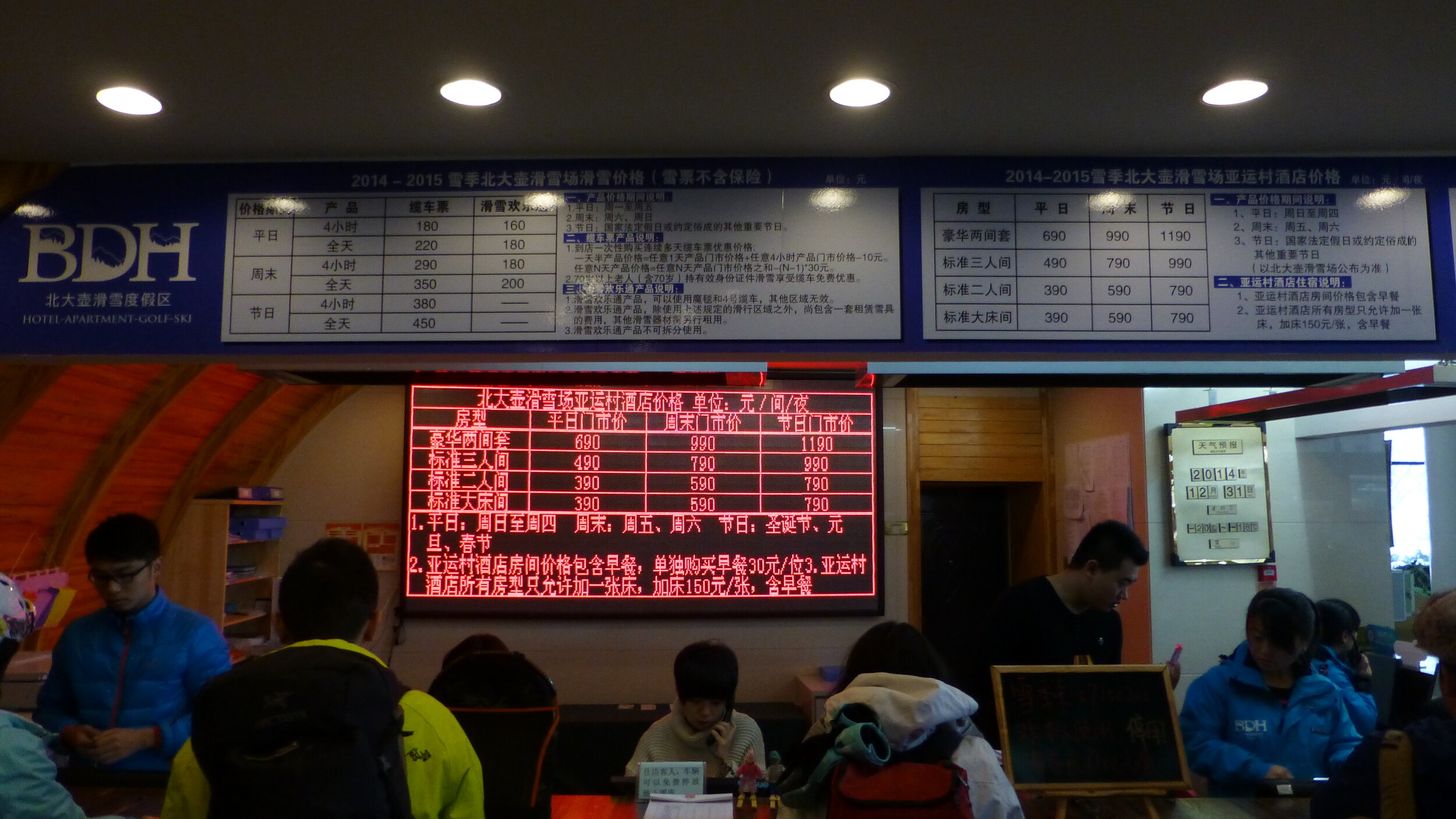 Im Gegensatz zu Yabuli gilt Beidahu in China scheinbar als ein Skigebiet, wo die „Profis“ hingehen, mit längeren und steileren Pistenvarianten, welches angeblich auch internationale oder zumindest asiatische Wettkämpfe austrägt. Immerhin konnte man sehen, dass das skifahrerische Niveau ein bisschen höher war als in Yabuli, ebenso wirkten die Leute und das Material beim Verleih der Ausrüstung etwas professioneller.