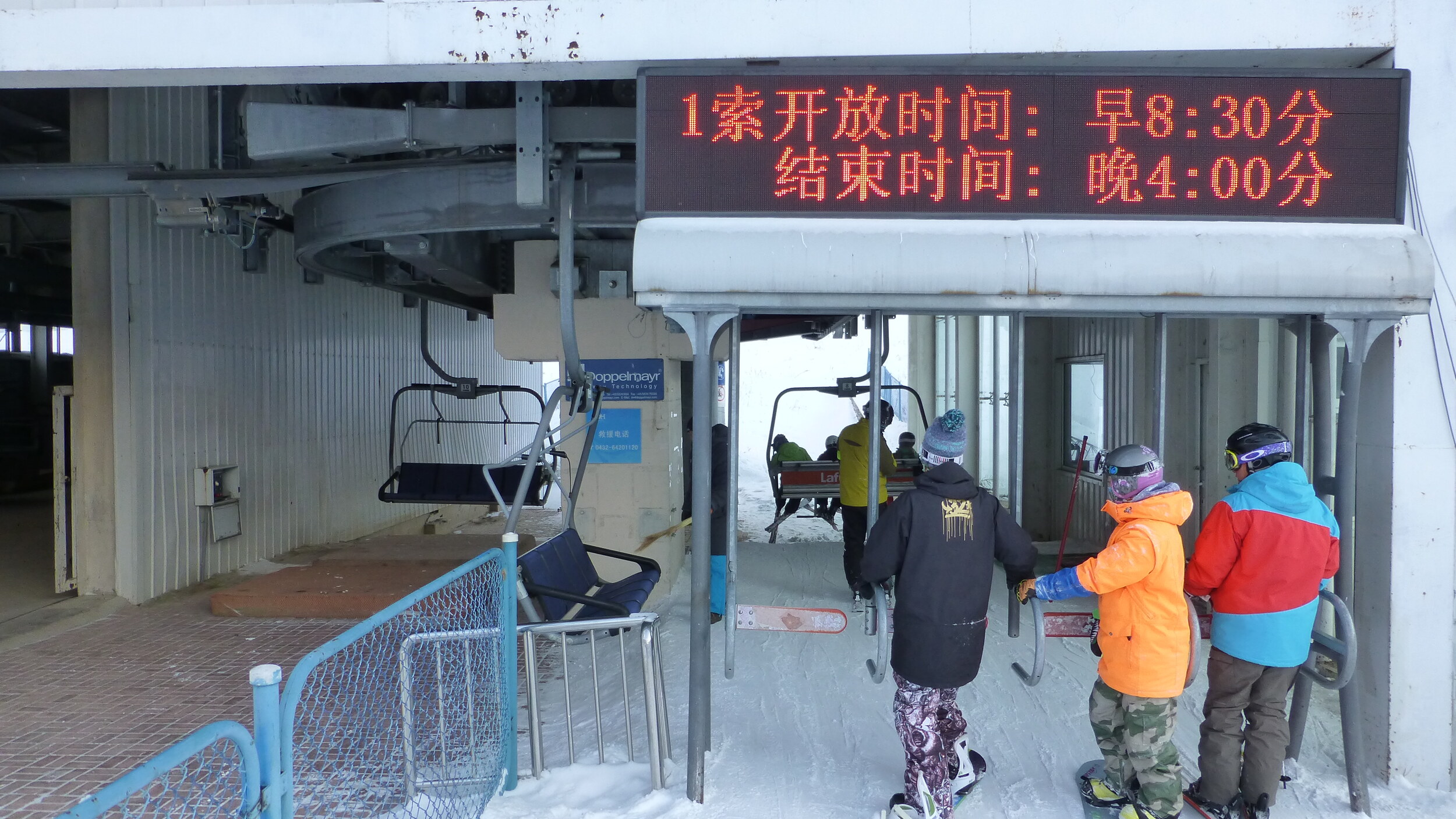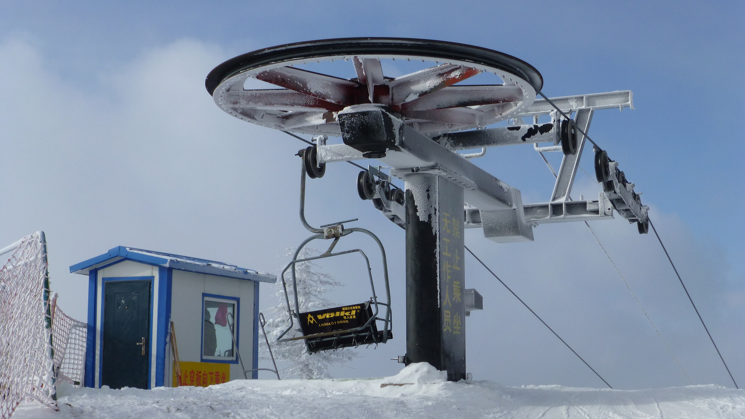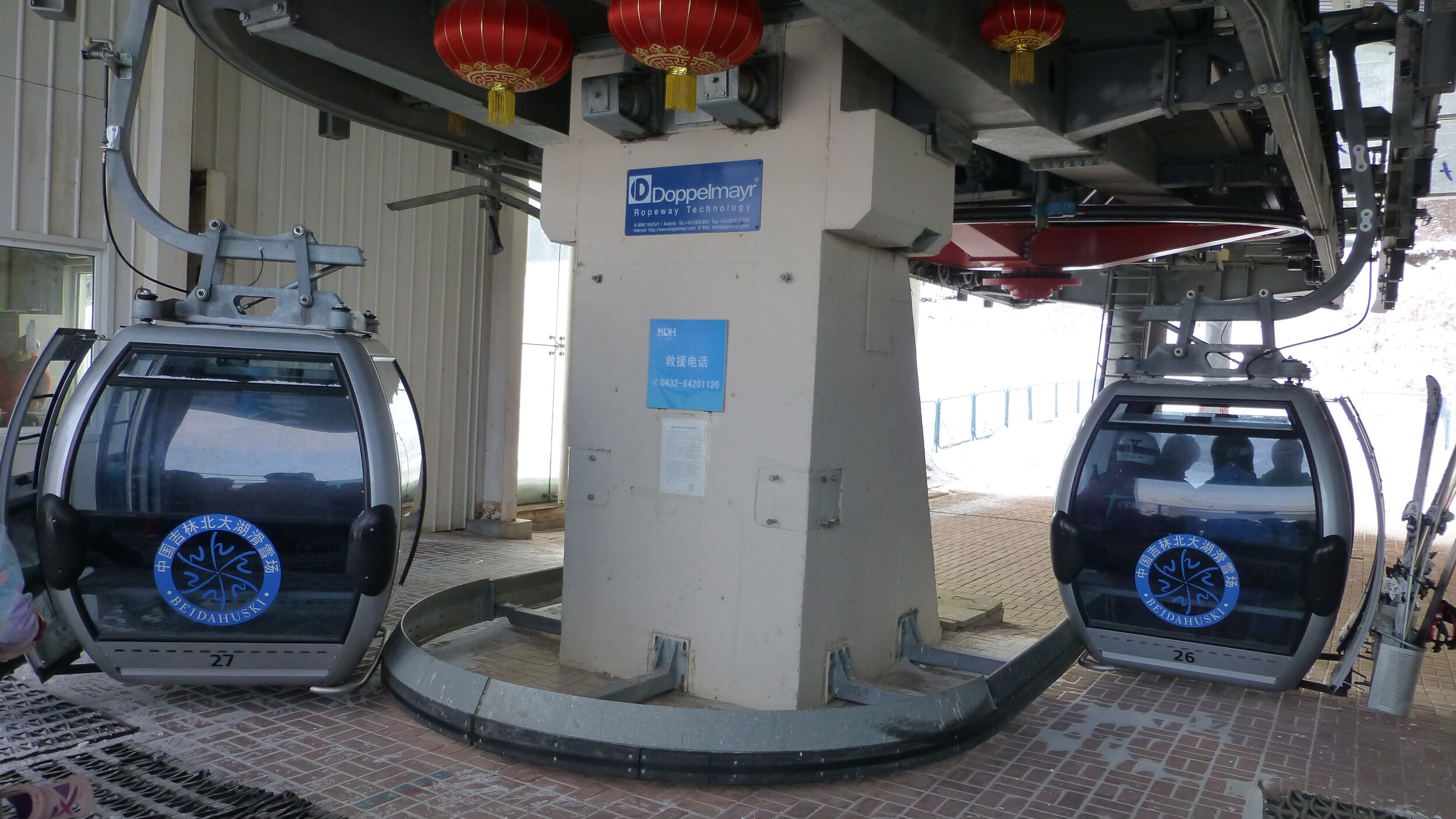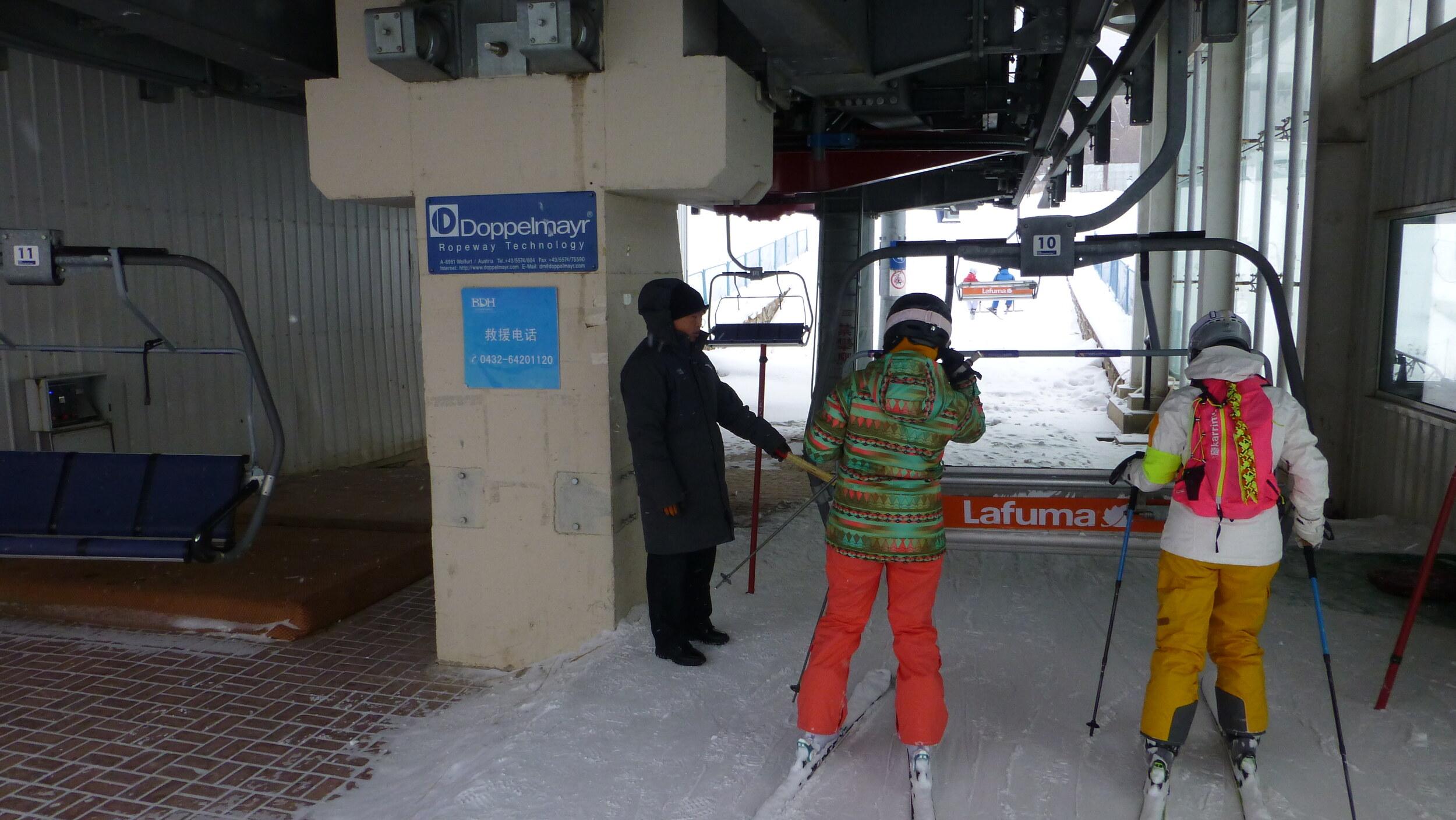 Gemäss Skiresort.de bietet Beidahu übrigens 875 m Höhendifferenz und gut 40 Pistenkilometer. Es war aber wie schon in Yabuli so, dass viele Lifte und Pisten, die im Pistenplan eingezeichnet waren, entweder geschlossen waren oder gar nicht existierten und mich die Angabe der Pistenkilometer auch etwas übertrieben dünkt. Naja, auch hier war die Grösse des Gebiets zweitrangig, uns ging es v.a. um ein weiteres Skierlebnis in China. Und ich erfreute mich dazu noch an einigen alten – aus heutiger Sicht wohl antiken – Anlagen, einmal eine 2FSB von CTEC Garaventa Inc.(?) und einmal ein Bügelschlepplift von Liftbyggarna, einer mir unbekannten schwedischen Firma aus Östersund… Fotos siehe unten.