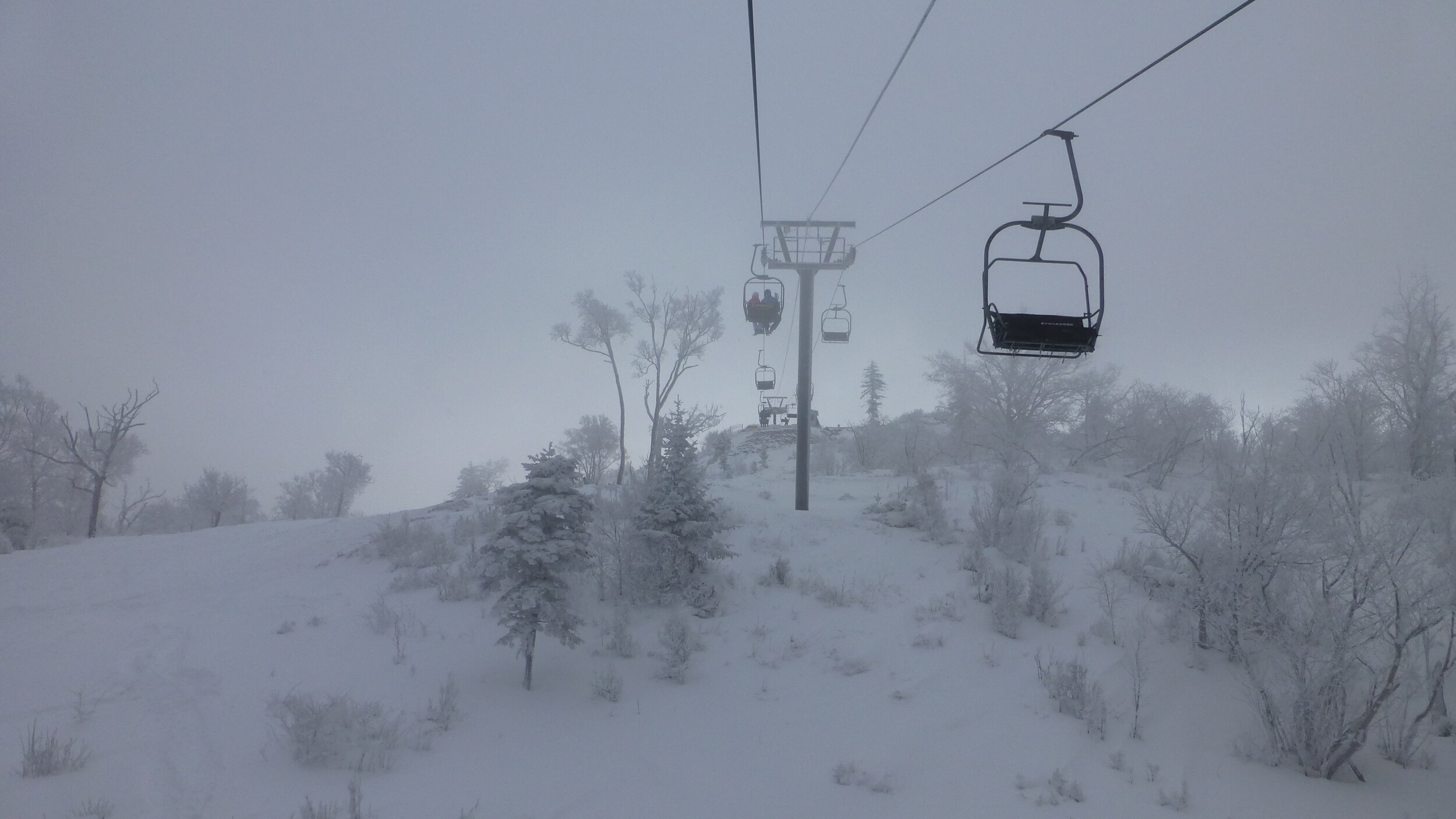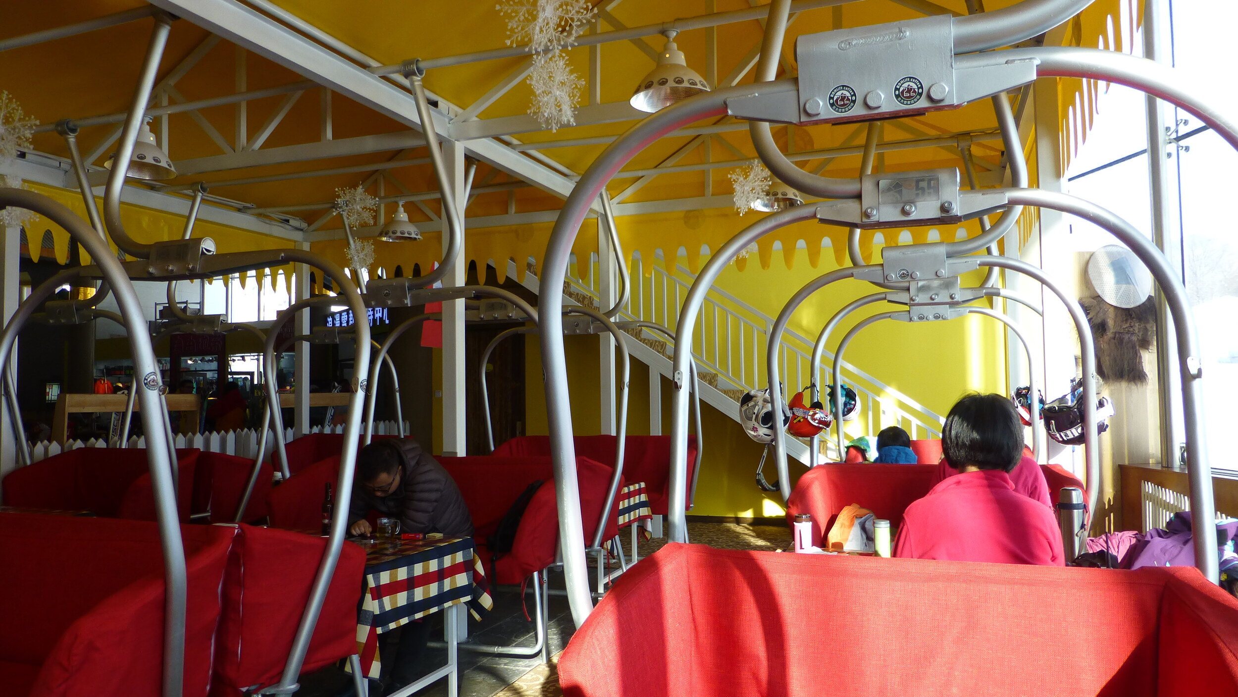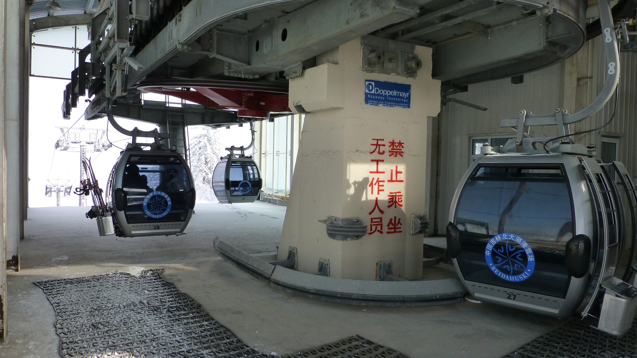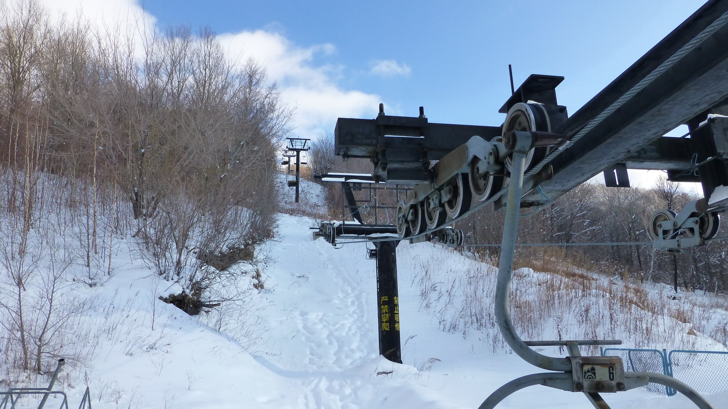 Gemäss Skiresort.de bietet Beidahu übrigens 875 m Höhendifferenz und gut 40 Pistenkilometer. Es war aber wie schon in Yabuli so, dass viele Lifte und Pisten, die im Pistenplan eingezeichnet waren, entweder geschlossen waren oder gar nicht existierten und mich die Angabe der Pistenkilometer auch etwas übertrieben dünkt. Naja, auch hier war die Grösse des Gebiets zweitrangig, uns ging es v.a. um ein weiteres Skierlebnis in China. Und ich erfreute mich dazu noch an einigen alten – aus heutiger Sicht wohl antiken – Anlagen, einmal eine 2FSB von CTEC Garaventa Inc.(?) und einmal ein Bügelschlepplift von Liftbyggarna, einer mir unbekannten schwedischen Firma aus Östersund… Fotos siehe unten.