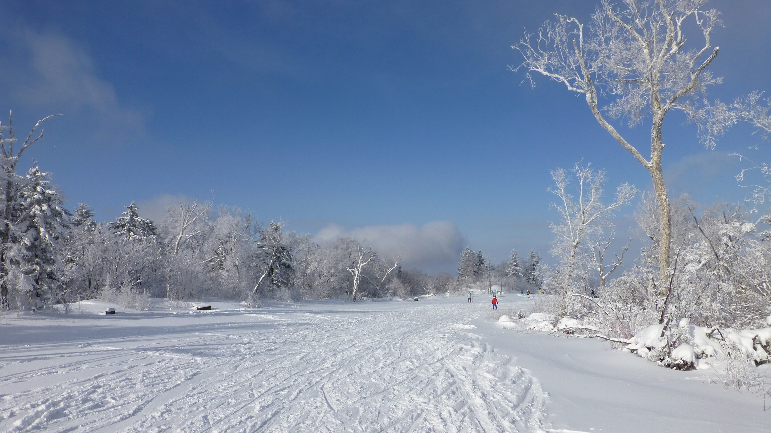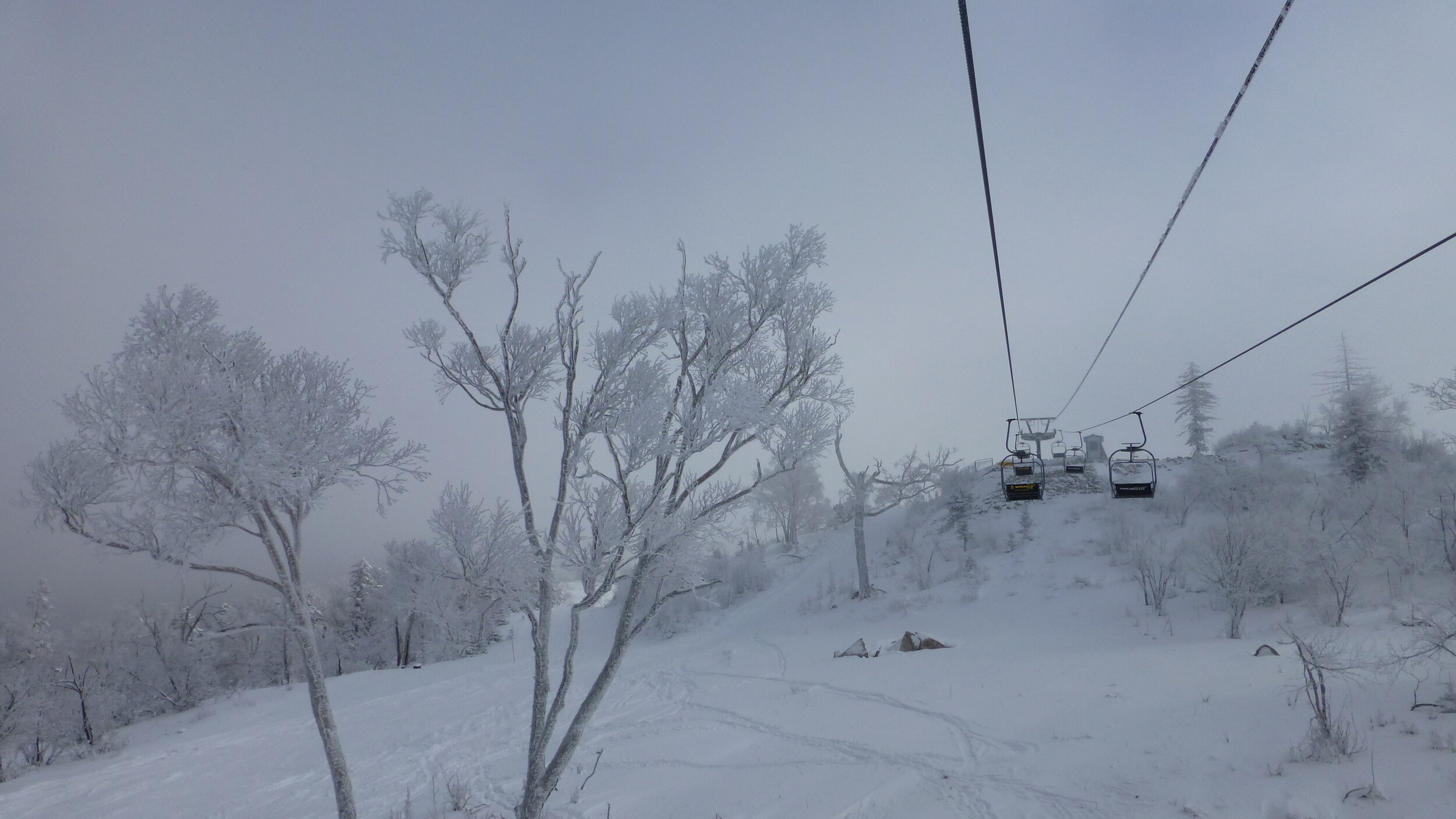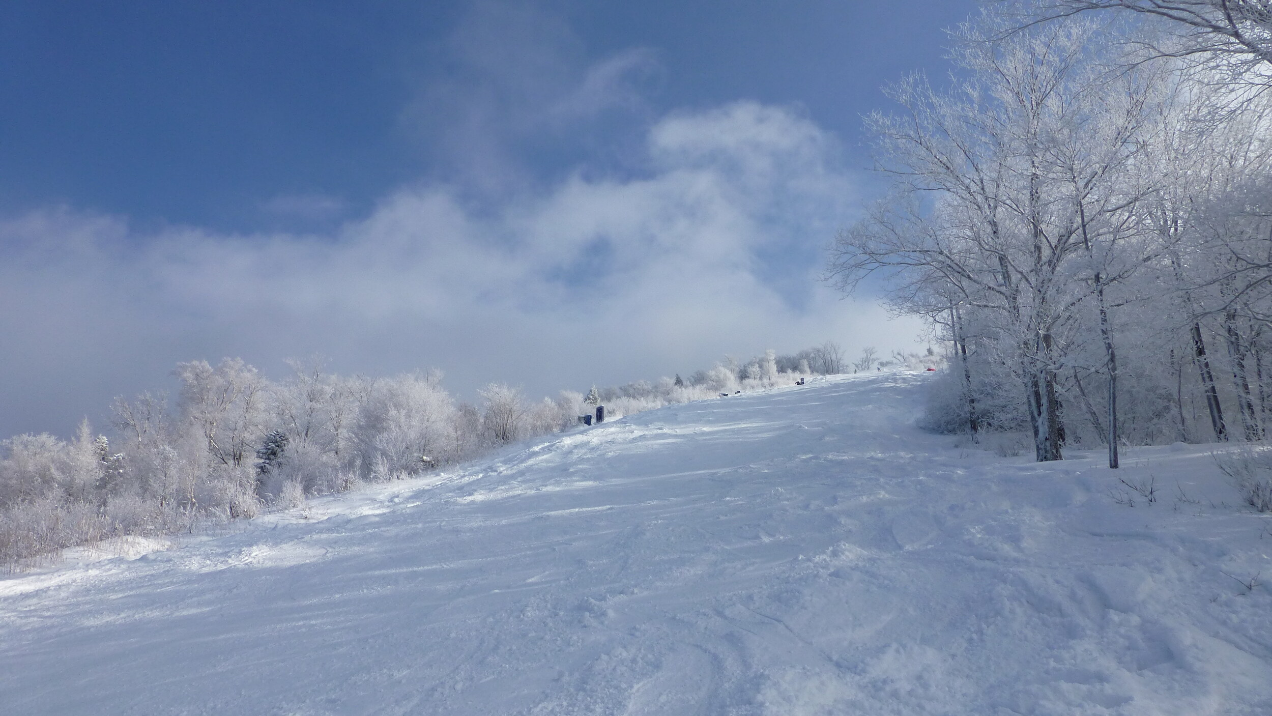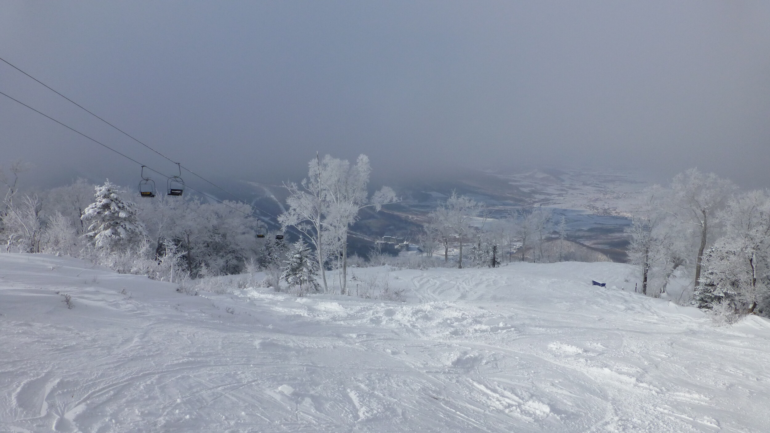 Was mir aber am meisten geblieben ist, ist der frische und extrem leichte Pulverschnee auf der planierten Piste direkt nach neuem Schneefall in der Nacht oder frühmorgens. Tagsüber war es dann trocken, aber sehr kalt, wohl unter -25°C. Genial war in dieser Kombination v.a. das Traumwetter am Nachmittag (nach etwas unschönem Nebel am Morgen), v.a. als die Bäume zunächst noch so eine weisse schön märchenhafte Schnee-/Reifschicht drauf hatten.