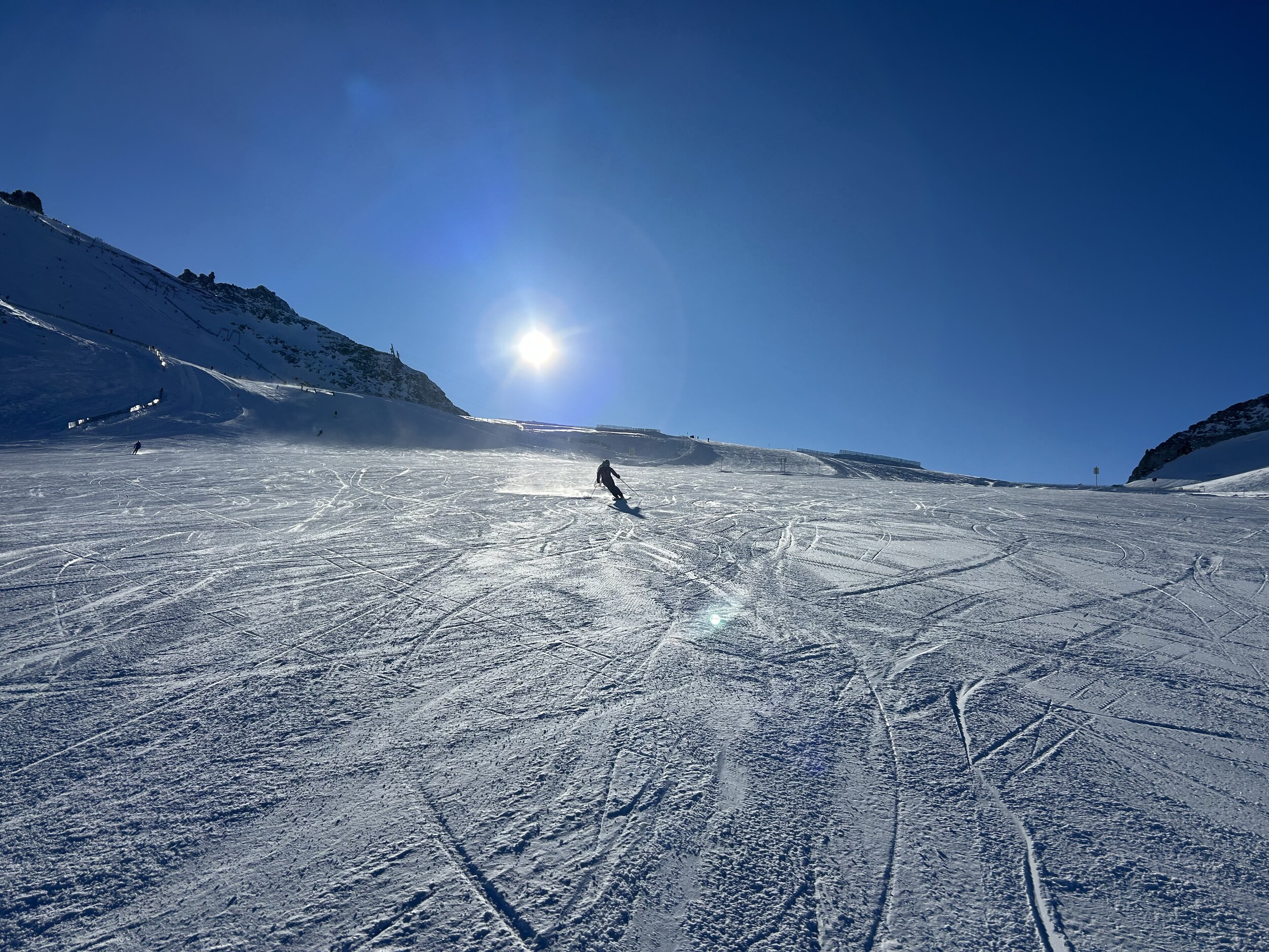 Und am Tuxerjoch sind die Pisten weniger zerfahren und ohne Eisschicht, sodass das Fahren zumindest etwas Spaß macht. Aber lang wurde der Skitag nicht.