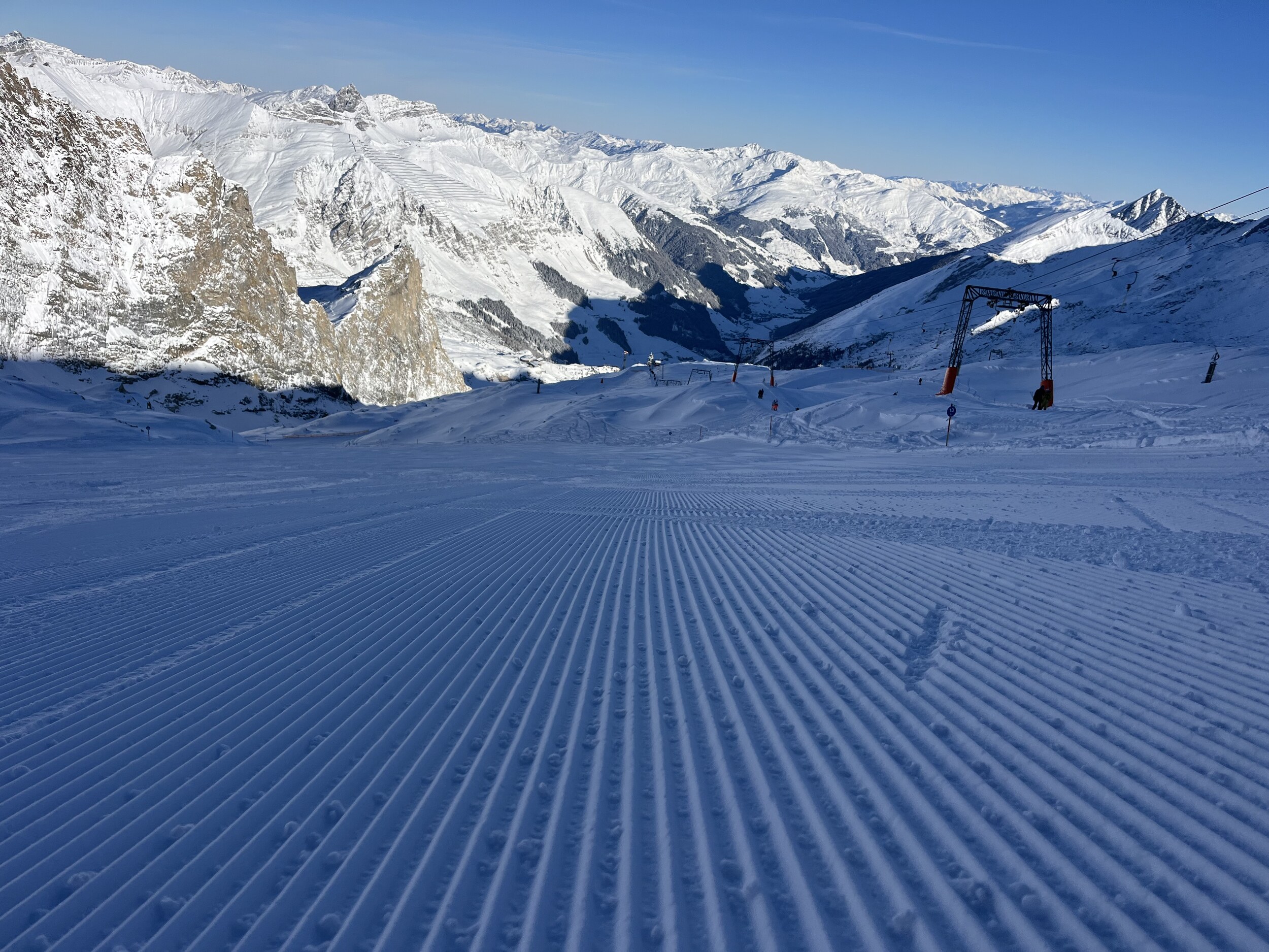 Der Wind hat stark zugenommen. LS2 bleibt jedoch standhaft. Und die Pisten werden geglättet, keine Haufen. Sehr gut. Edit 14 Uhr: