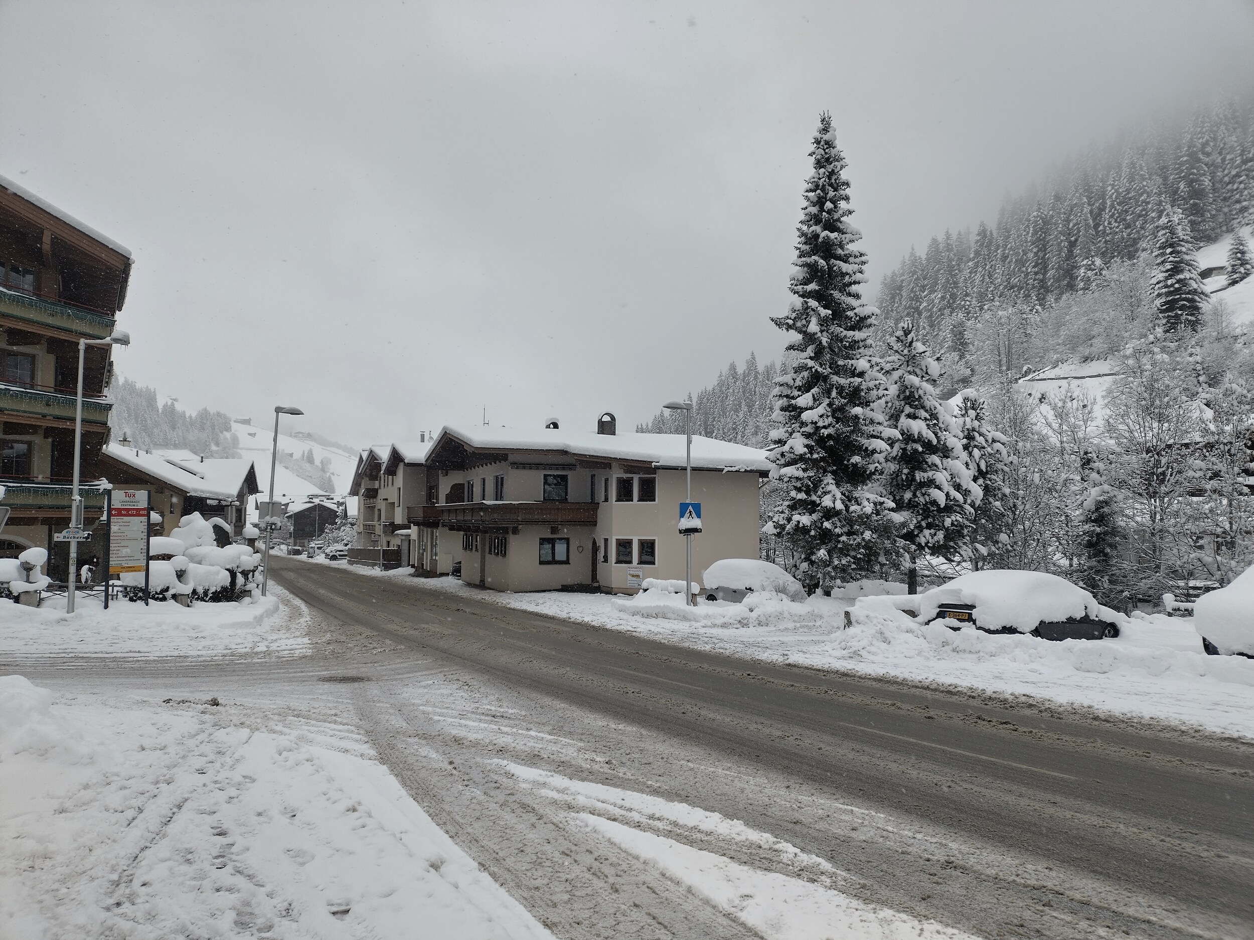 Wir haben trotzdem auf einen Skitag verzichtet und uns auf den Heimweg gemacht. Tiefwinterliches Tuxertal: Eine Kettenpflicht ab Vorderlanersbach abwärts war zumindest nicht ausgeschildert. Bergwärts haben wir in Mayerhofen ein Schild gesehen.