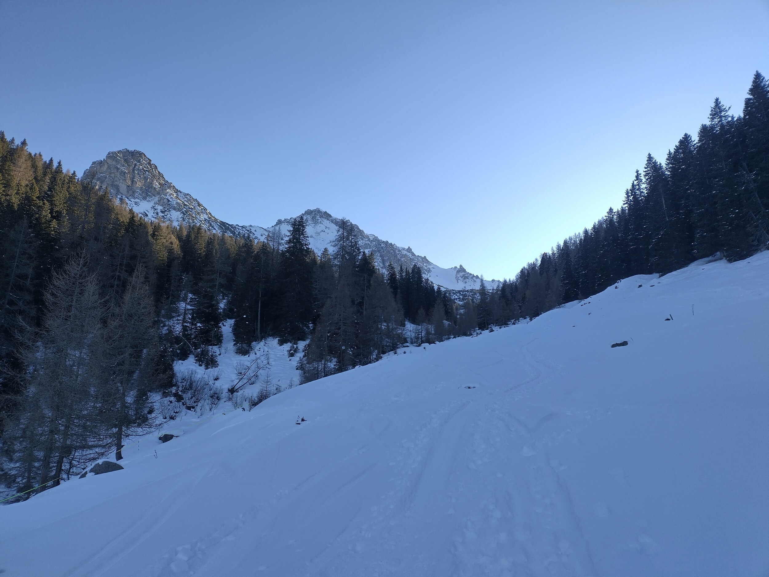 Ich bleibe im Wald. Der Schnee ist dank der Temperaturen schon recht schwer aber immer noch Pulvrig. Aber ein Meter mehr würde definitiv nicht schaden.