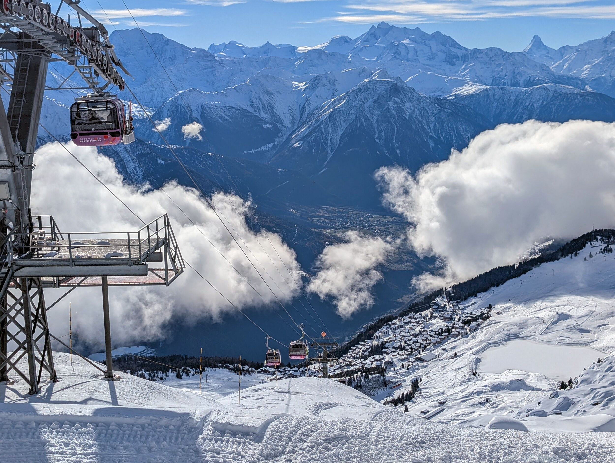 Die Anreise von Andermatt (wo es gestern stark geregnet hat) war schon ein Highlight mit der MGB und dann direktem Bergbahn-Anschuss in Fiesch.