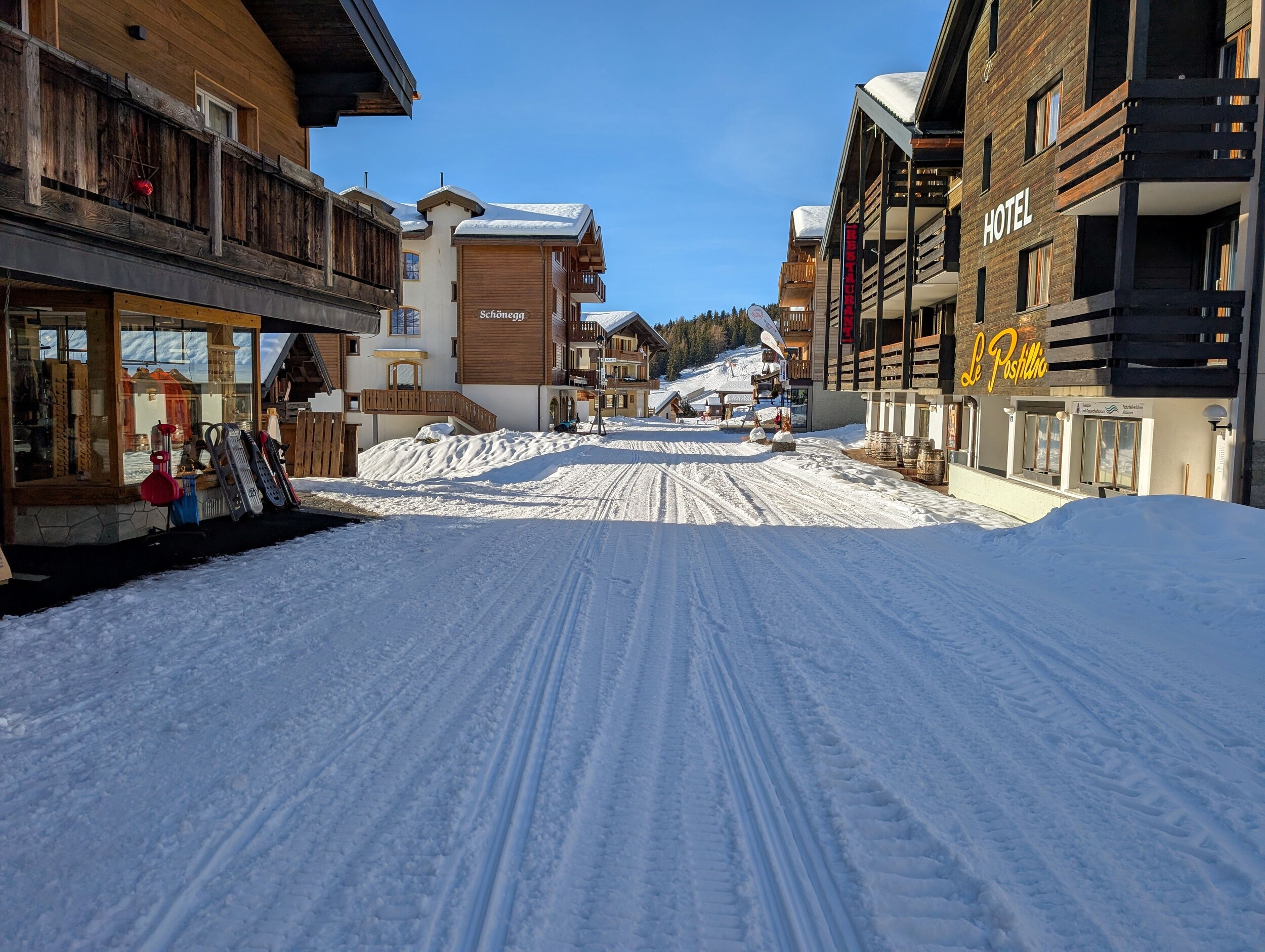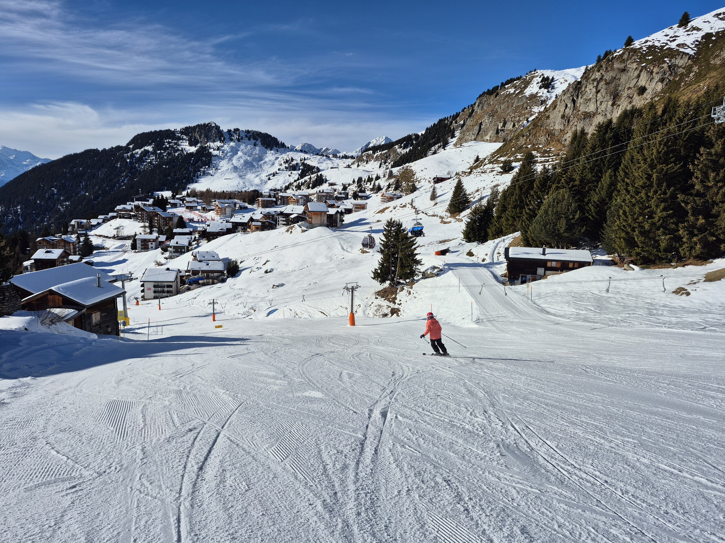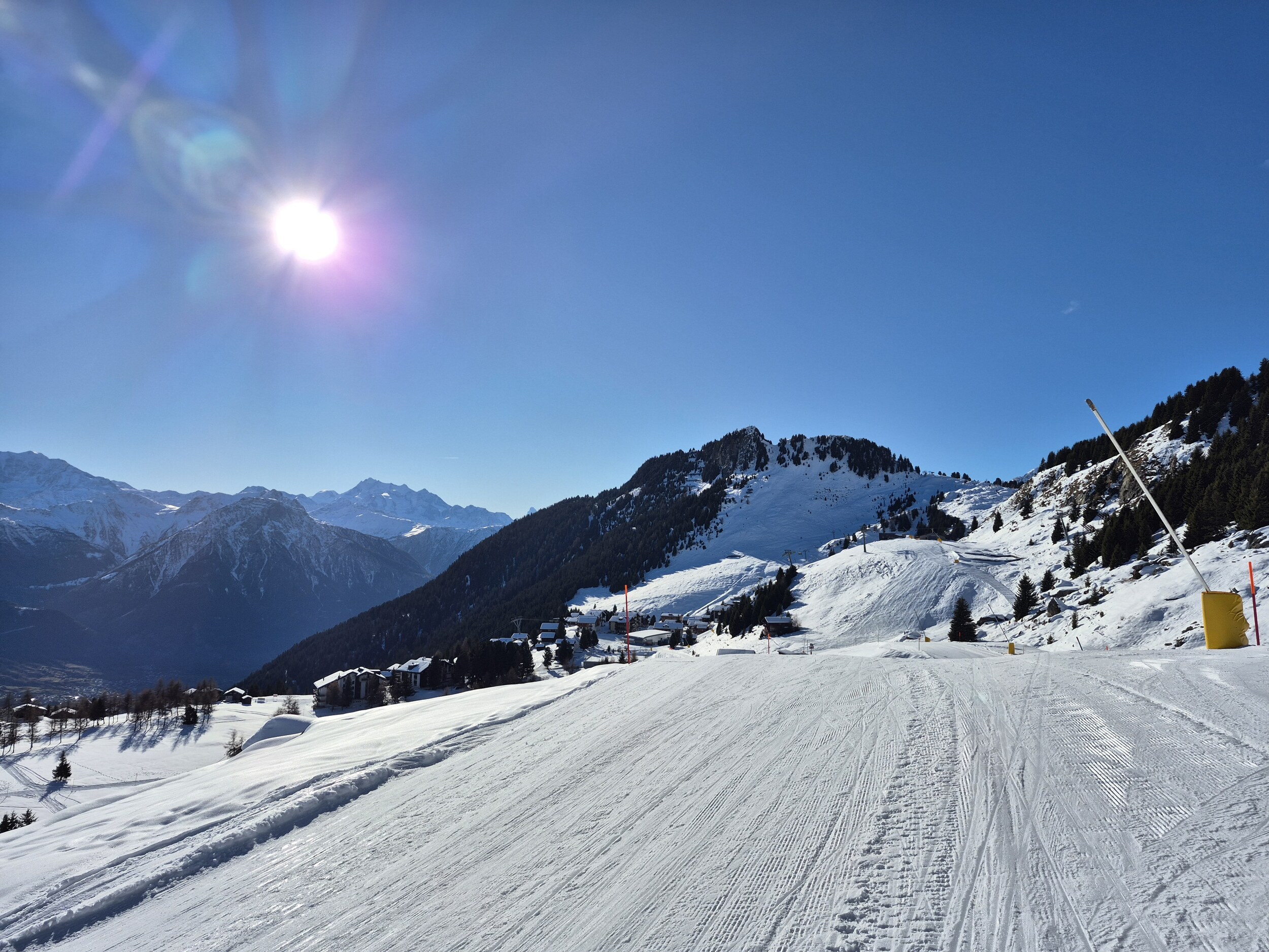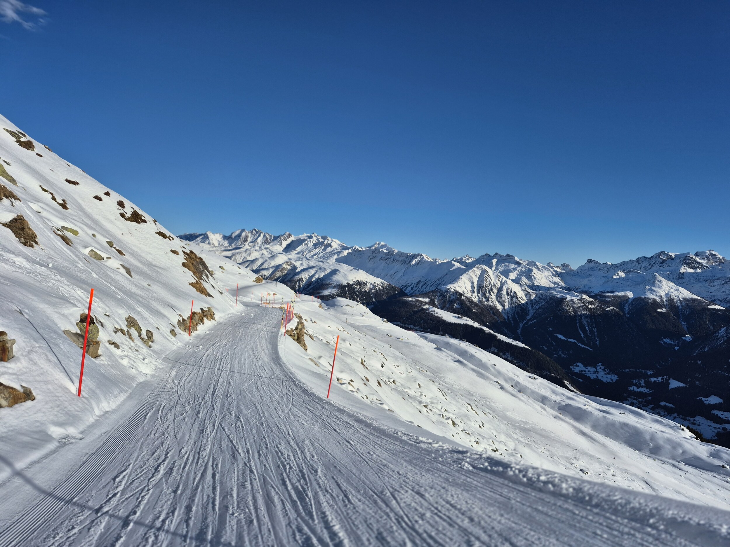 Die Pisten sind, im Gegensatz zum Berner Oberland, weiterhin in sehr gutem Zustand und schön griffig zu fahren. Es hat sehr wenige eisige oder abgefahrene Stellen. Im Vergleich zum Mittwoch zuvor, wurden wieder einige zusätzlichen Pisten geöffnet. Zum Beispiel die rote Piste entlang des Schönbiel 6er Sessels.