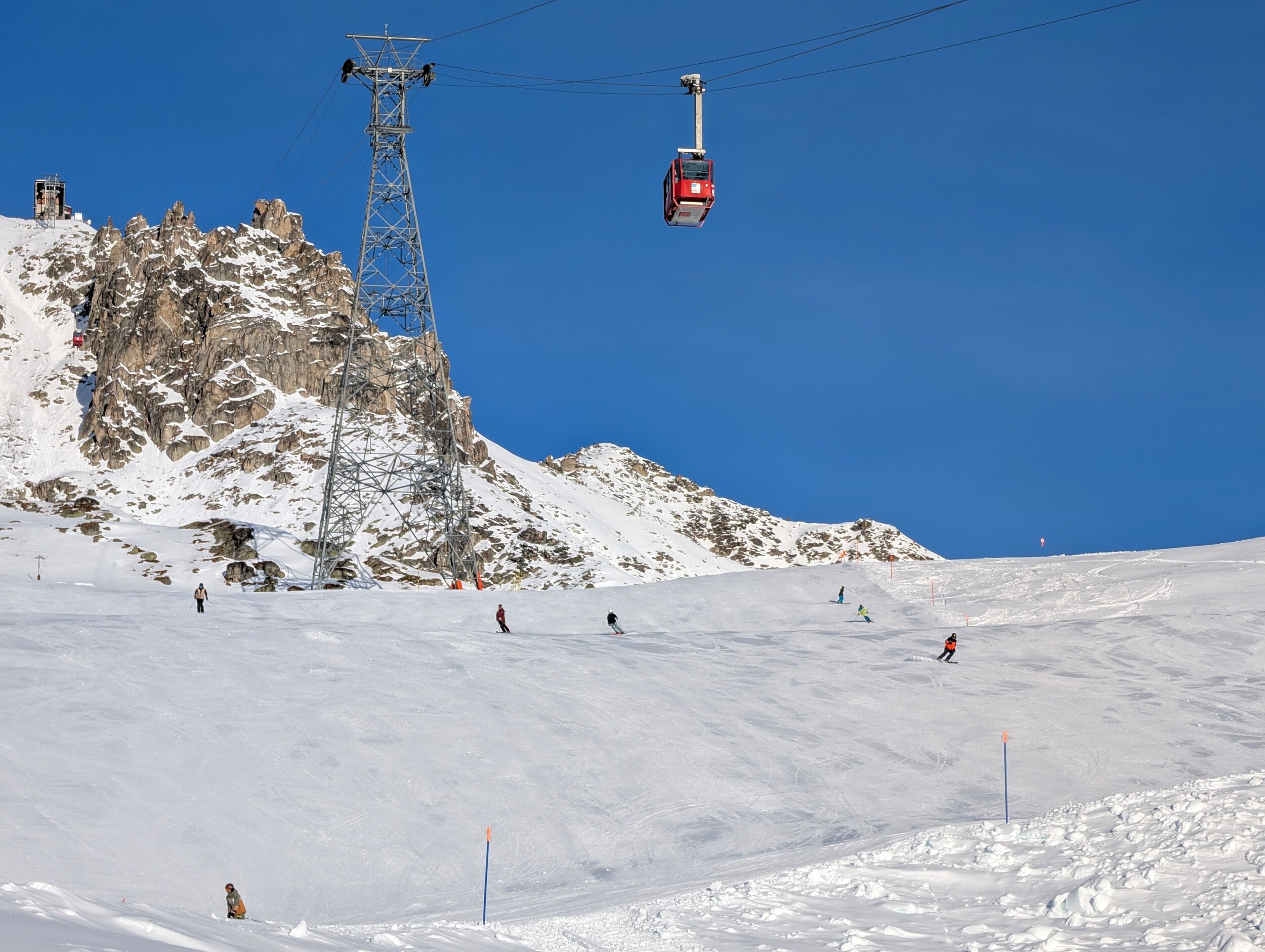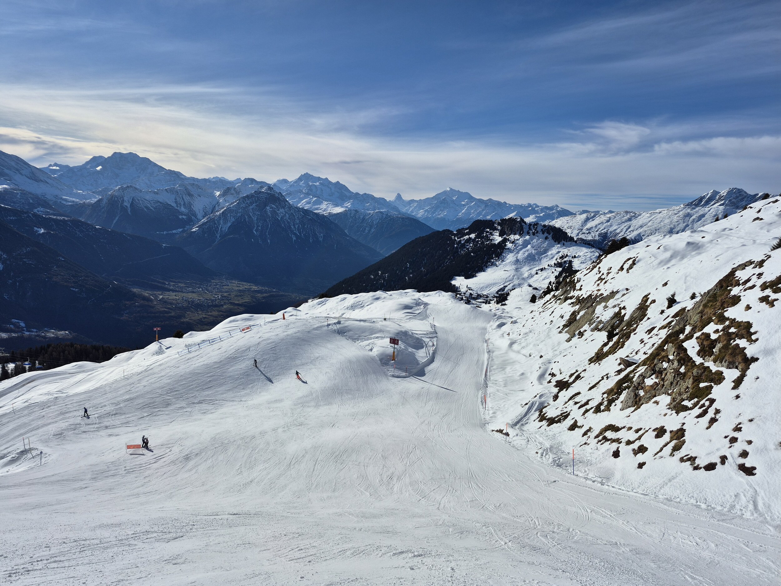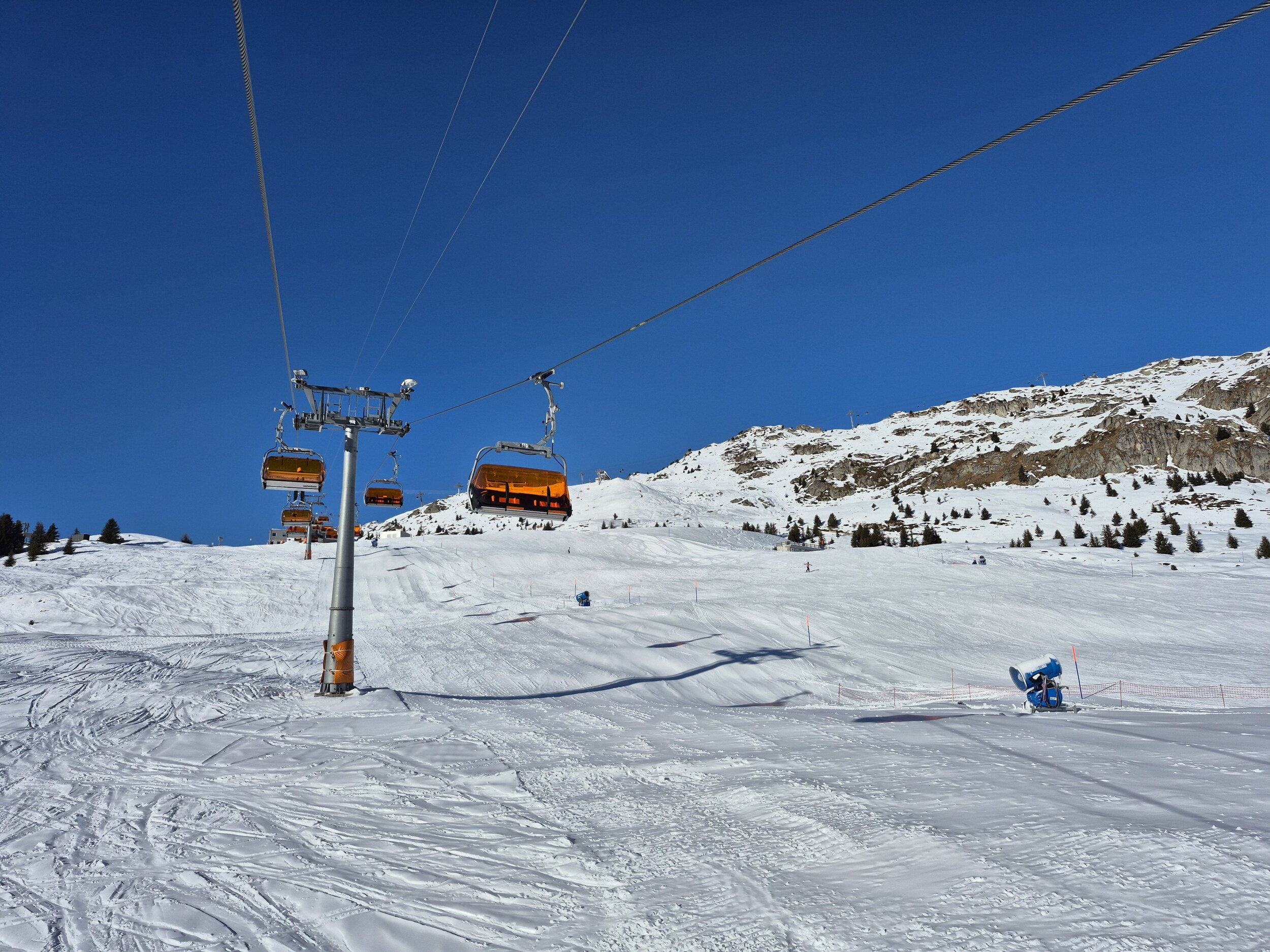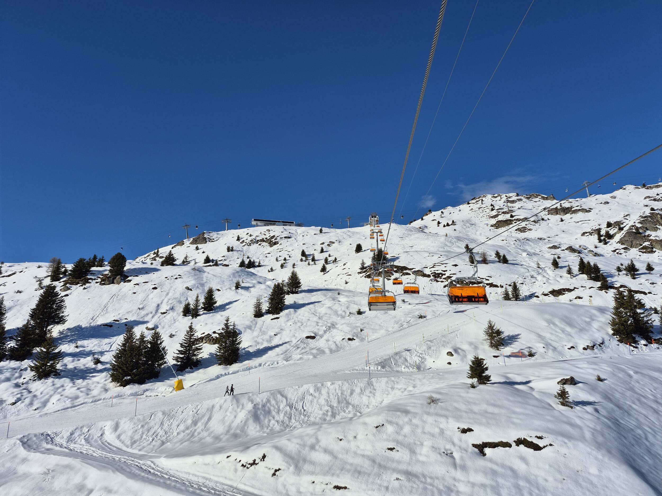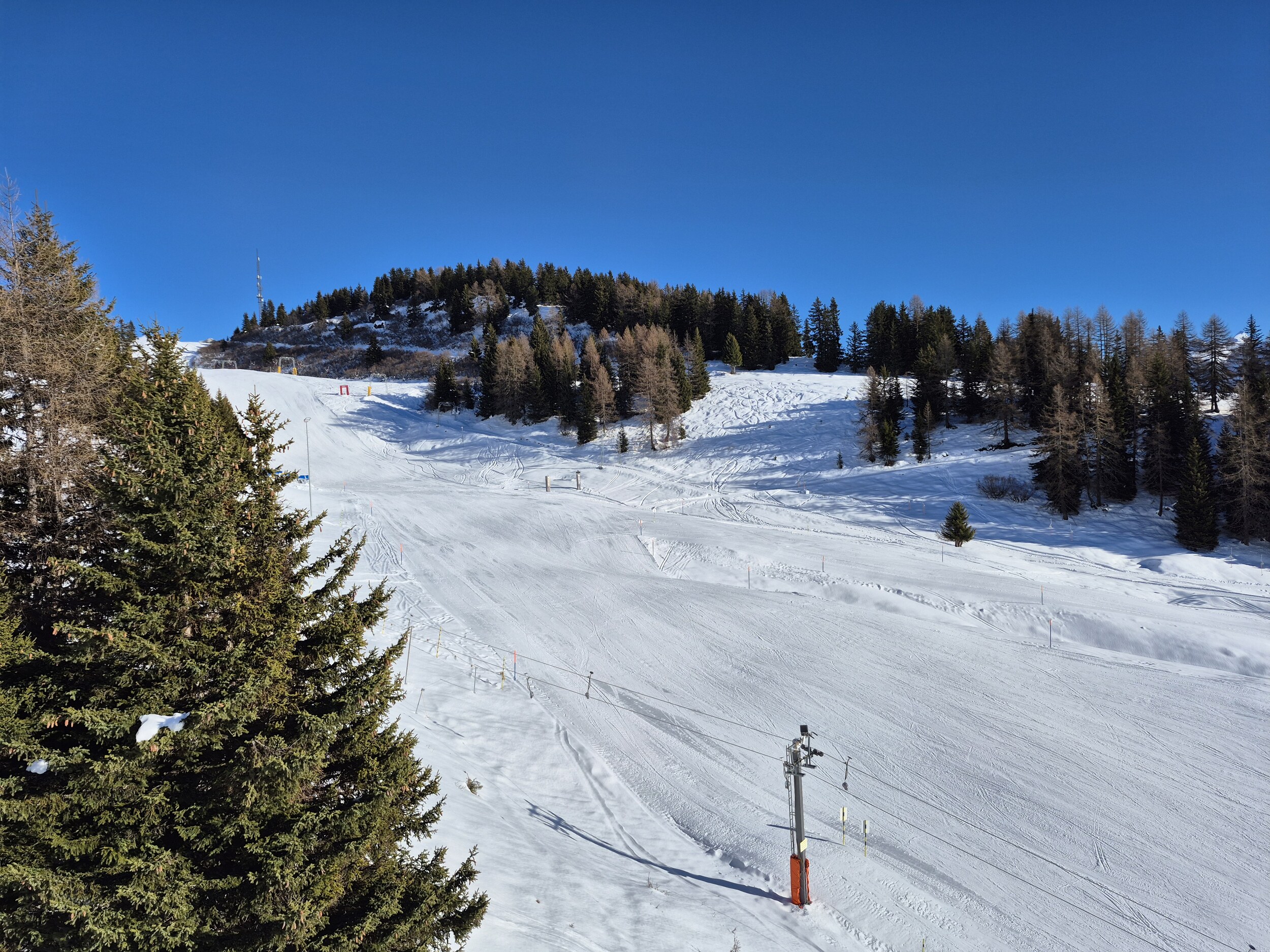 Die Pisten sind, im Gegensatz zum Berner Oberland, weiterhin in sehr gutem Zustand und schön griffig zu fahren. Es hat sehr wenige eisige oder abgefahrene Stellen. Im Vergleich zum Mittwoch zuvor, wurden wieder einige zusätzlichen Pisten geöffnet. Zum Beispiel die rote Piste entlang des Schönbiel 6er Sessels.