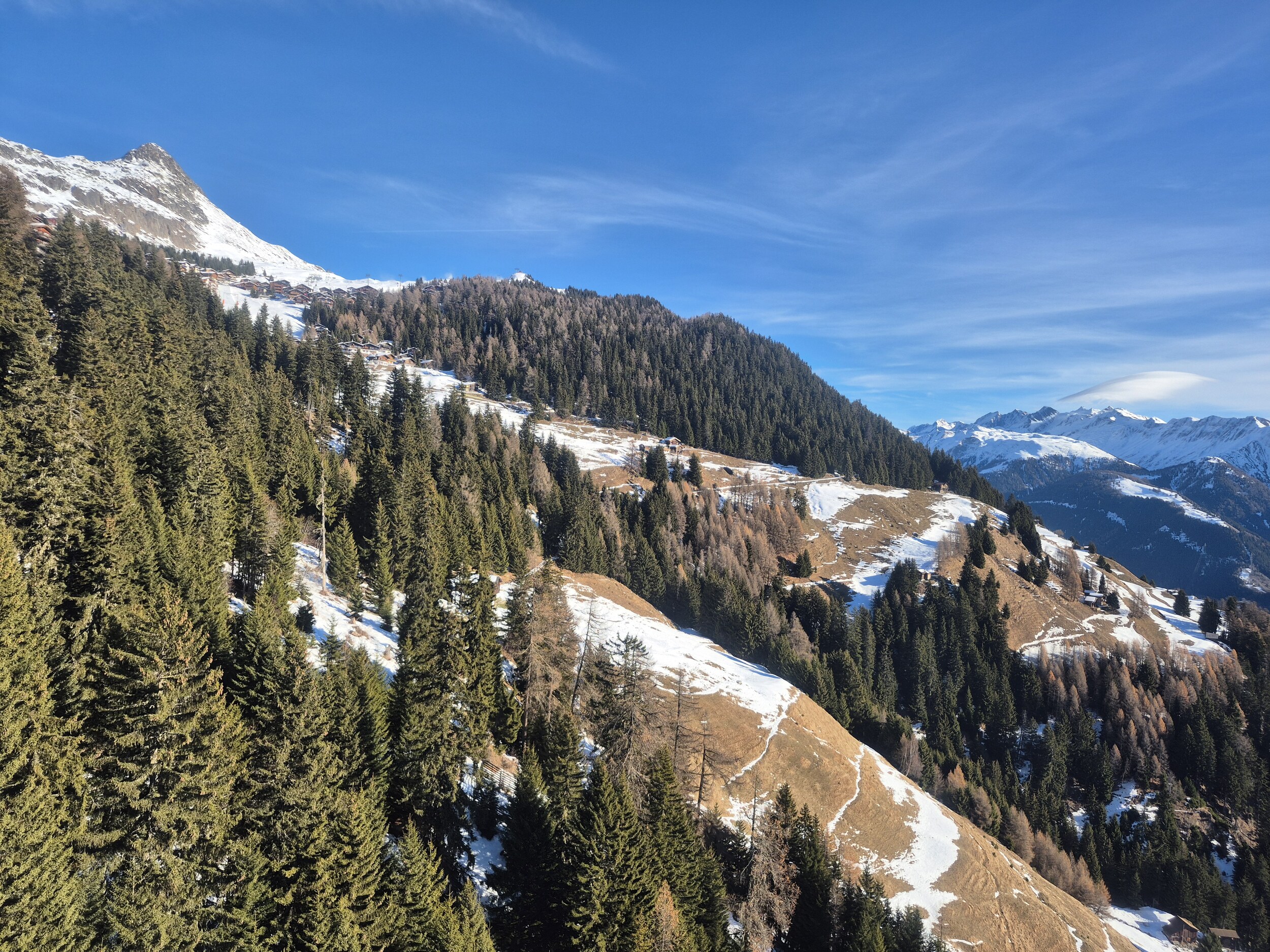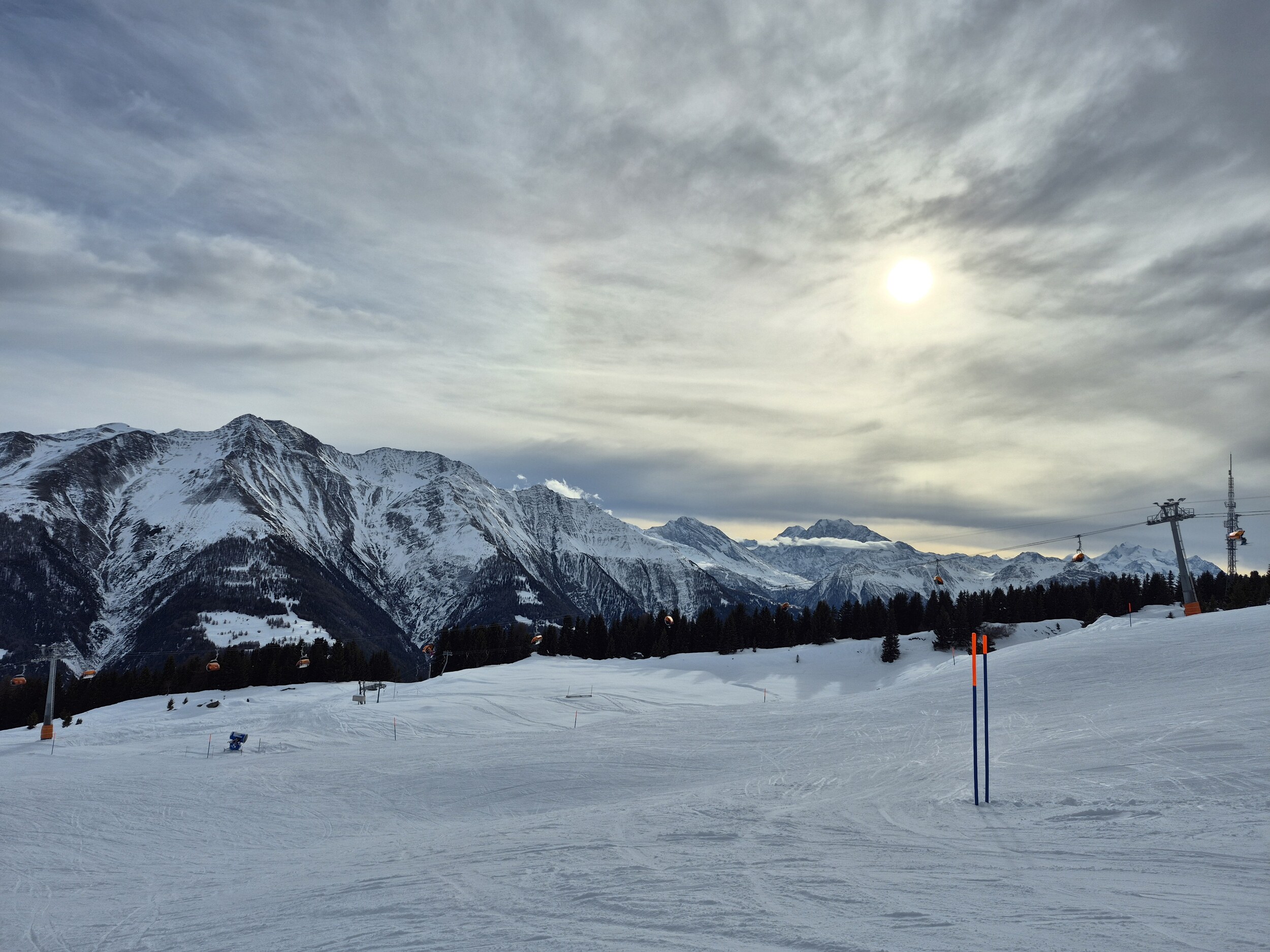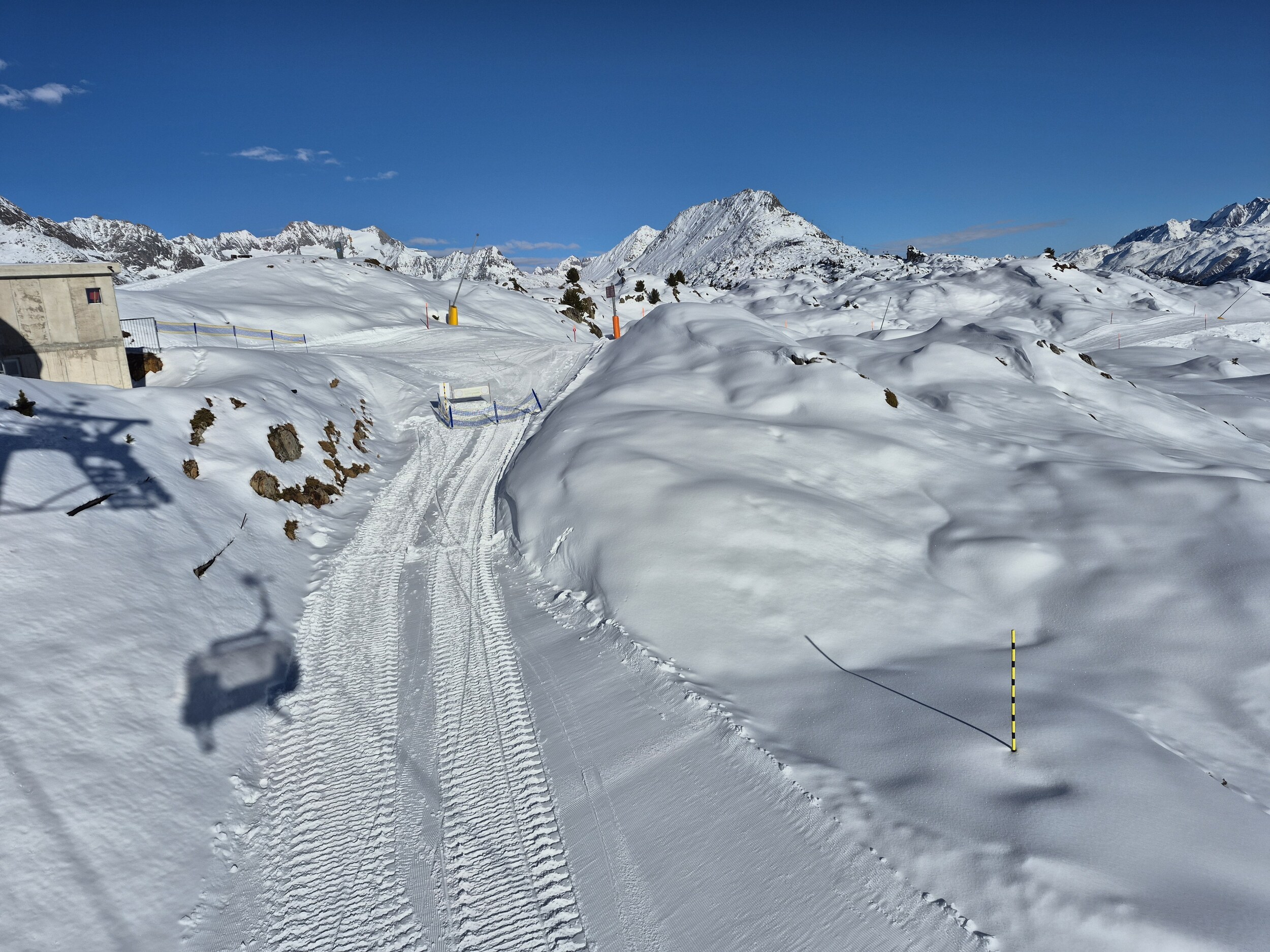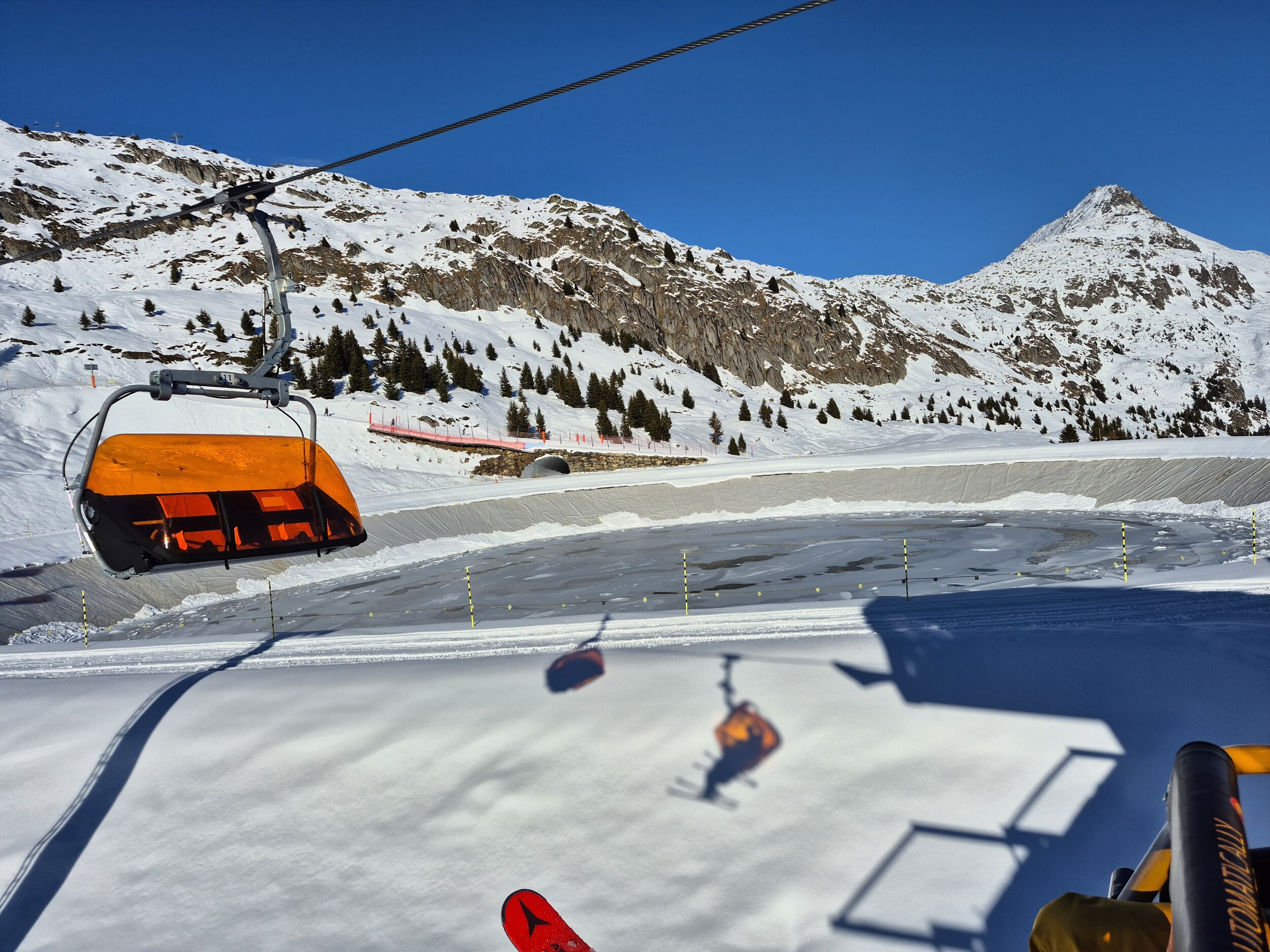 Auch gestern (15.12.2025) habe ich noch einen Vorsaison Skitag in der Aletscharena genossen. Das Wetter war bis nach dem Mittag praktisch wolkenlos, ab 13 Uhr zogen aber immer mehr Wolken von Süden auf. Den ganzen Tag waren die Temperaturen knapp unter null und es wurde punktuell beschneit. Der Speichersee Scheene Bodu ist praktisch leer, der Bettmersee noch recht gut gefüllt (und sonst gibt's ja noch den Märjelenseee).
