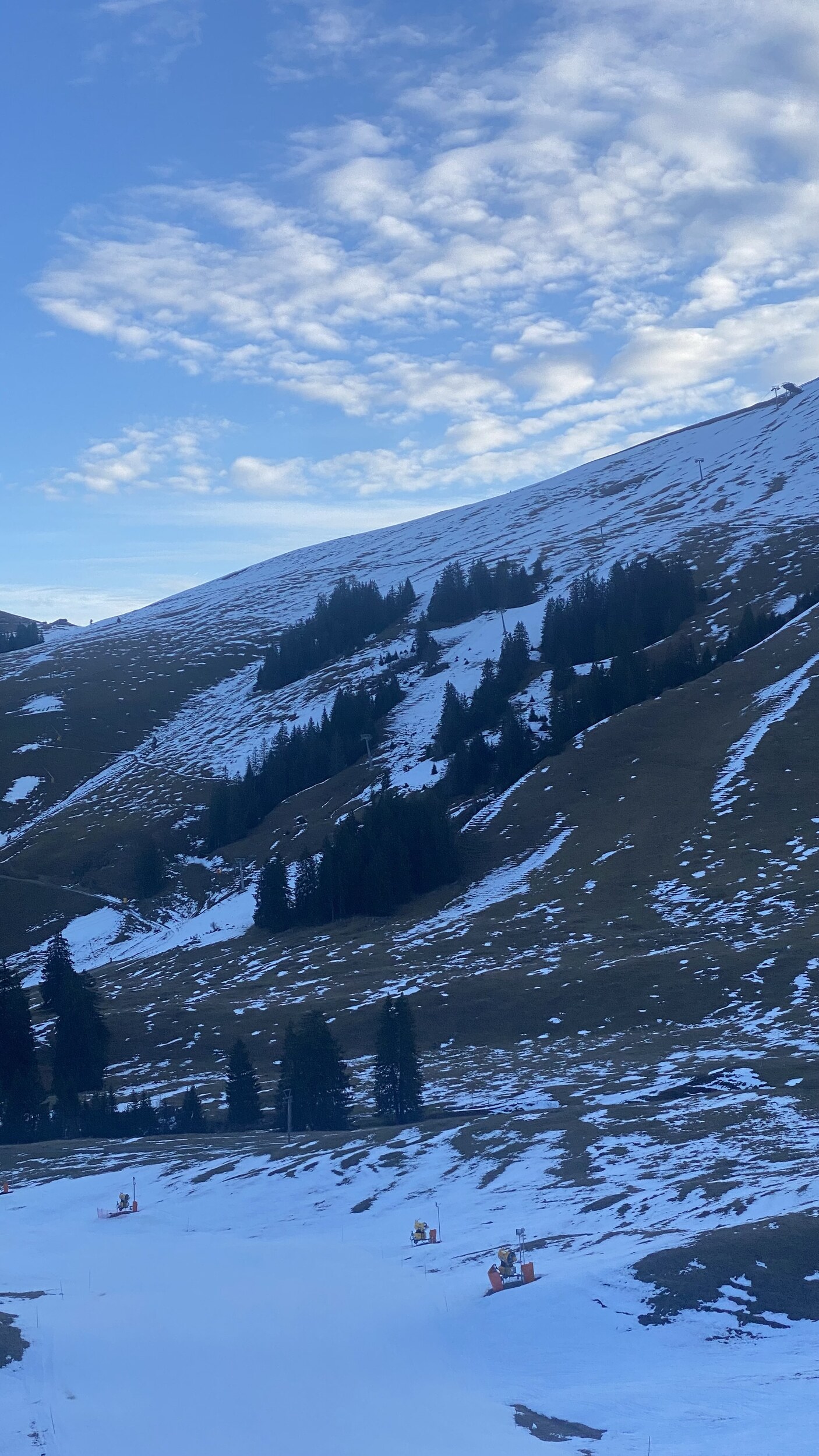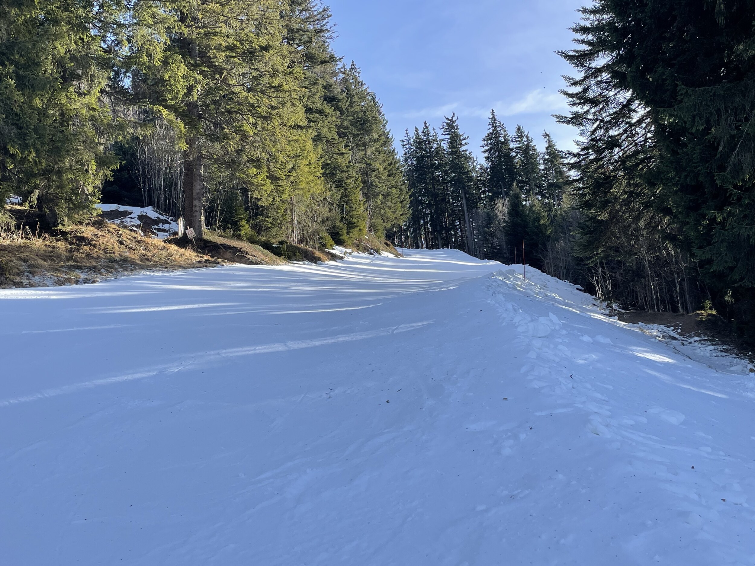 Richtig gute, frühlingshafte Skibedingungen in Charmey. Beinahe das ganze Gebiet ist Naturschnee. Zudem Vollbetrieb mit Piste bis zur Mittelstation offen. Grosses Kino für im November. Klar hat es ein paar braune Stellen, aber zu 95% sehr gute Schneeverhältnisse.