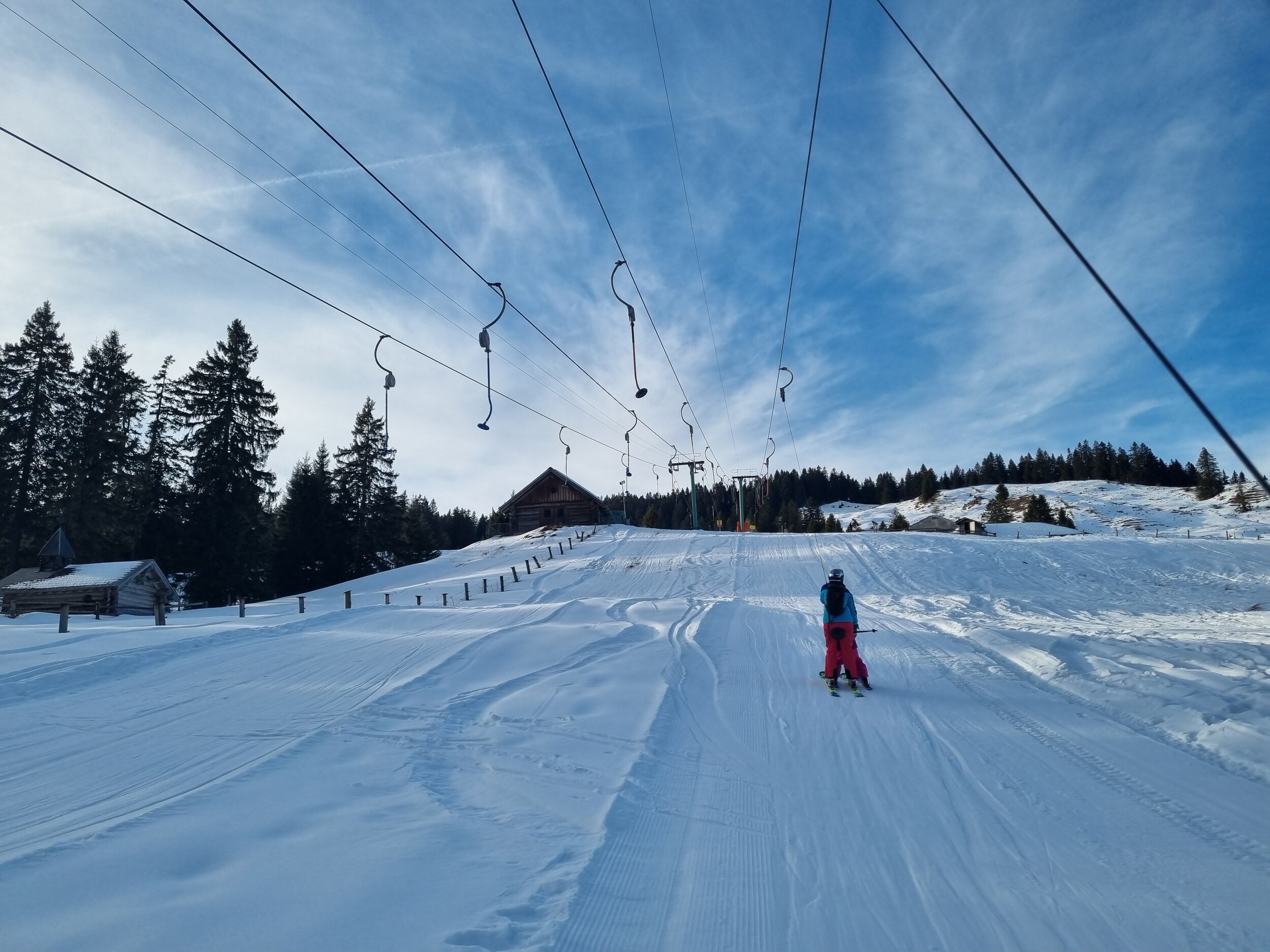 Geöffnet waren der kurze und der Standard Rathvel, aber auch der deutlich längere Gros Niremont Schlepplift. Es war deutlich weniger los als in Les Paccots. Ausser den 5 Minuten mehr Anfahrt fällt mir dafür kein Grund ein. Mir hat Rathvel von der Atmosphäre deutlich mehr zugesagt als Les Paccots. An den kurzen Rathvel Schleppliften ist es wunderbar für Anfänger und mir hat die sehr ursprüngliche Atmosphäre gefallen (auch wenn ich sonst die grösseren Gebiete bevorzuge.