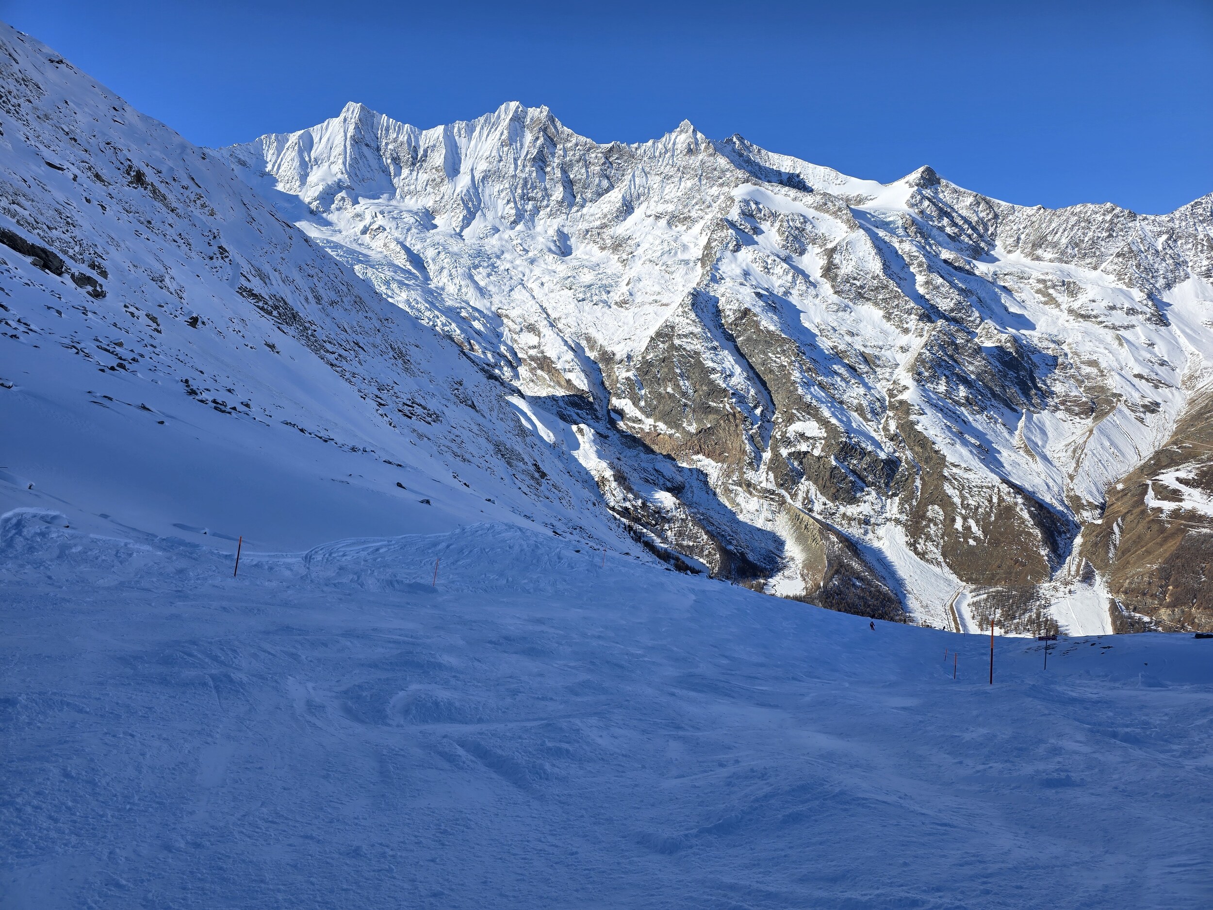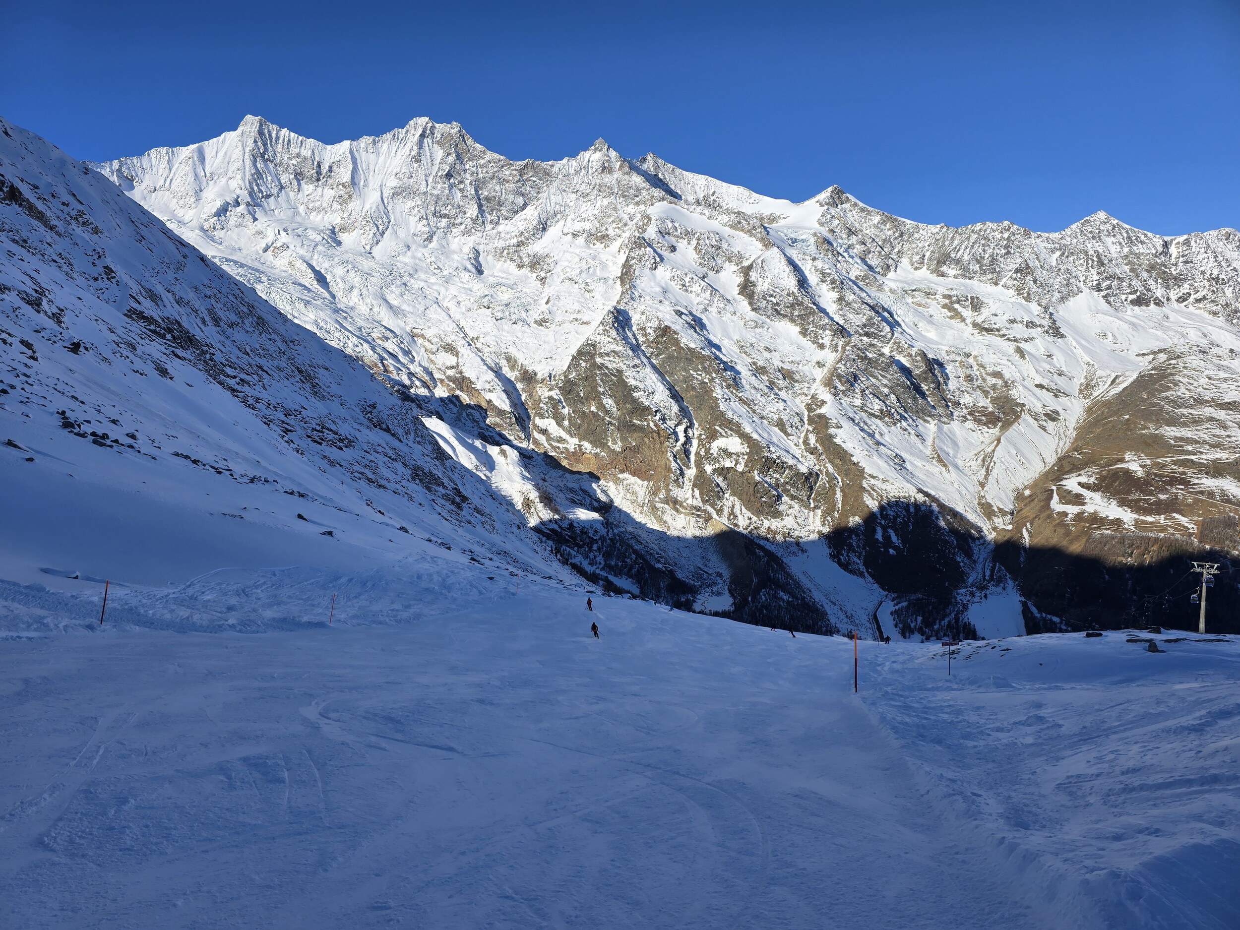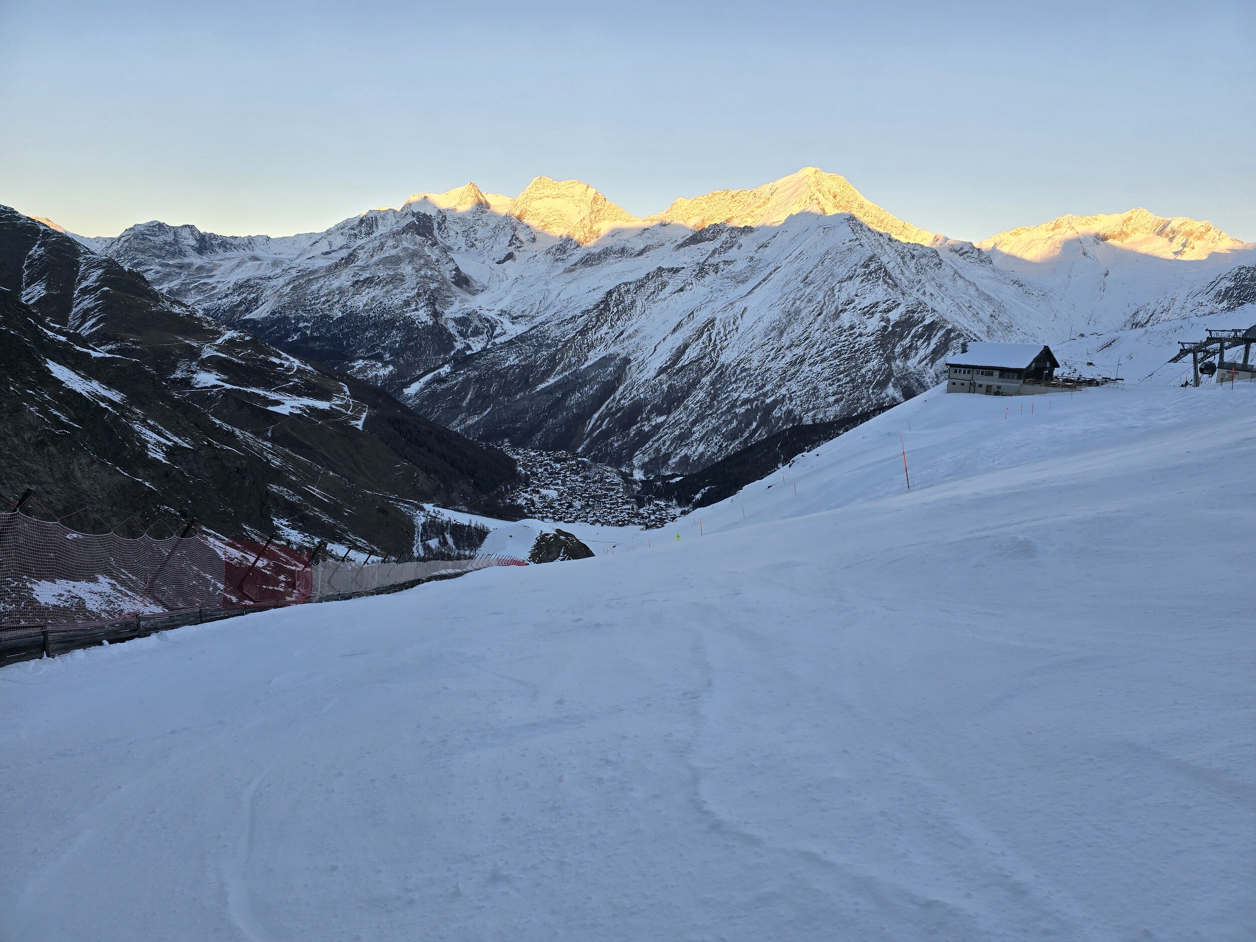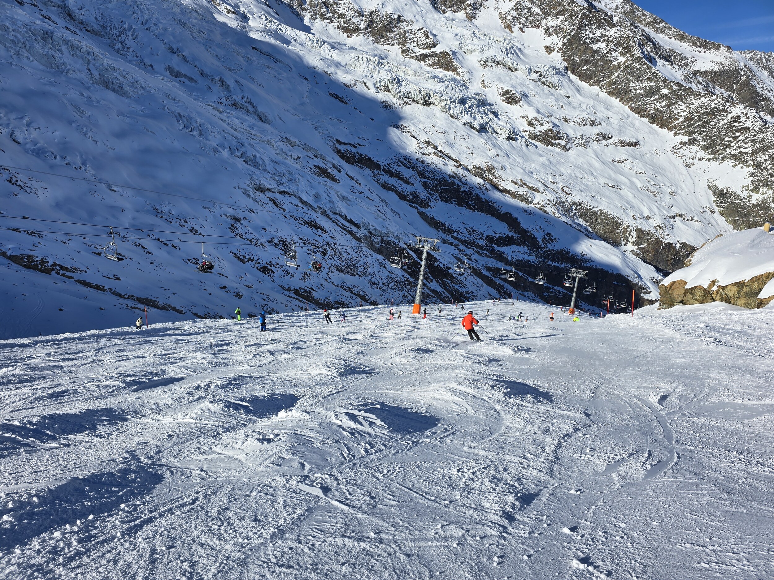 Heute geniale Verhältnisse in Saas-Fee. Im unteren Bereich griffig-harte Pisten, mit Abstand die besten Verhältnisse für mich diese Saison. Auf dem Gletscher waren wir bisher noch nicht, dort wohl aber eher weich. Der Andrang hält sich bisher in Grenzen, einzige Wartezeit waren 5-10 Minuten am Alpin-Express am Morgen. Der Bettenwechsel am Samstag macht sich bemerkbar.