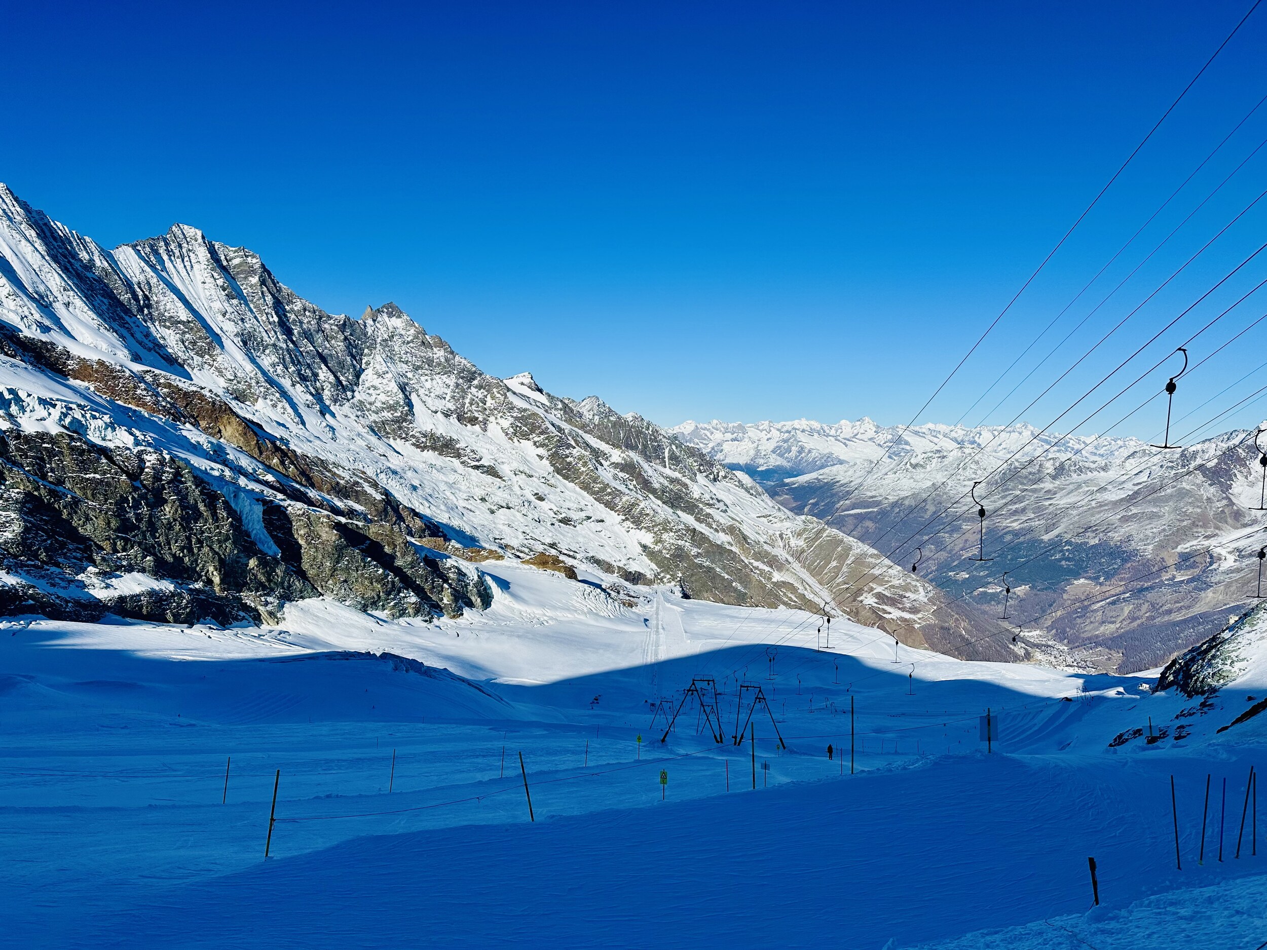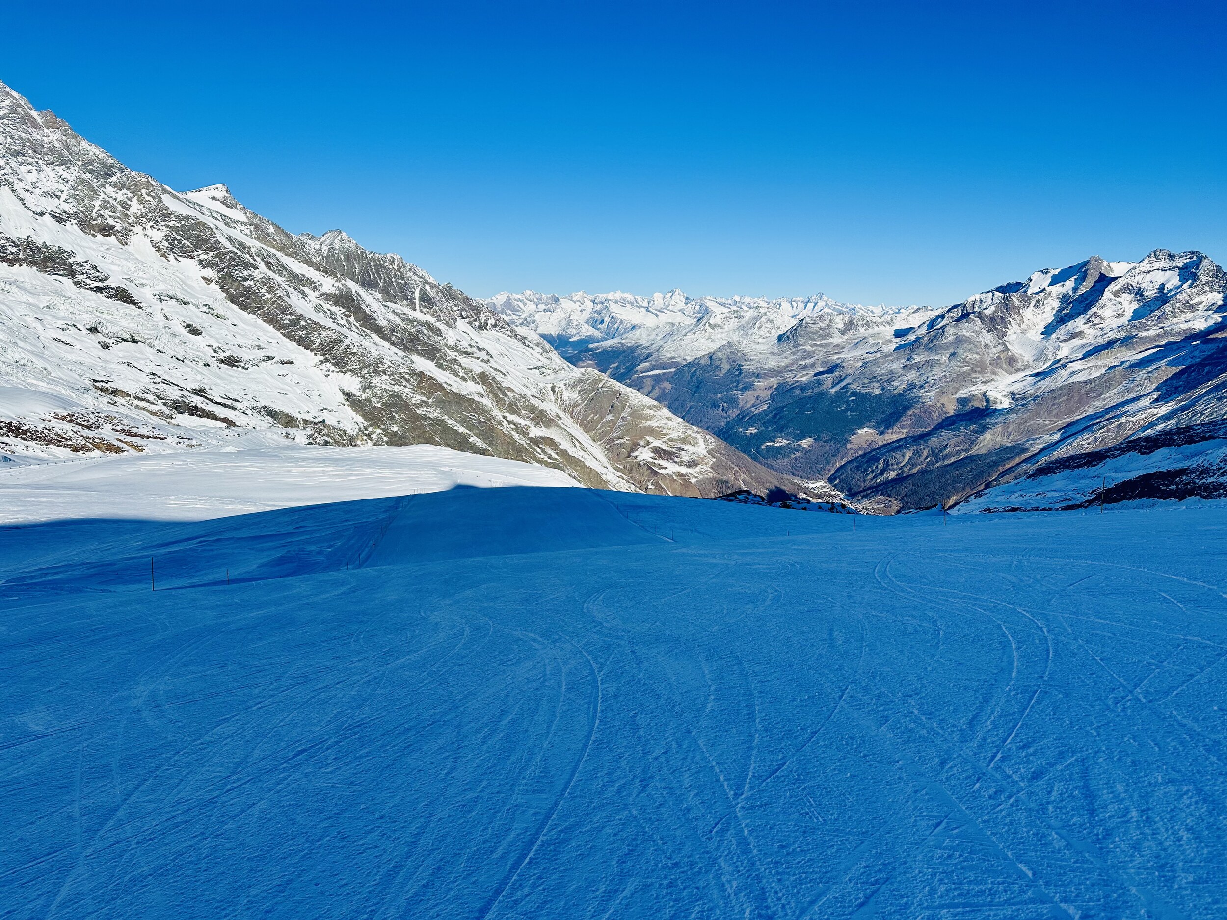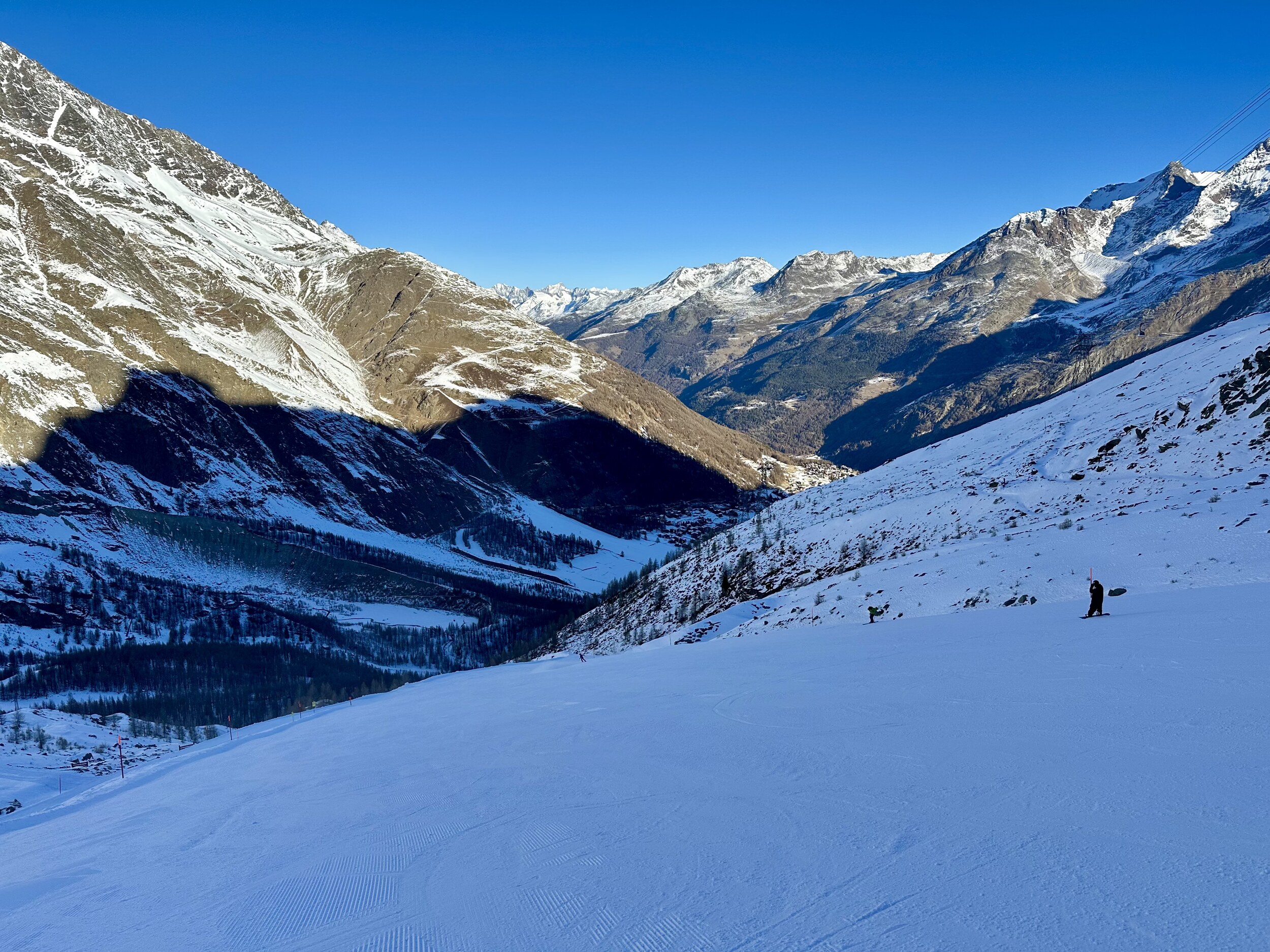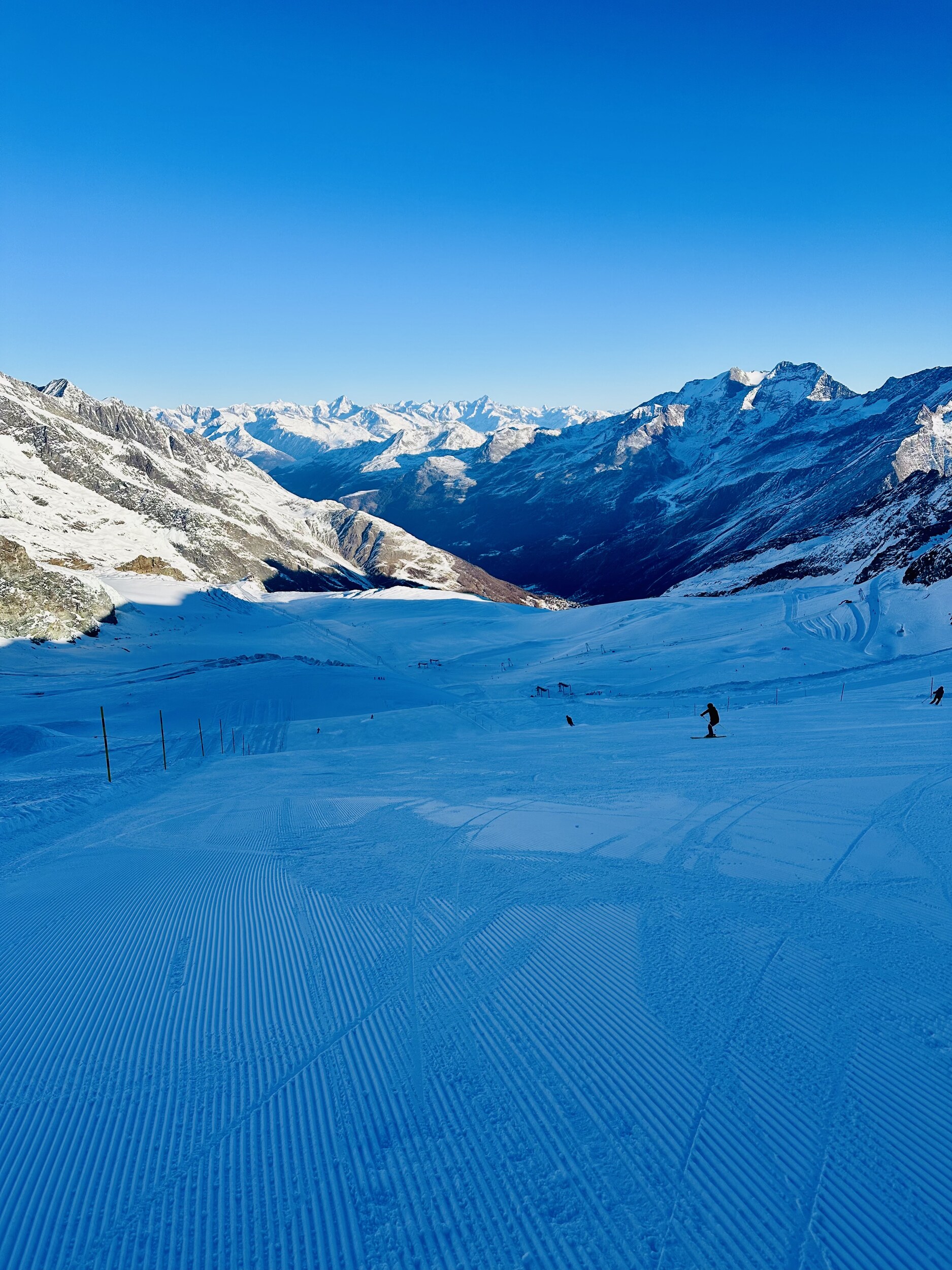 Heute geniale Verhältnisse in Saas-Fee. Im unteren Bereich griffig-harte Pisten, mit Abstand die besten Verhältnisse für mich diese Saison. Auf dem Gletscher waren wir bisher noch nicht, dort wohl aber eher weich. Der Andrang hält sich bisher in Grenzen, einzige Wartezeit waren 5-10 Minuten am Alpin-Express am Morgen. Der Bettenwechsel am Samstag macht sich bemerkbar.