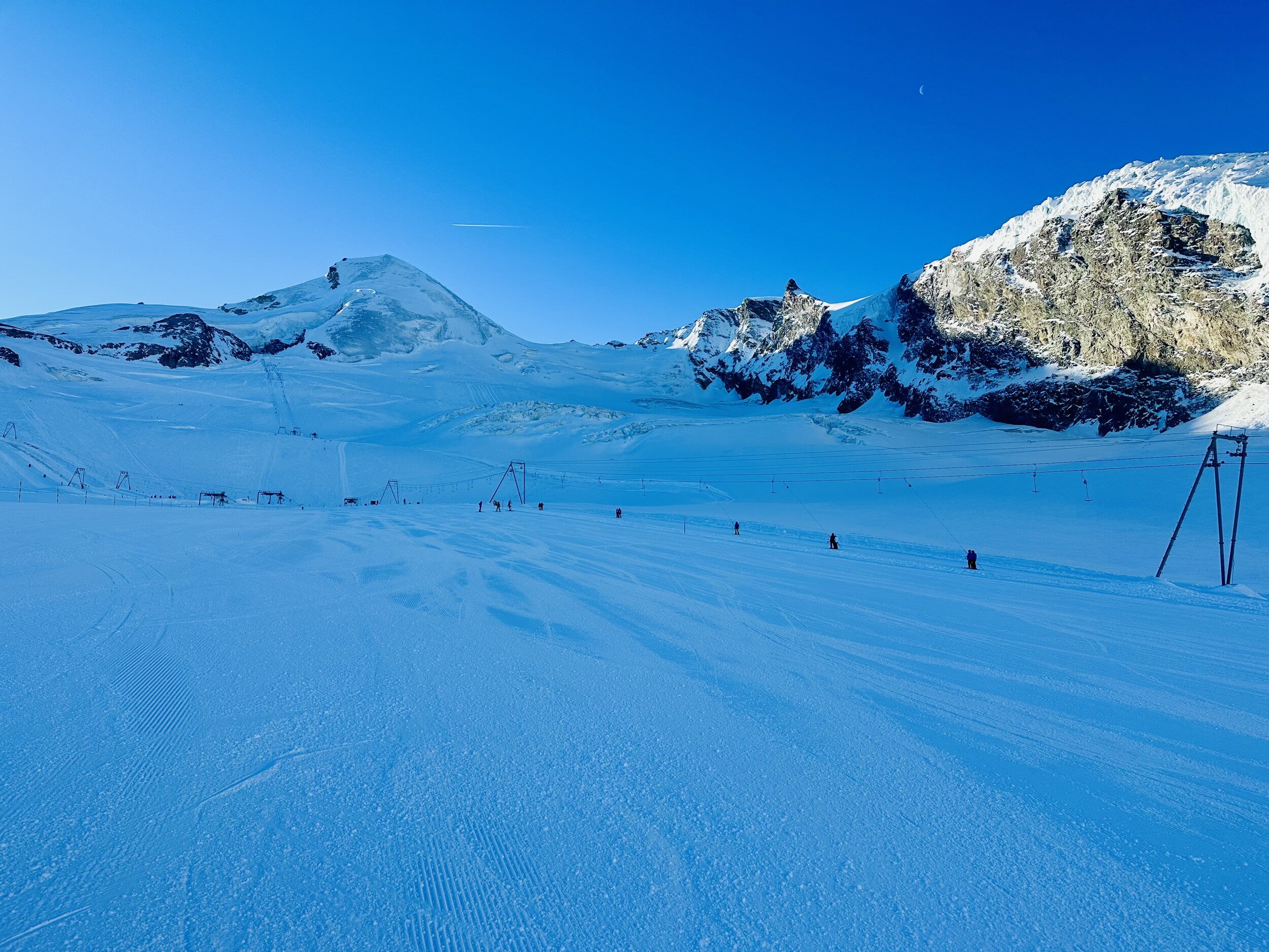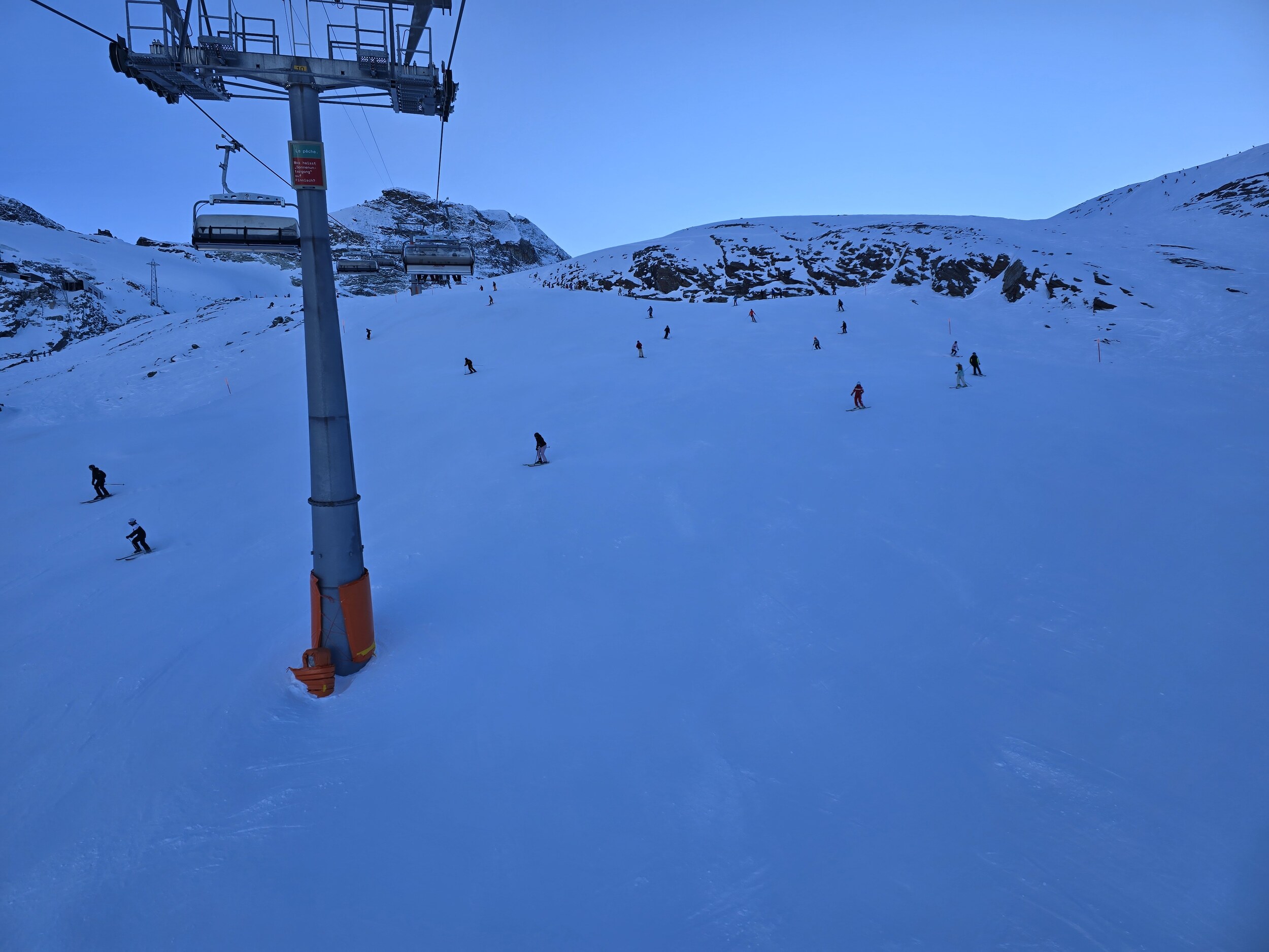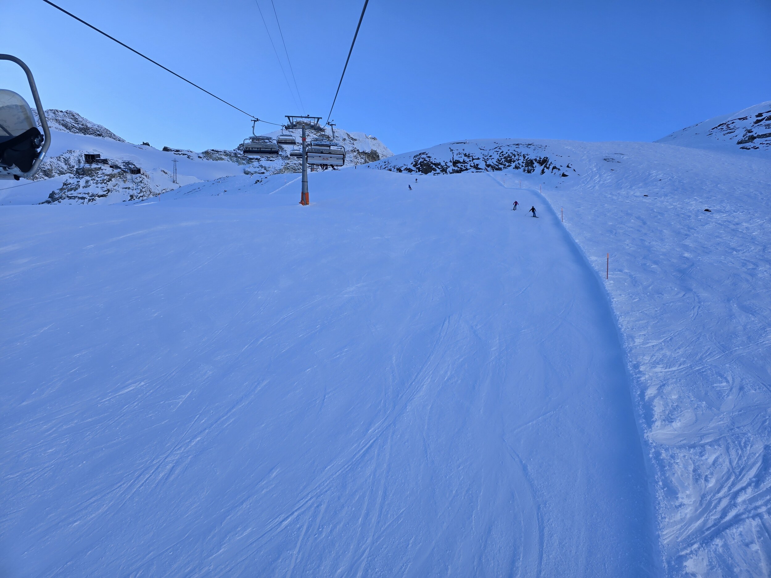 Heute copy Paste zu gestern. Es hat etwas weniger Leute und es ist etwas kälter. Pisten oben am Gletscher sensationell!