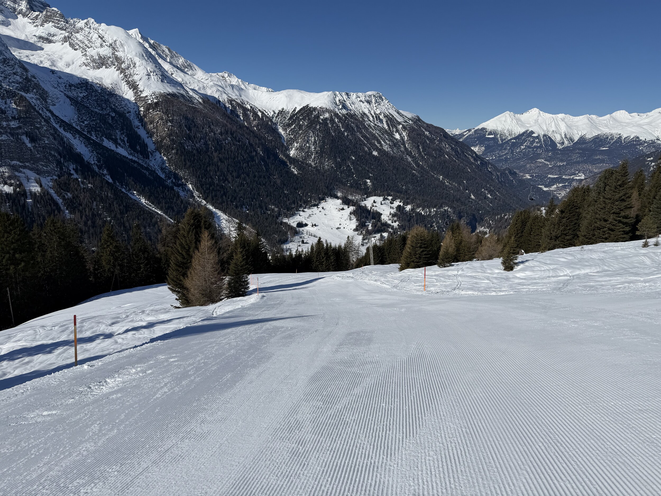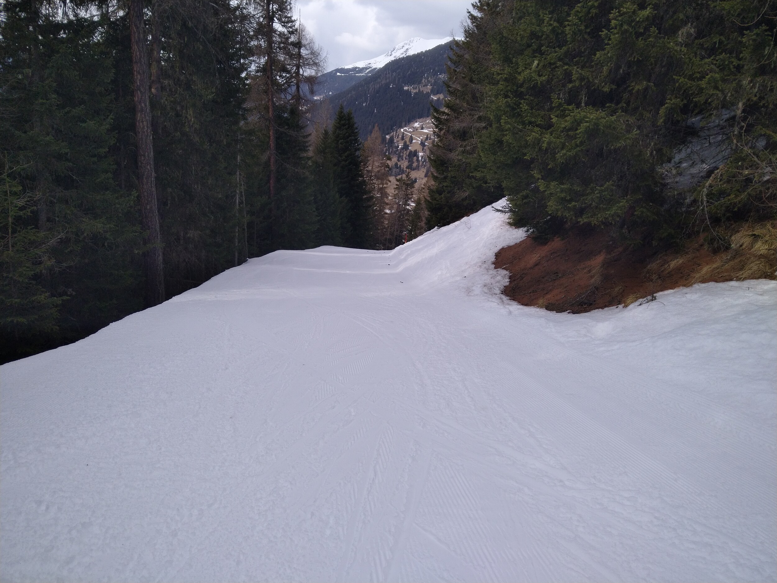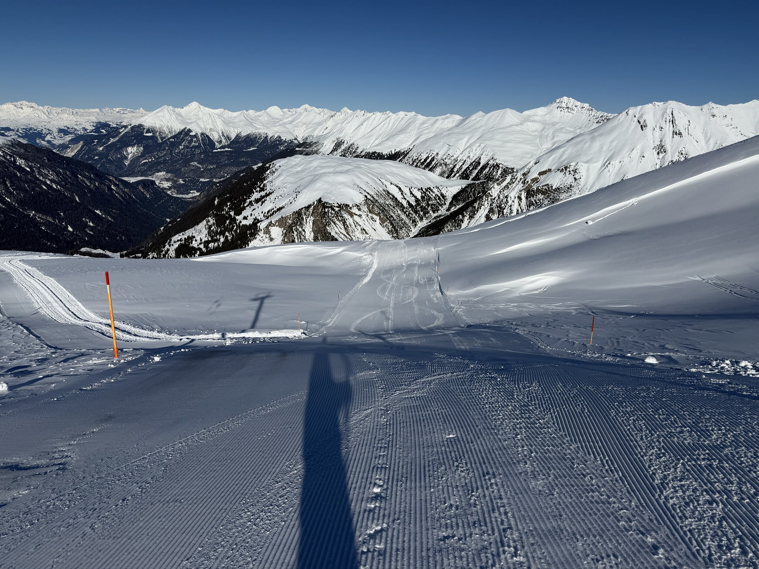 Die Pisten waren alle leicht sulzig und sehr gut zu fahren. Macht am Morgen definitiv mehr Spass als die pickelharte Talabfahrt in Darlux.