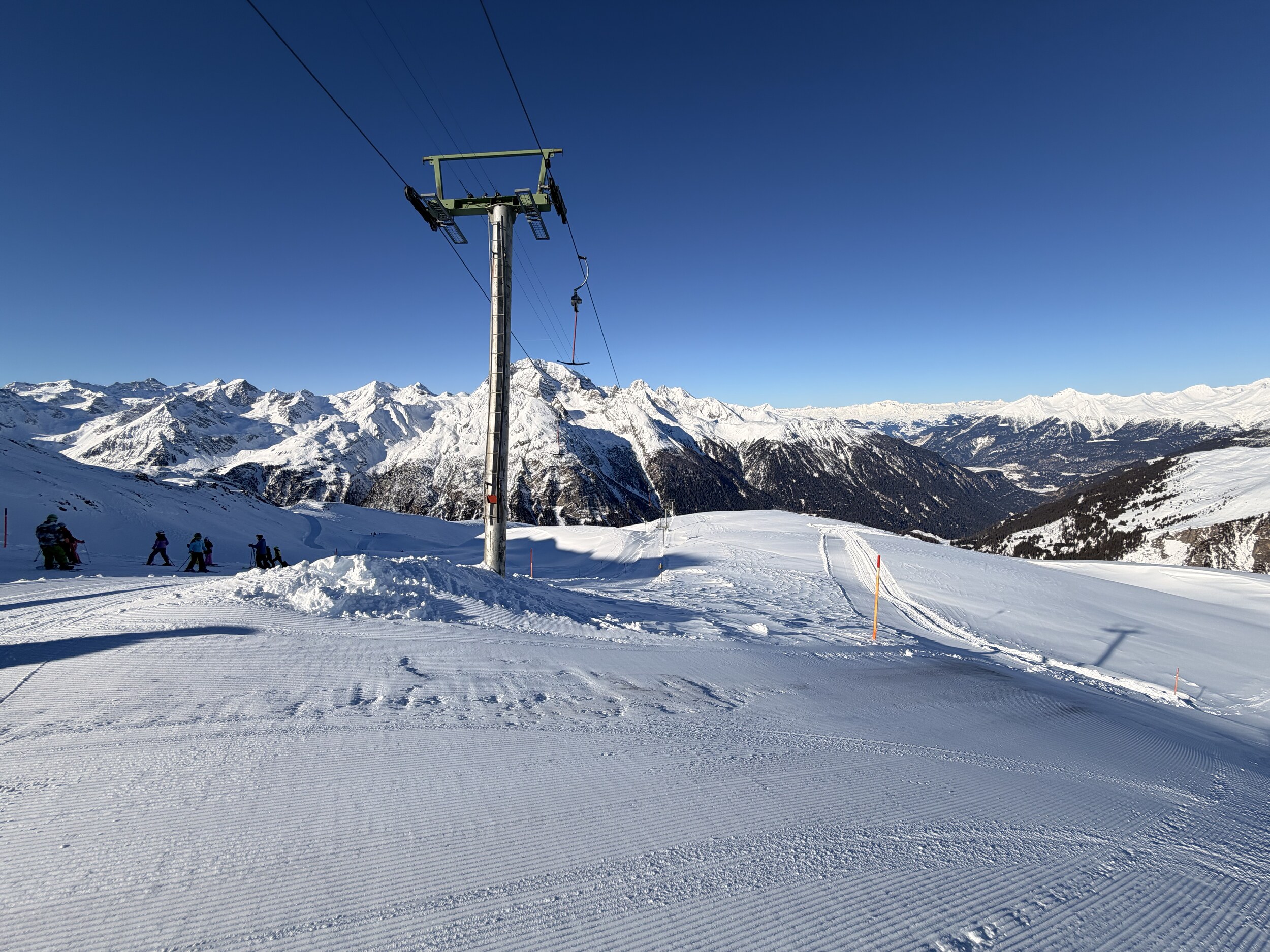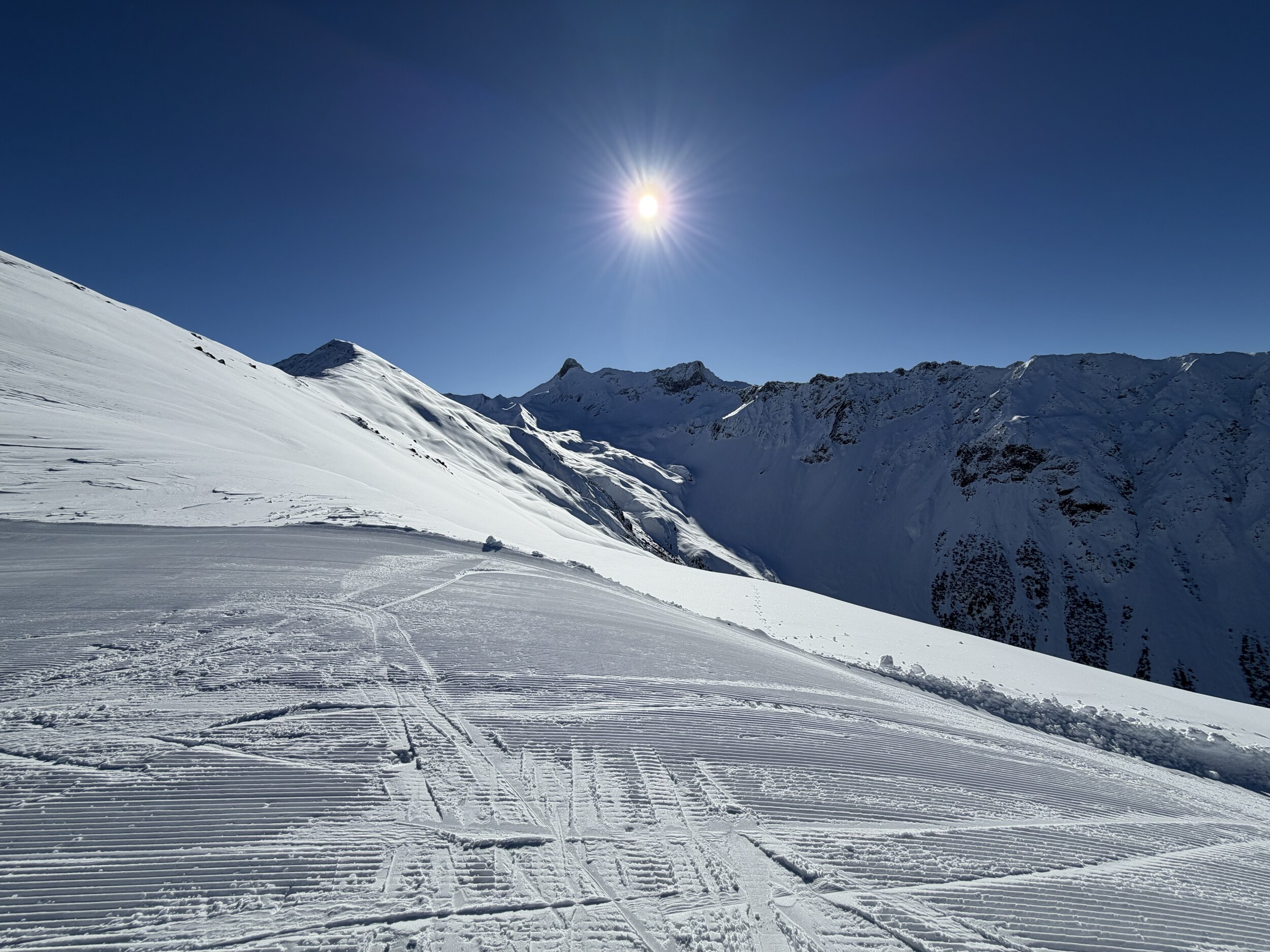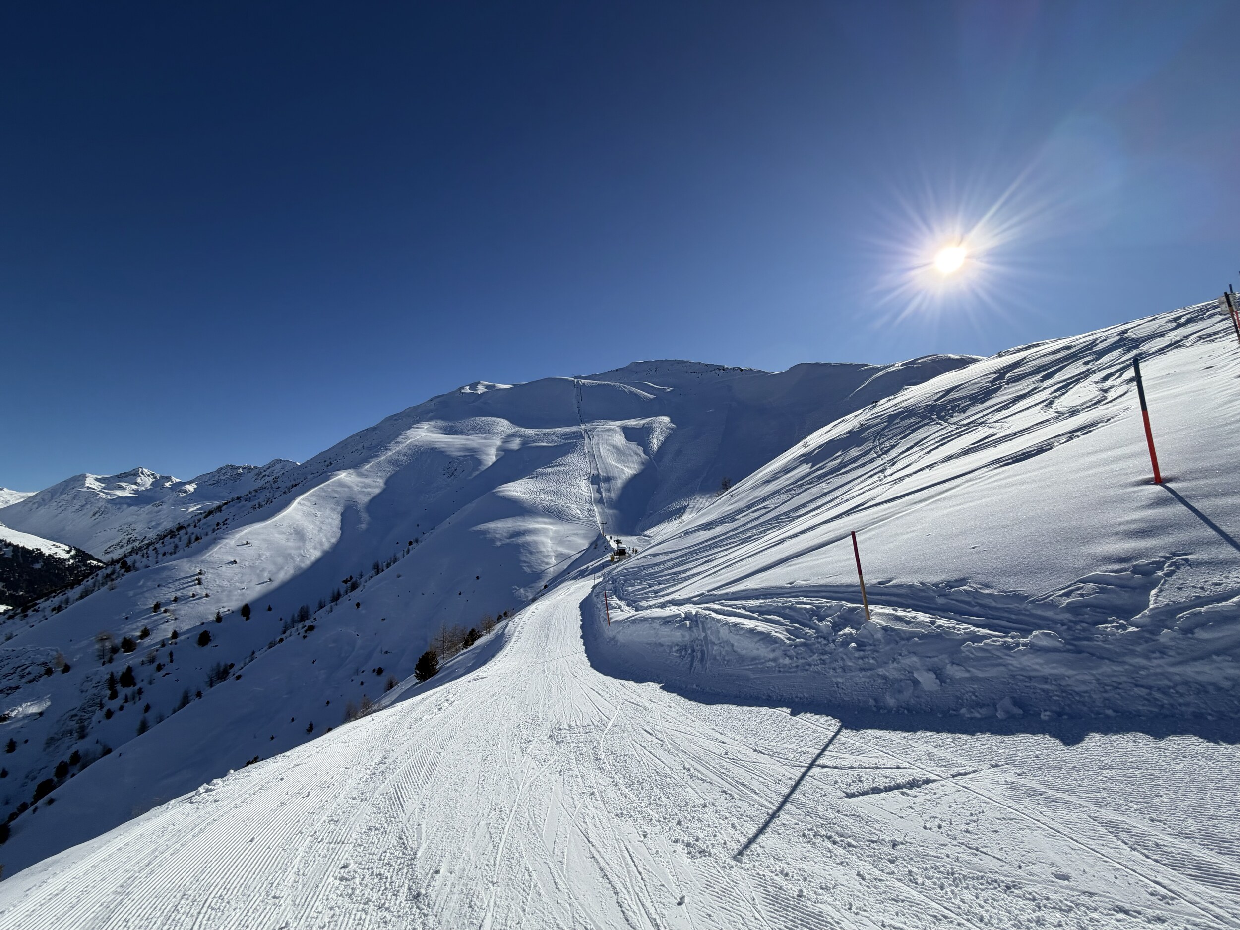 Die Pisten waren alle leicht sulzig und sehr gut zu fahren. Macht am Morgen definitiv mehr Spass als die pickelharte Talabfahrt in Darlux.