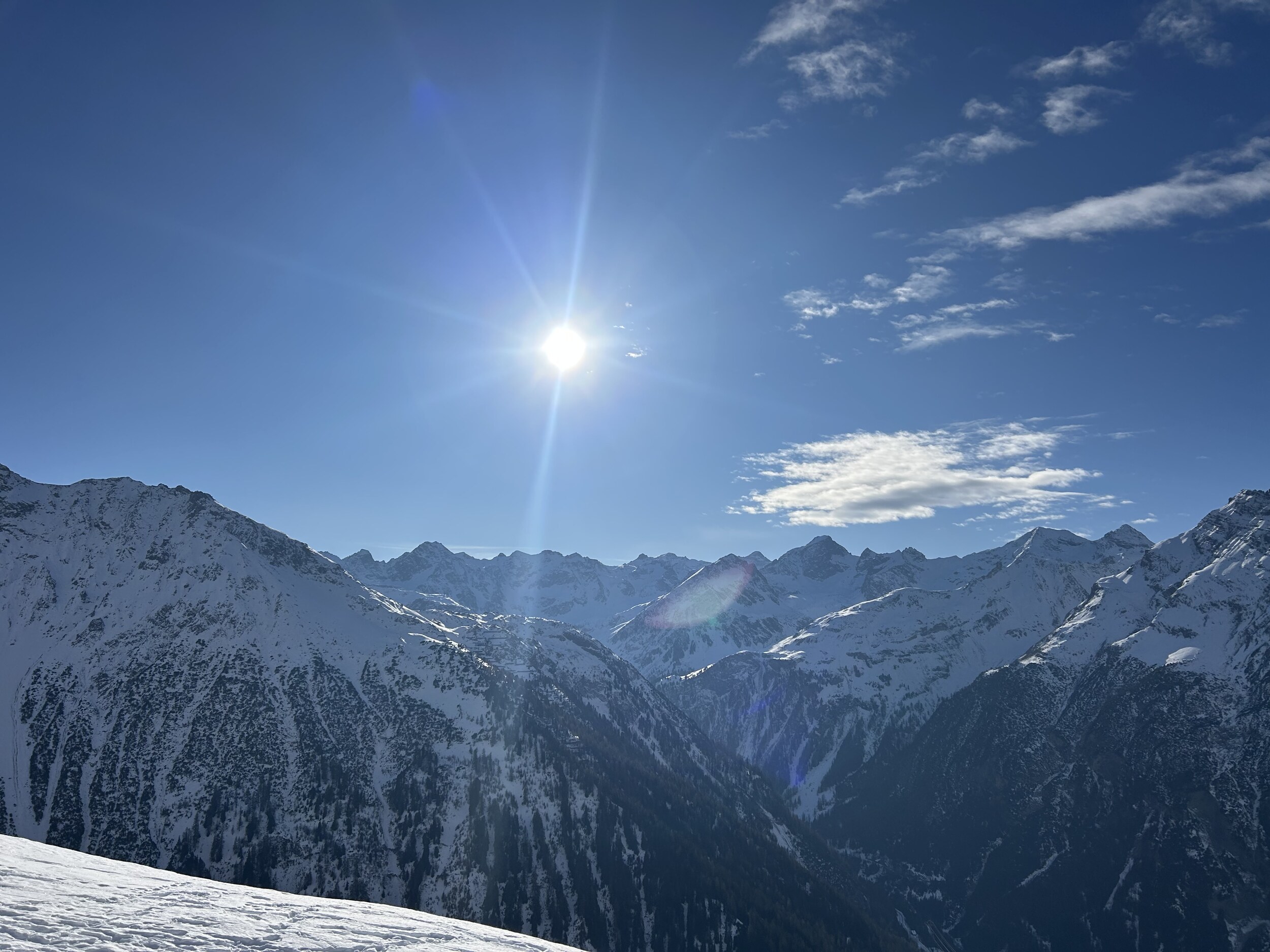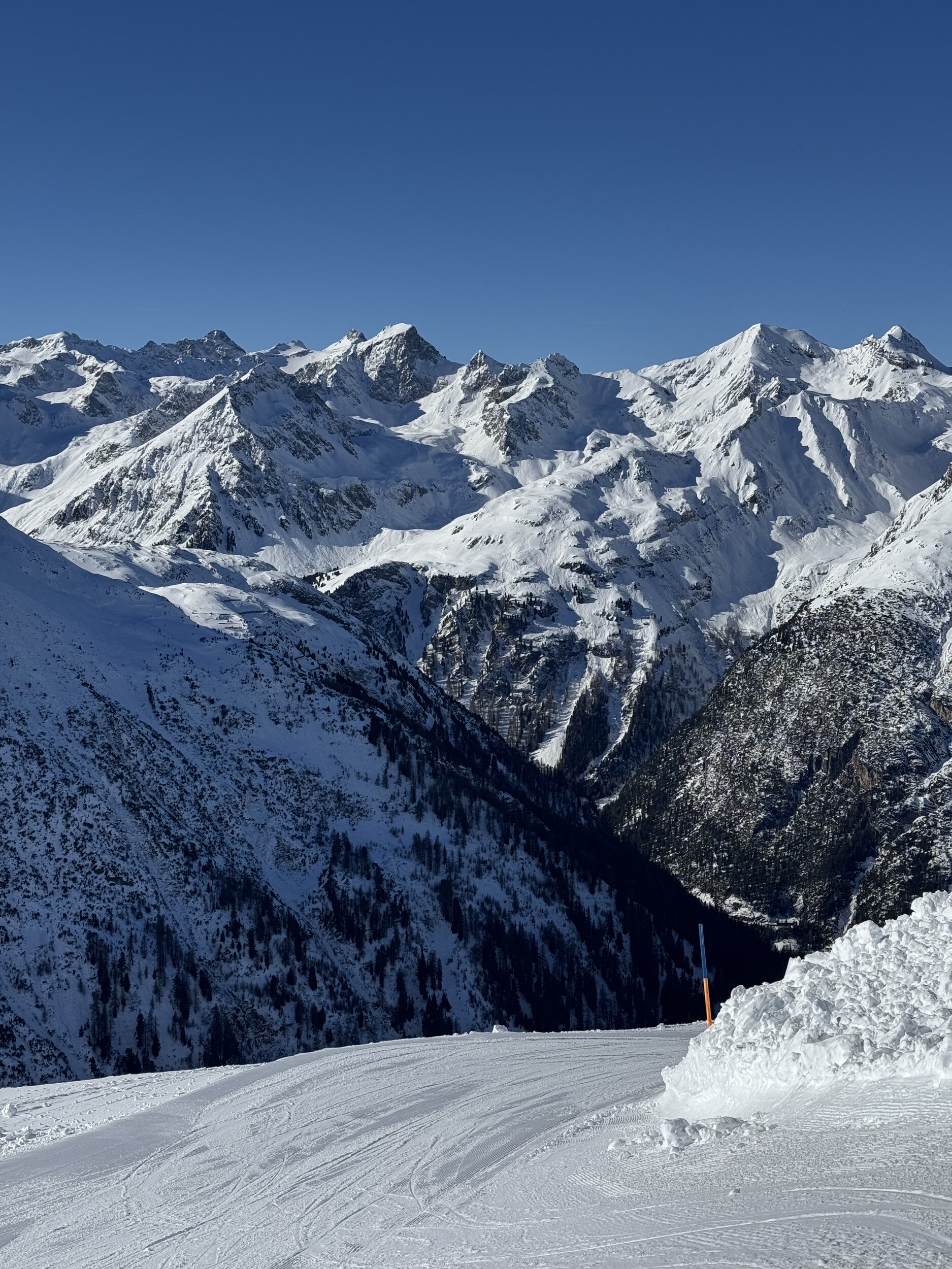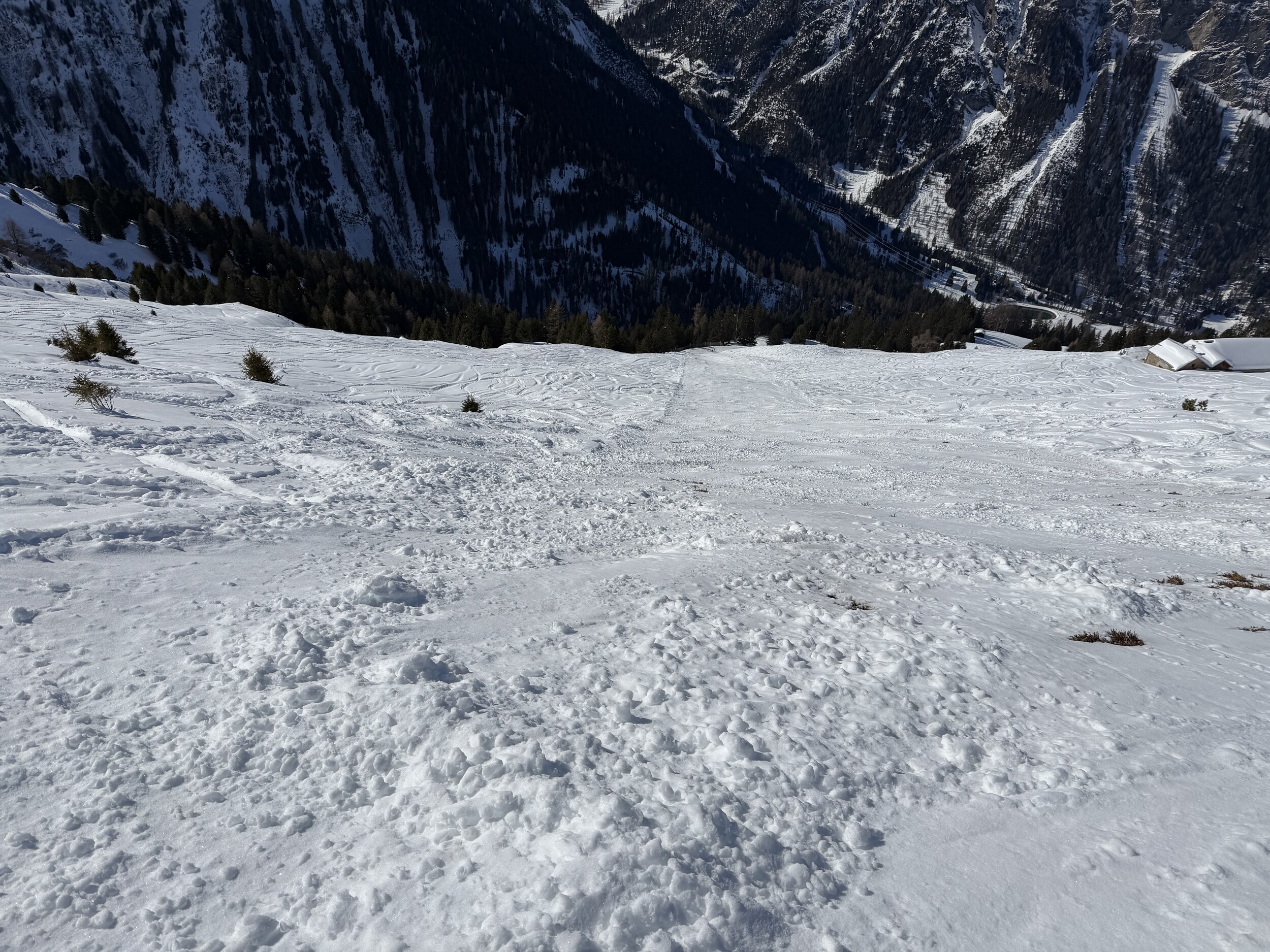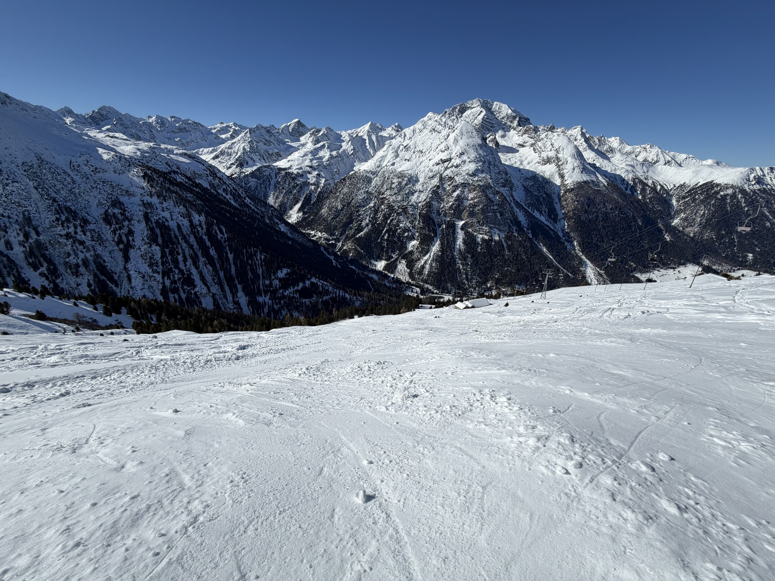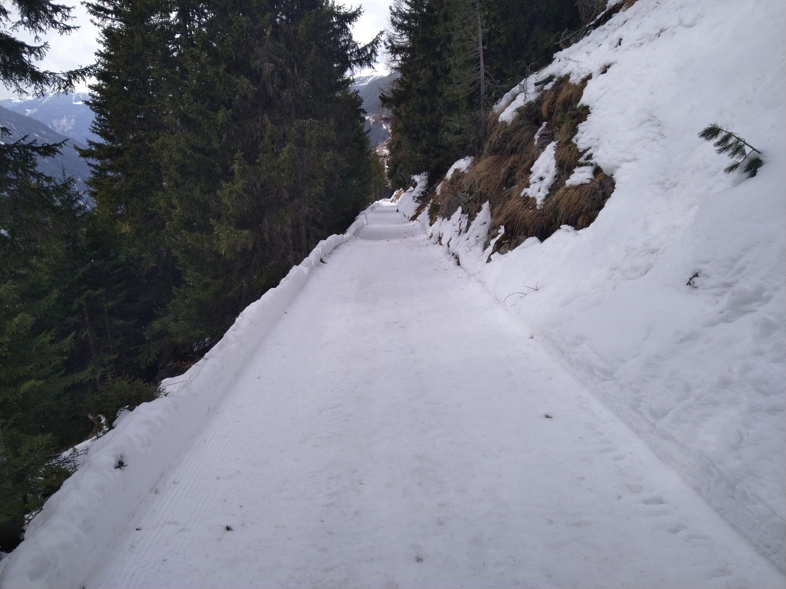 Die Talabfahrt aber bis auf die sonnigen Stellen nur Eis und macht wenig Spass.