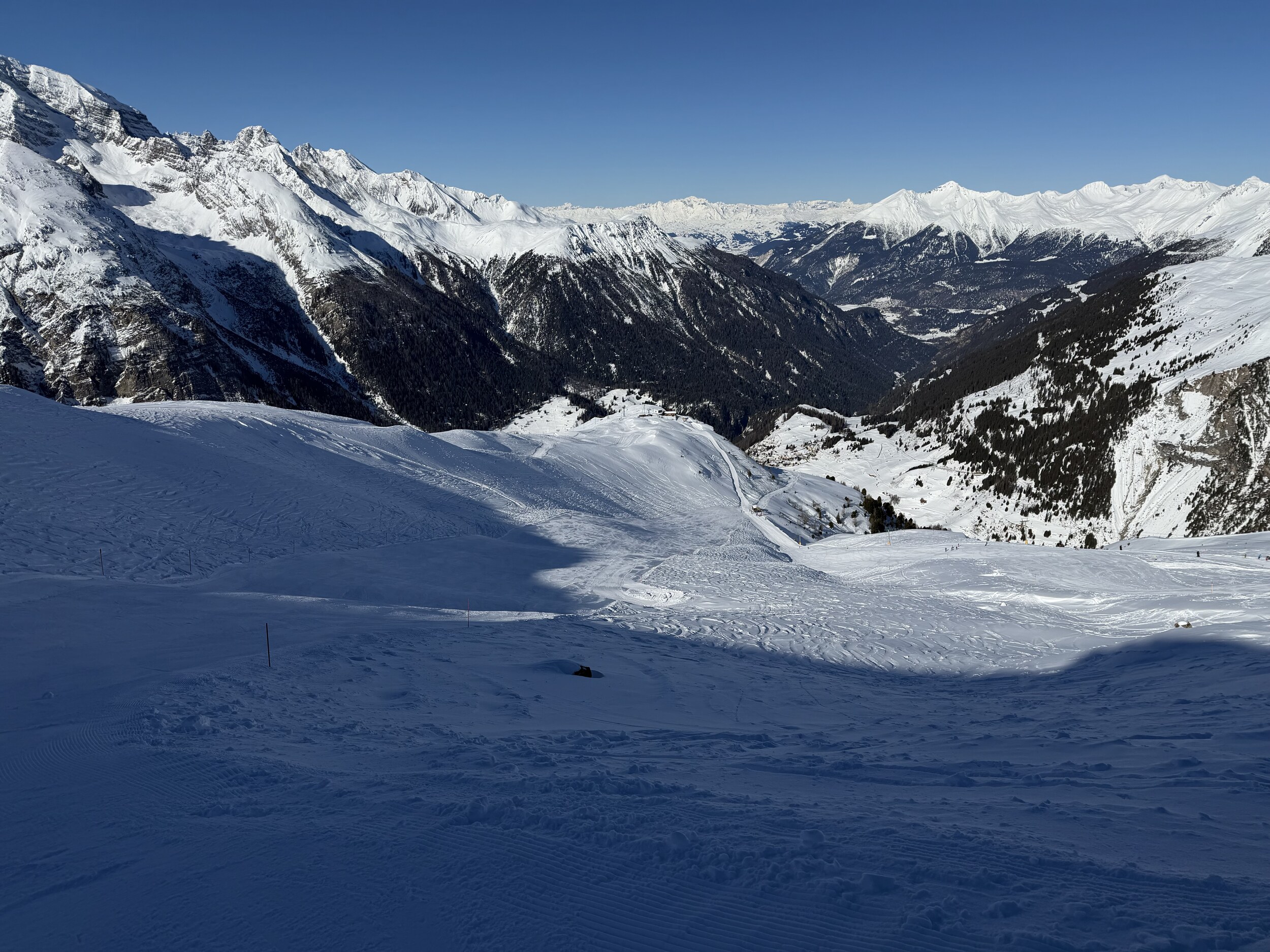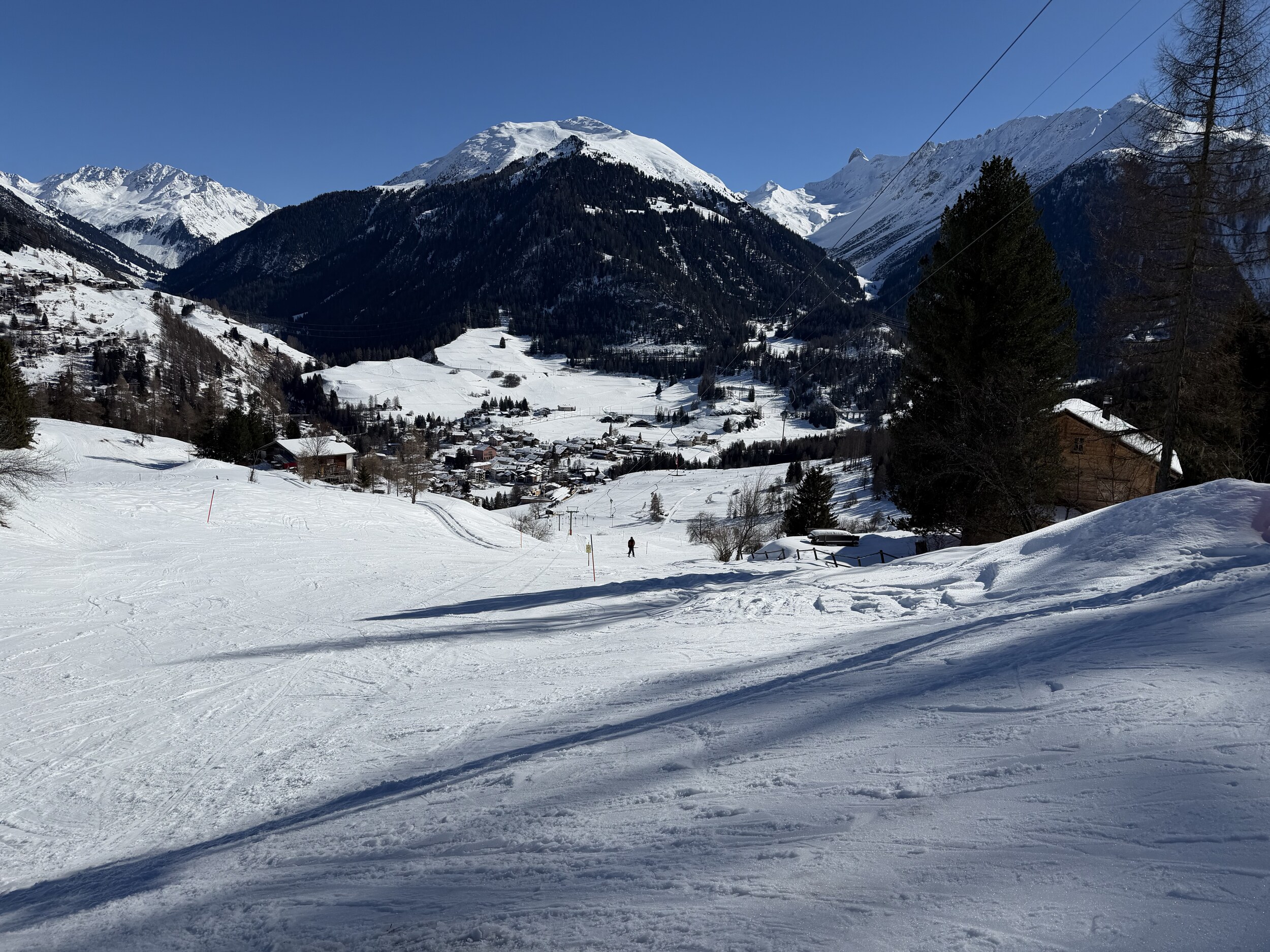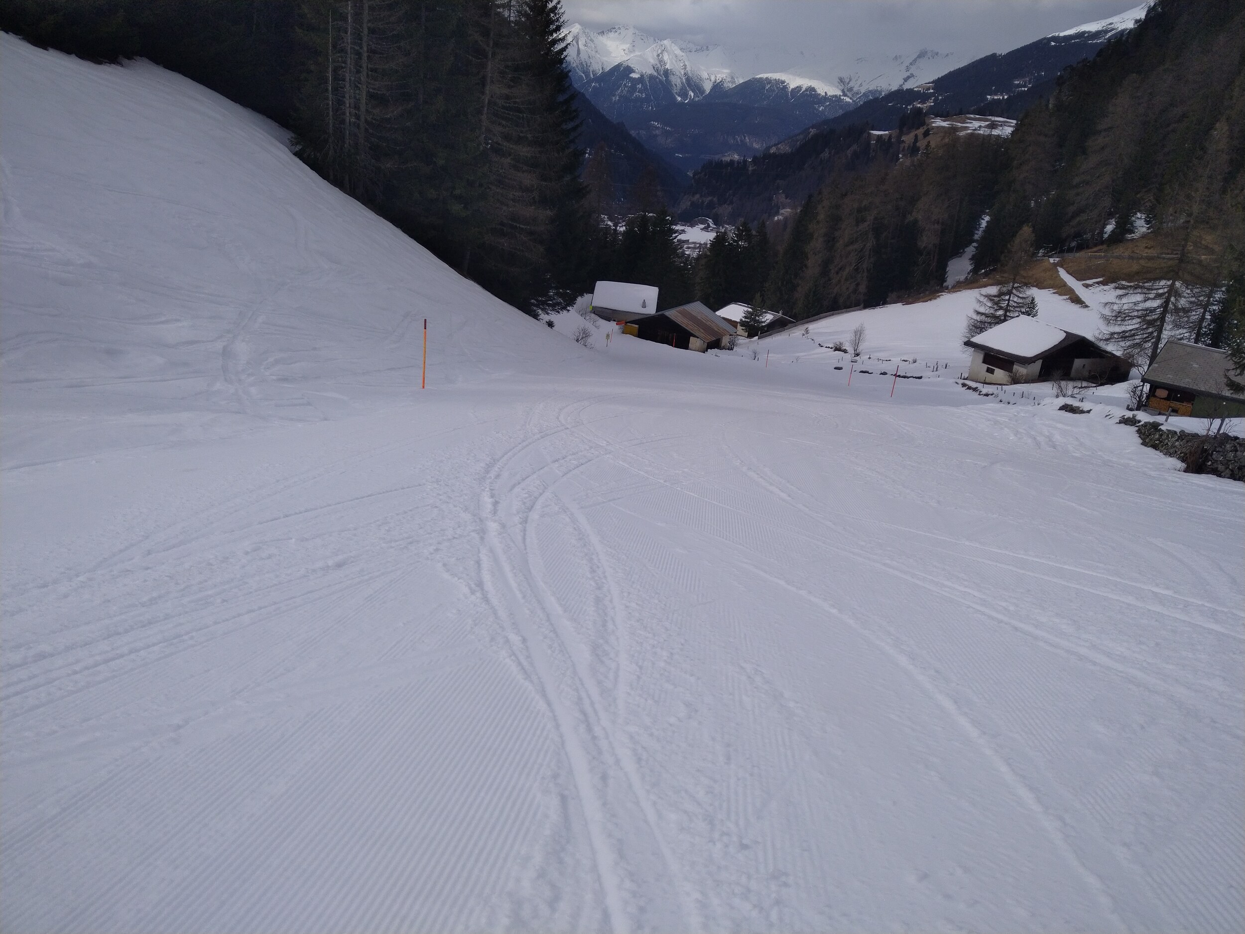 Die Talabfahrt ist (falls griffiger Schnee - bei uns leider hart/eisig) schön und abwechslungsreich, landschaftlich beeindruckend, wie schon in anderen Berichten im Forum gelobt, an einem sehr schönen Fleck in der Schweiz.