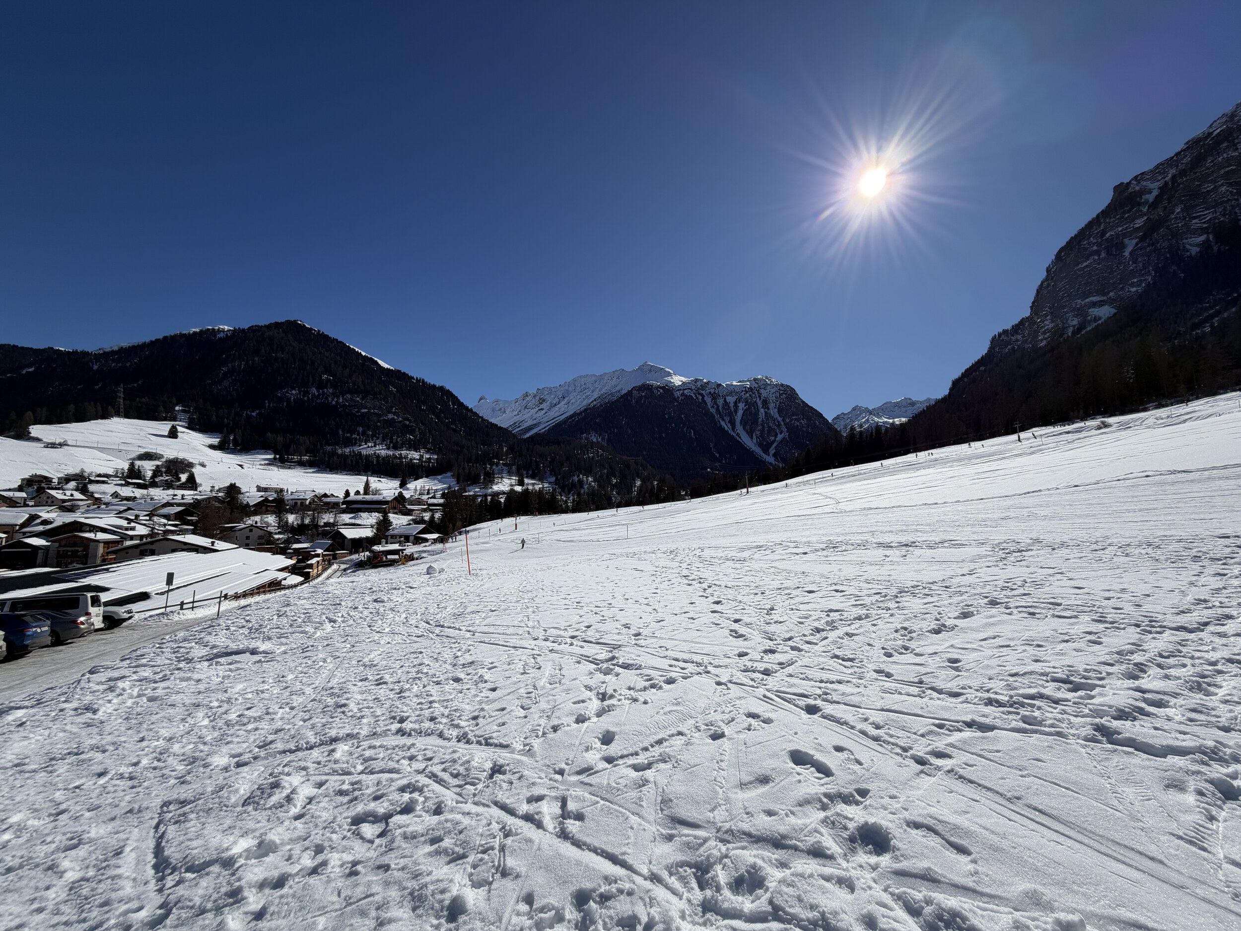 Heute den Ski-Erstbesuch in Bergün. Schlitteln war ich hier schon, auch im Sommer haben wir den Sessellift schon benutzt. Skifahren war ich noch nie.