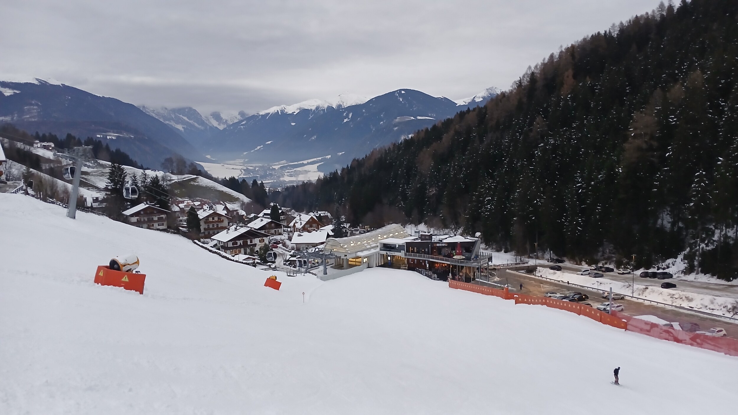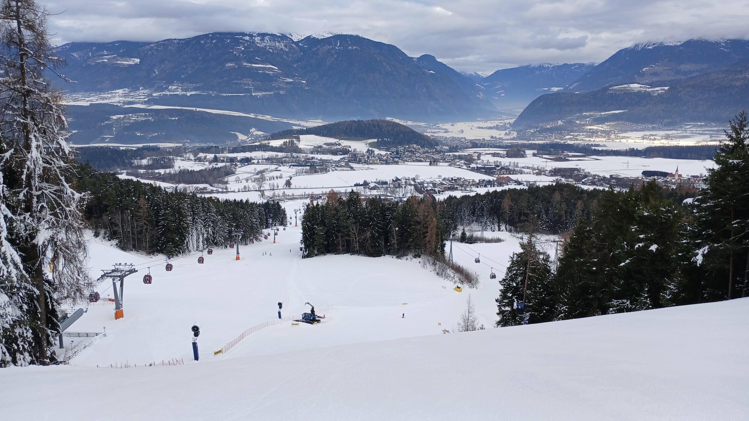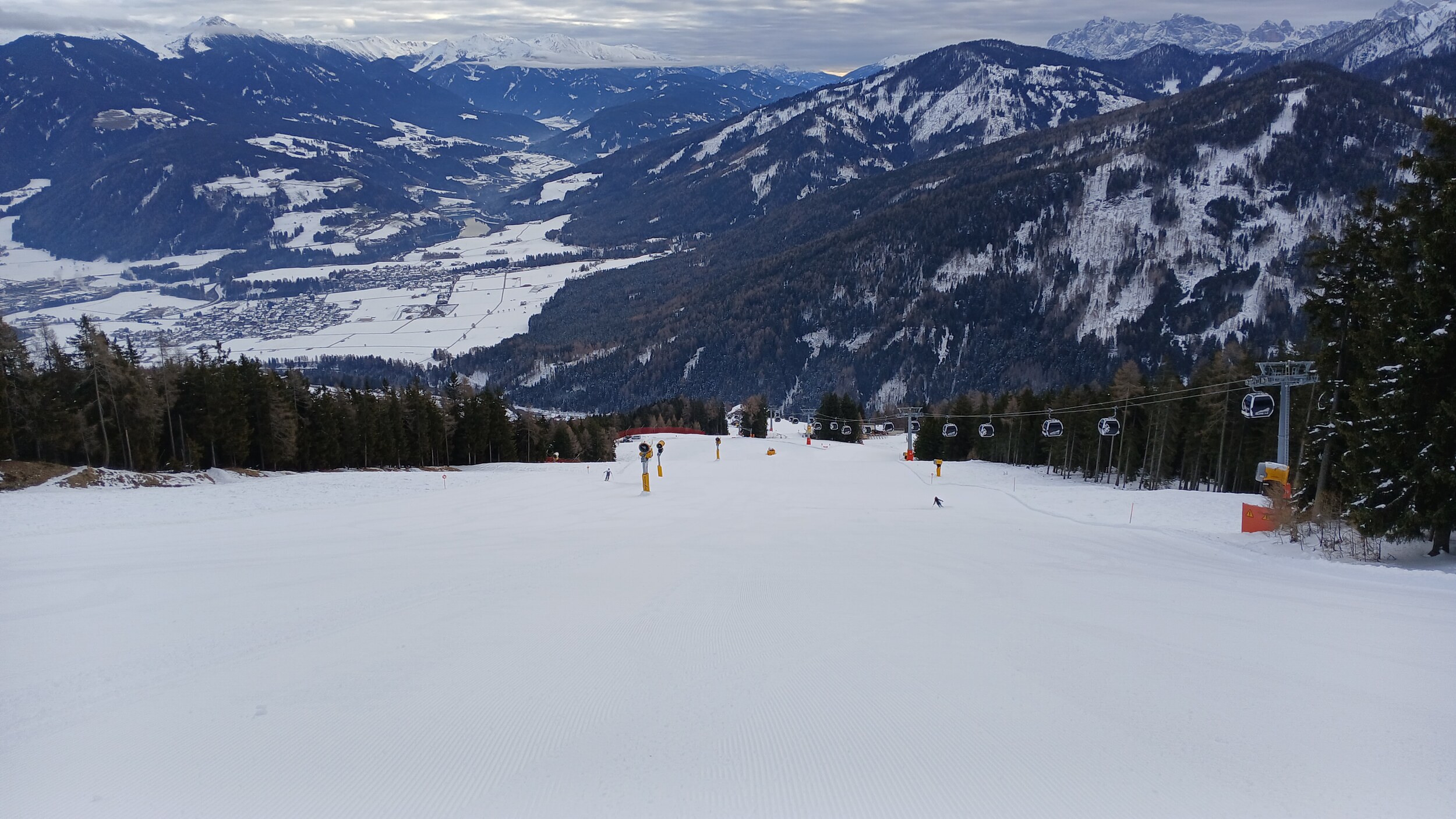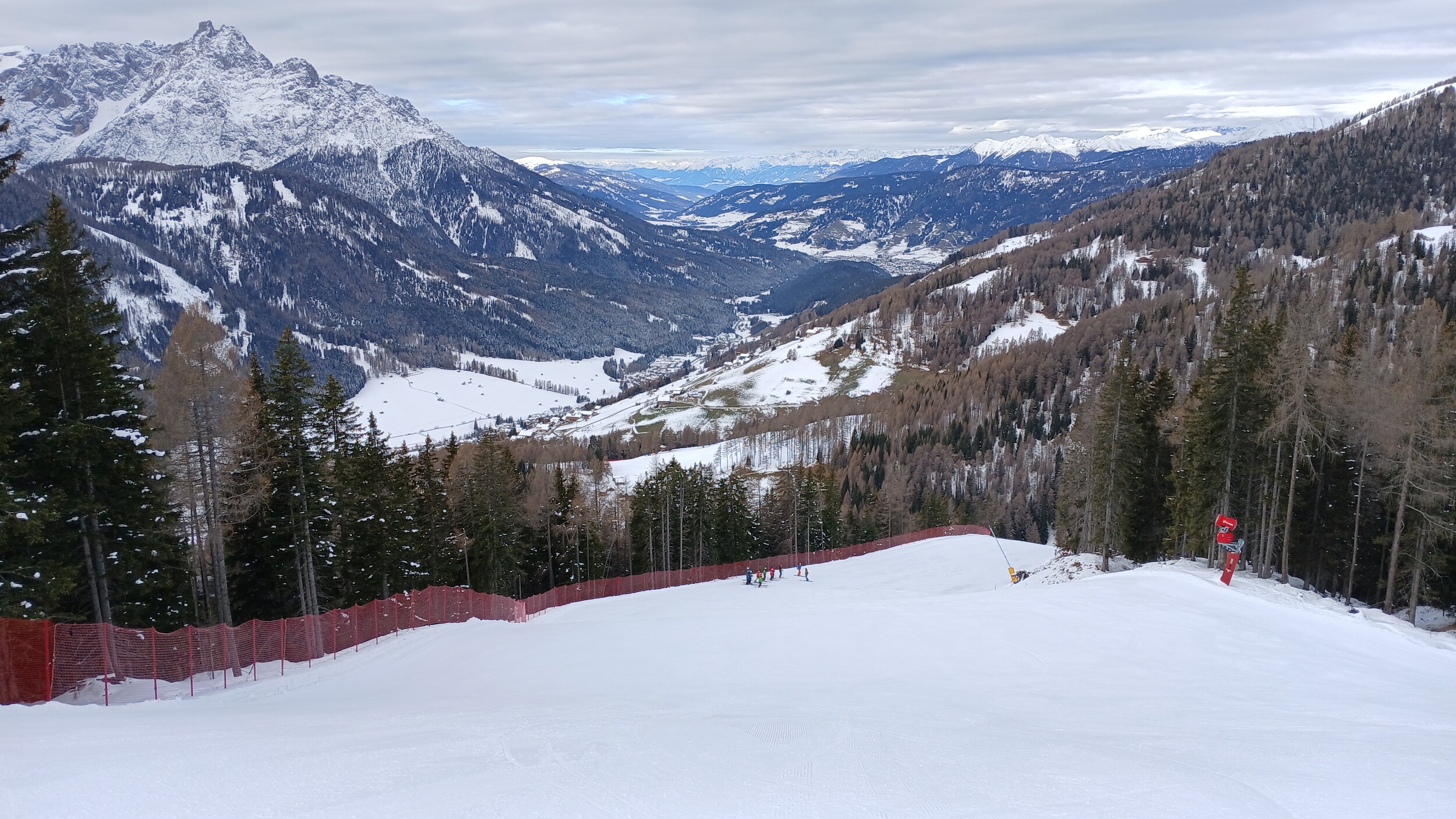 Von den Talabfahrten nach Vierschach ist "nur" die Rote geöffnet. Entgegen dem - wie so oft unbrauchbaren - interaktiven Pistenplan von Dolomiti Superski war aber auch deren schwarzer Steilhang im oberen Teil geöffnet.