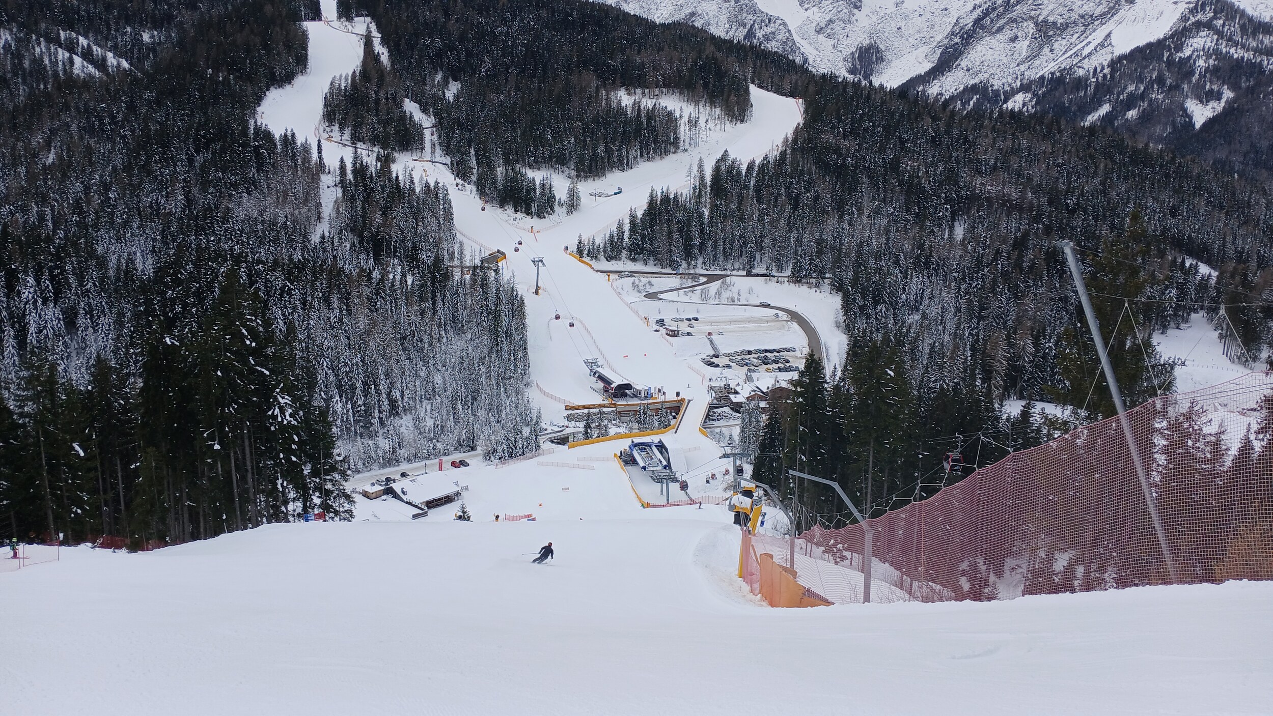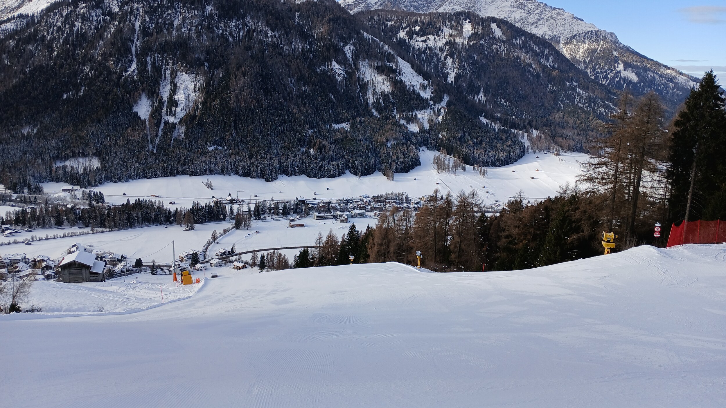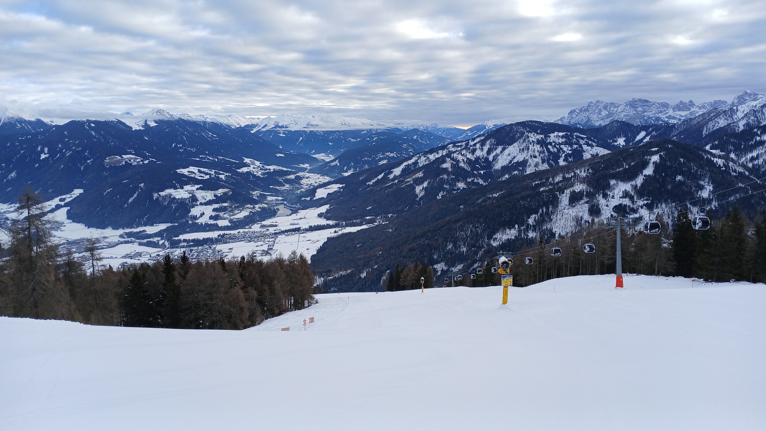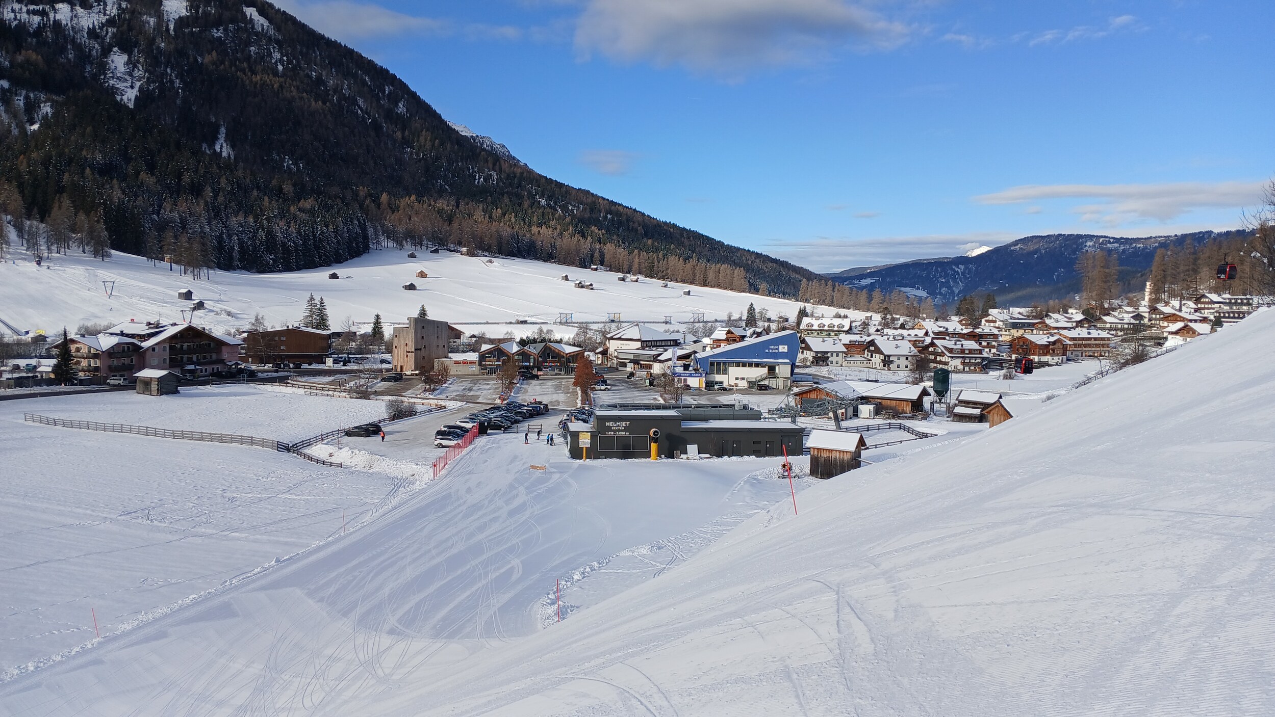 Von den Talabfahrten nach Vierschach ist "nur" die Rote geöffnet. Entgegen dem - wie so oft unbrauchbaren - interaktiven Pistenplan von Dolomiti Superski war aber auch deren schwarzer Steilhang im oberen Teil geöffnet.