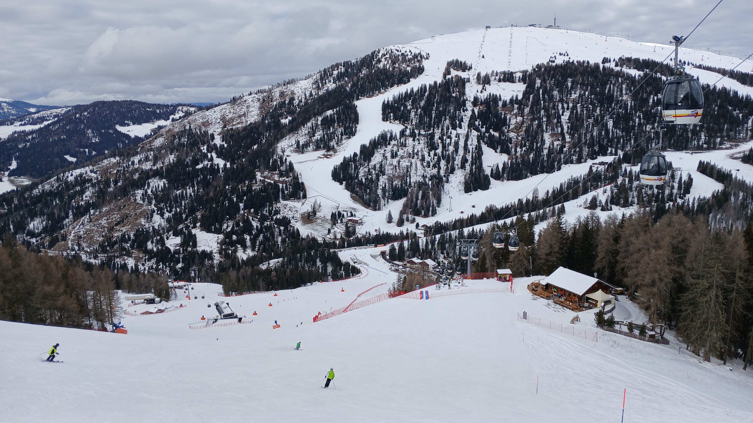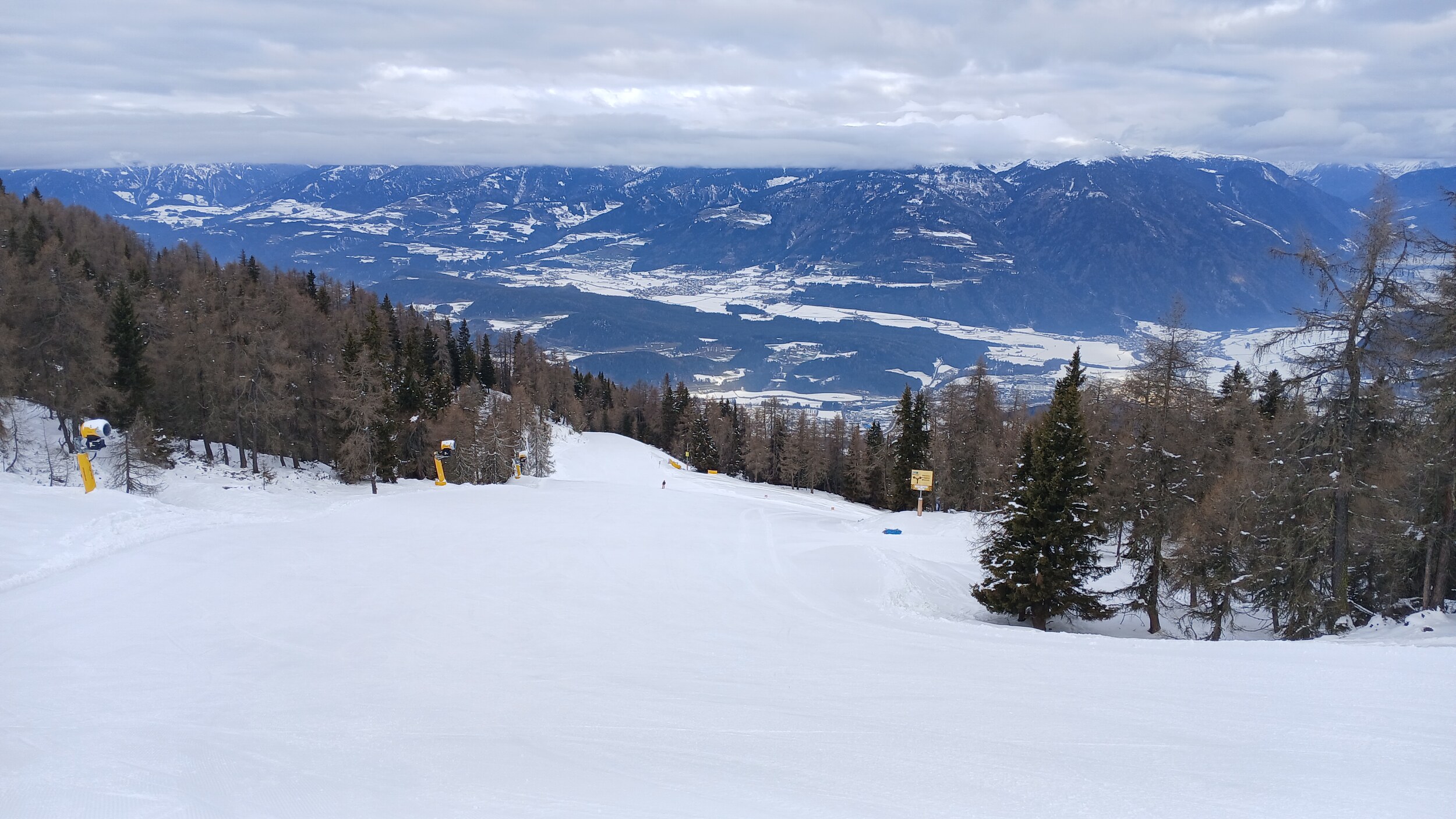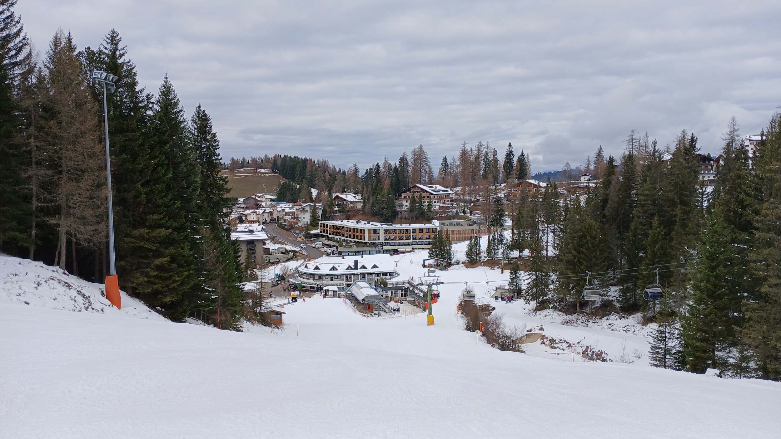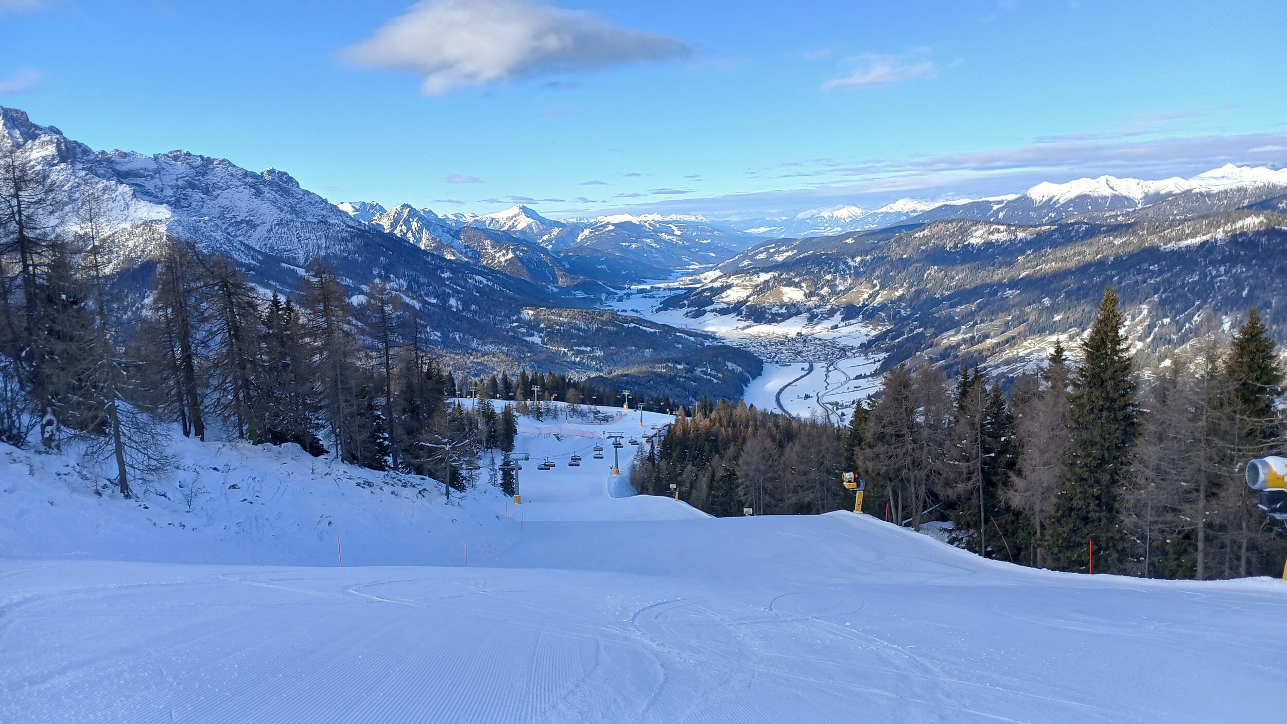 Von den Talabfahrten nach Vierschach ist "nur" die Rote geöffnet. Entgegen dem - wie so oft unbrauchbaren - interaktiven Pistenplan von Dolomiti Superski war aber auch deren schwarzer Steilhang im oberen Teil geöffnet.