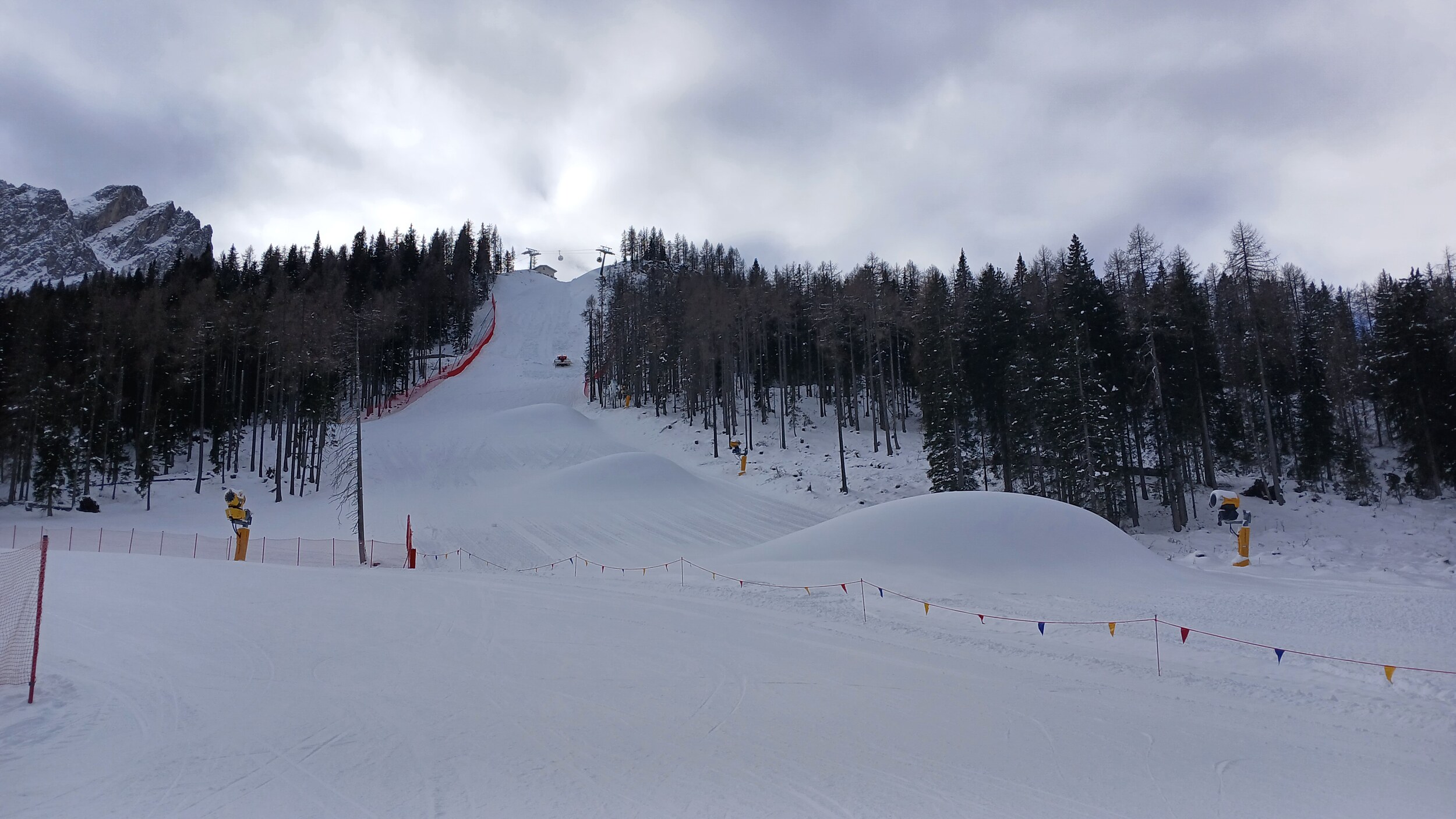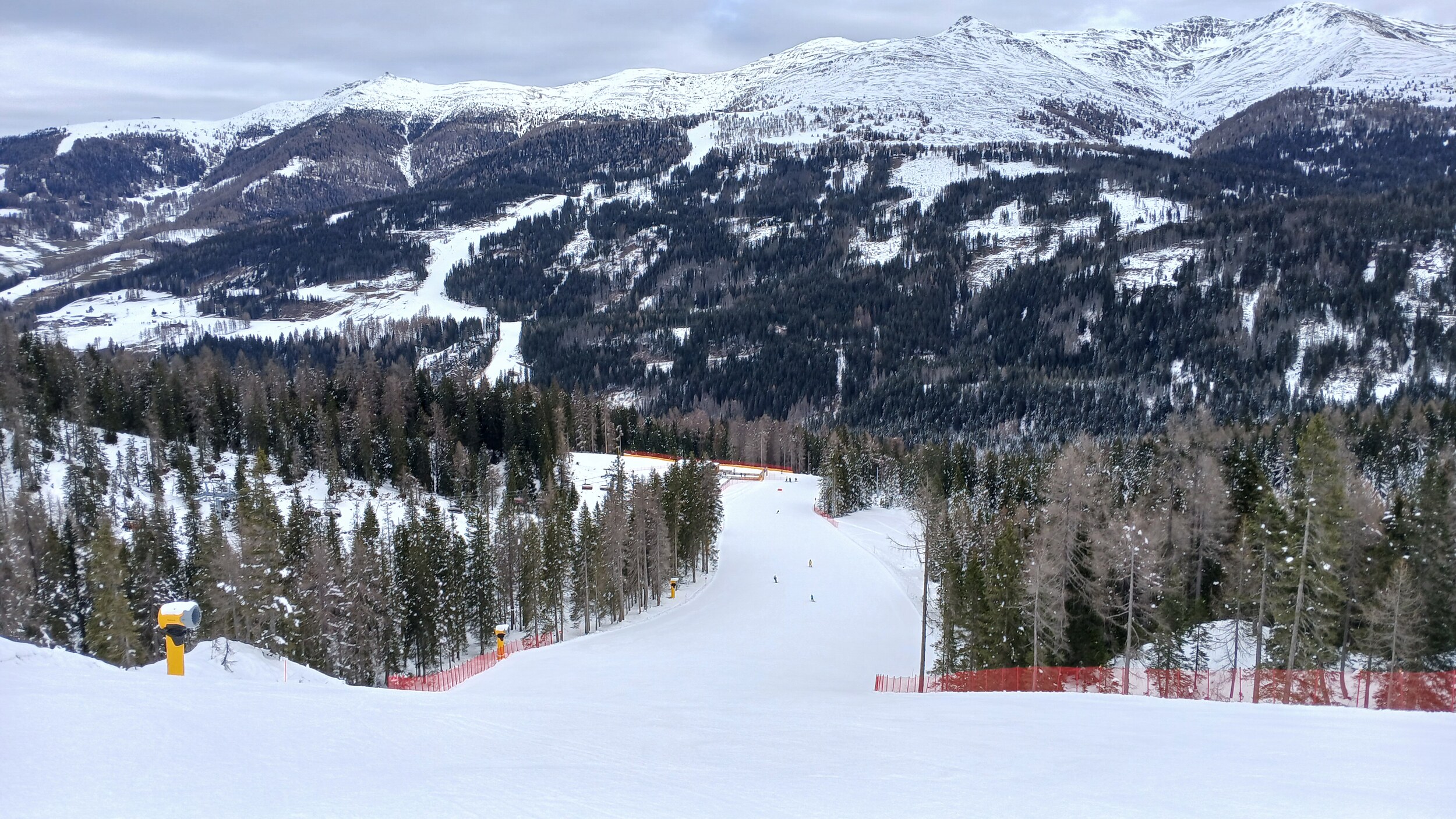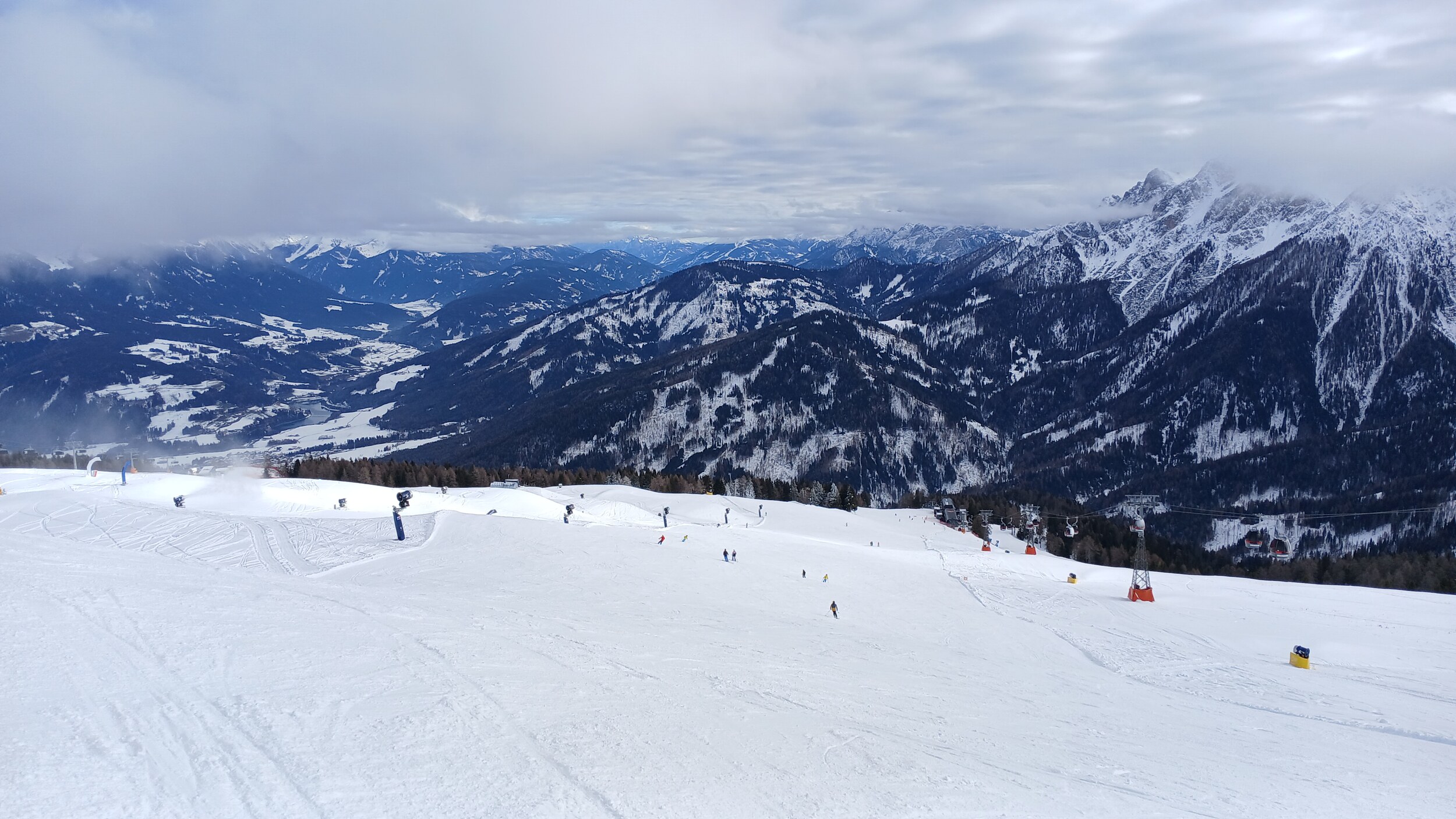 Die Talabfahrt nach Vierschach war einfach sagenhaft gigantisch. Da kommt die Skiwelt - natürlich auch aufgrund der topografischen Gegebenheiten - niemals ran. Die schwarze Talabfahrt nach Vierschach ist noch lange nicht fertig beschneit.