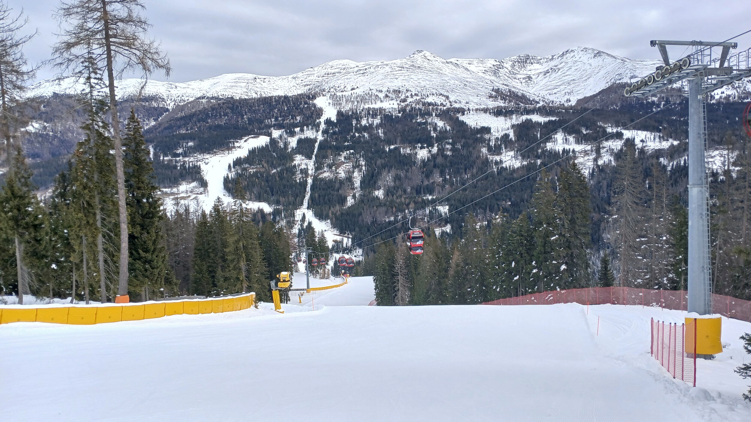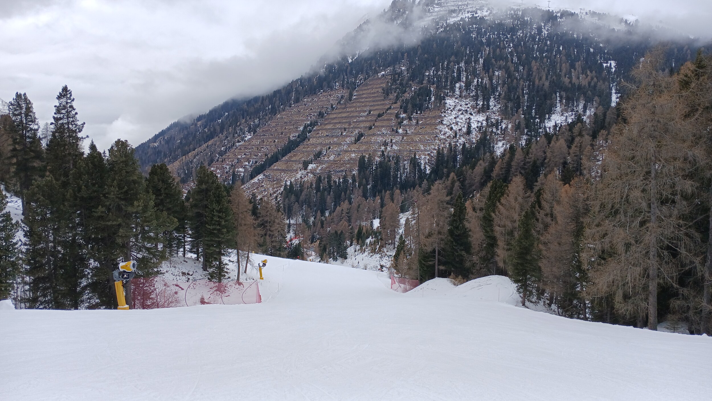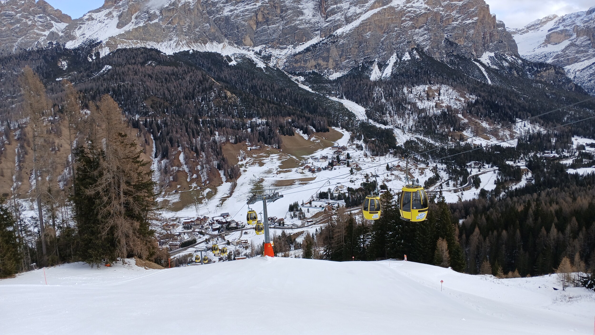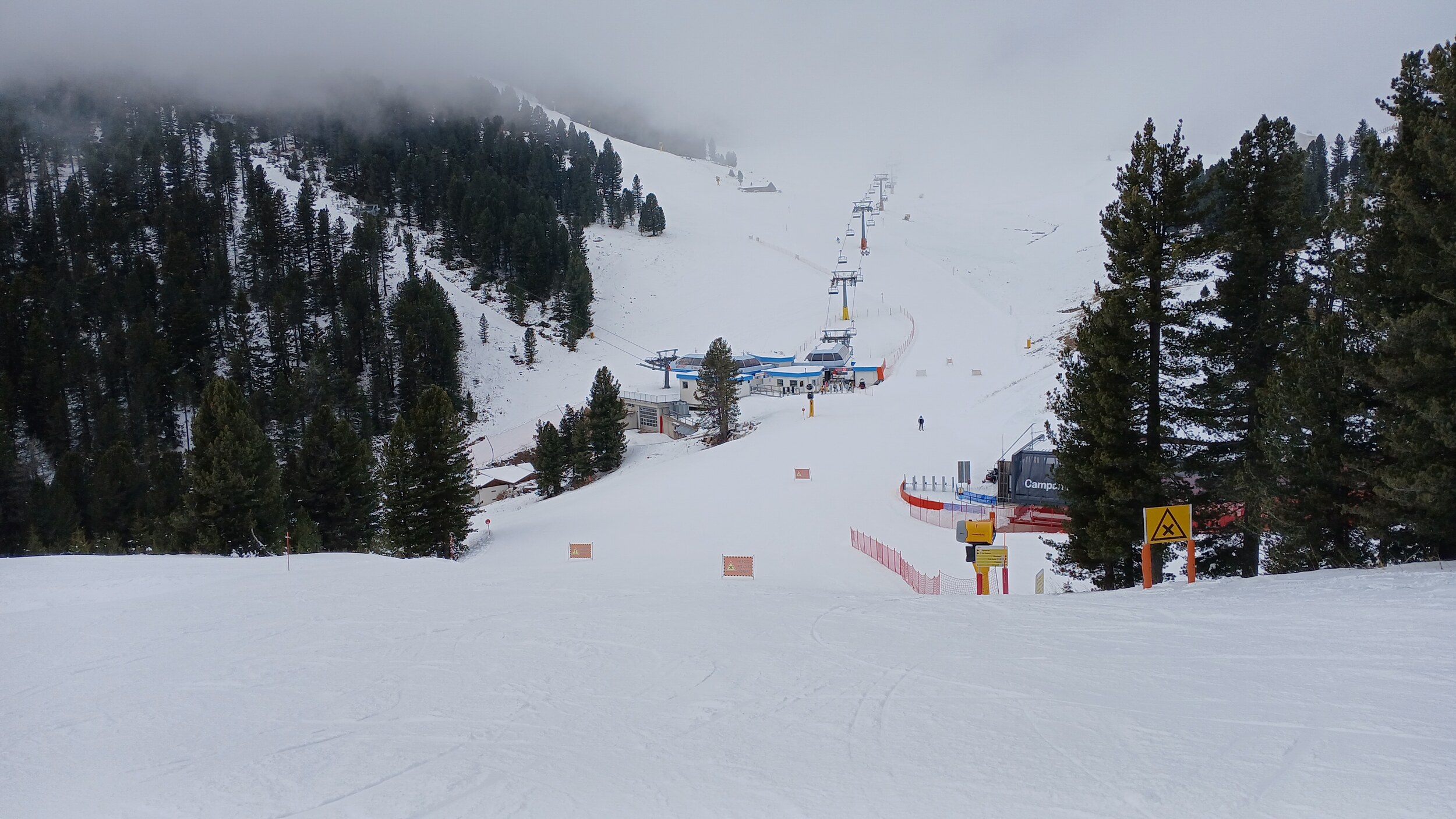 Da die Talabfahrt weiter gesperrt war und ich hier zu dieser Uhrzeit und unbekannten Präparierungszustand nichts riskieren wollte, ging es, bevor ich schweren Herzens das dritte Mal mit einer Gondel heute ins Tal fuhr noch auf die durchaus schöne Piste zur Buffaure di sotto-Sesselbahn.