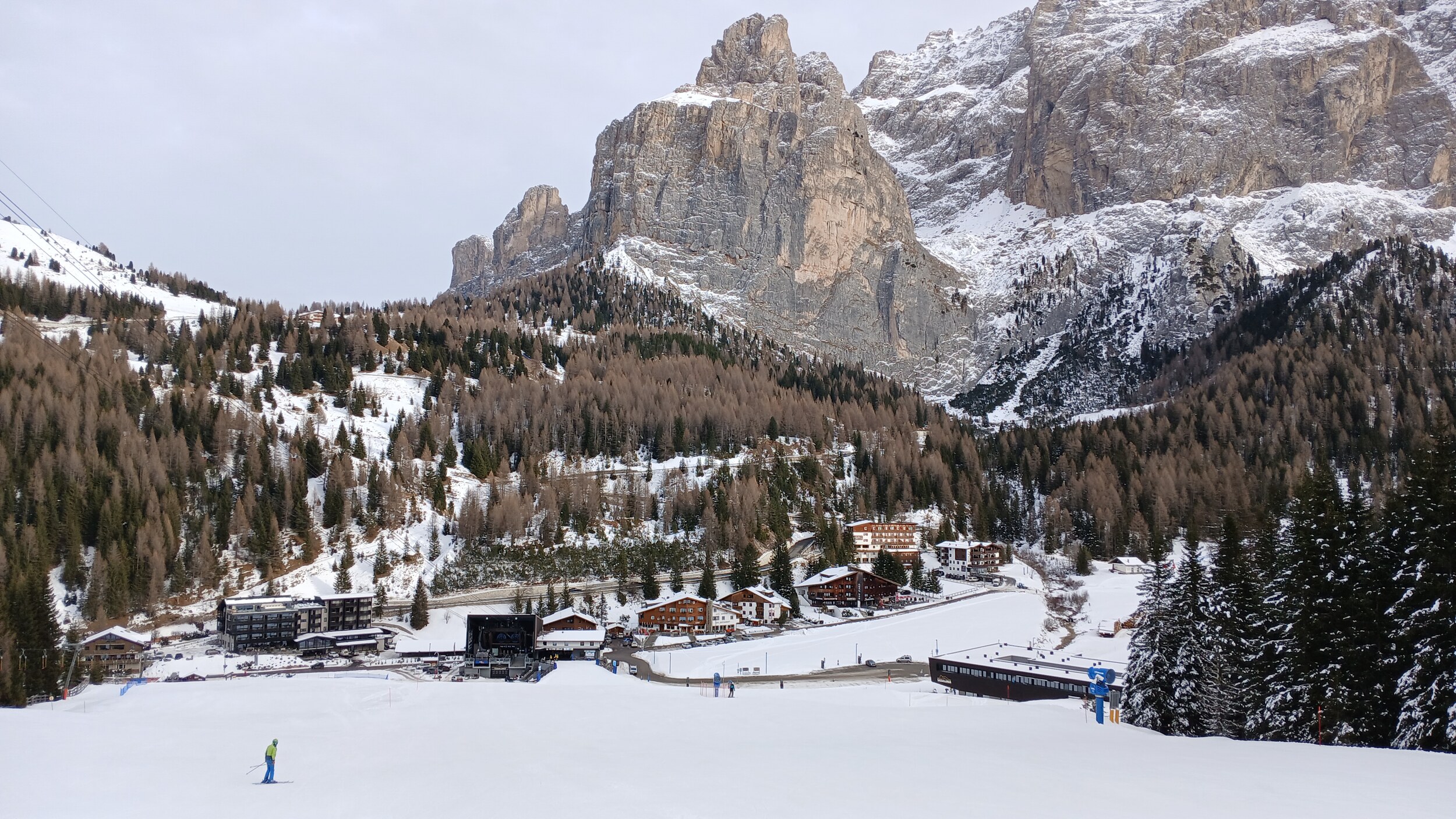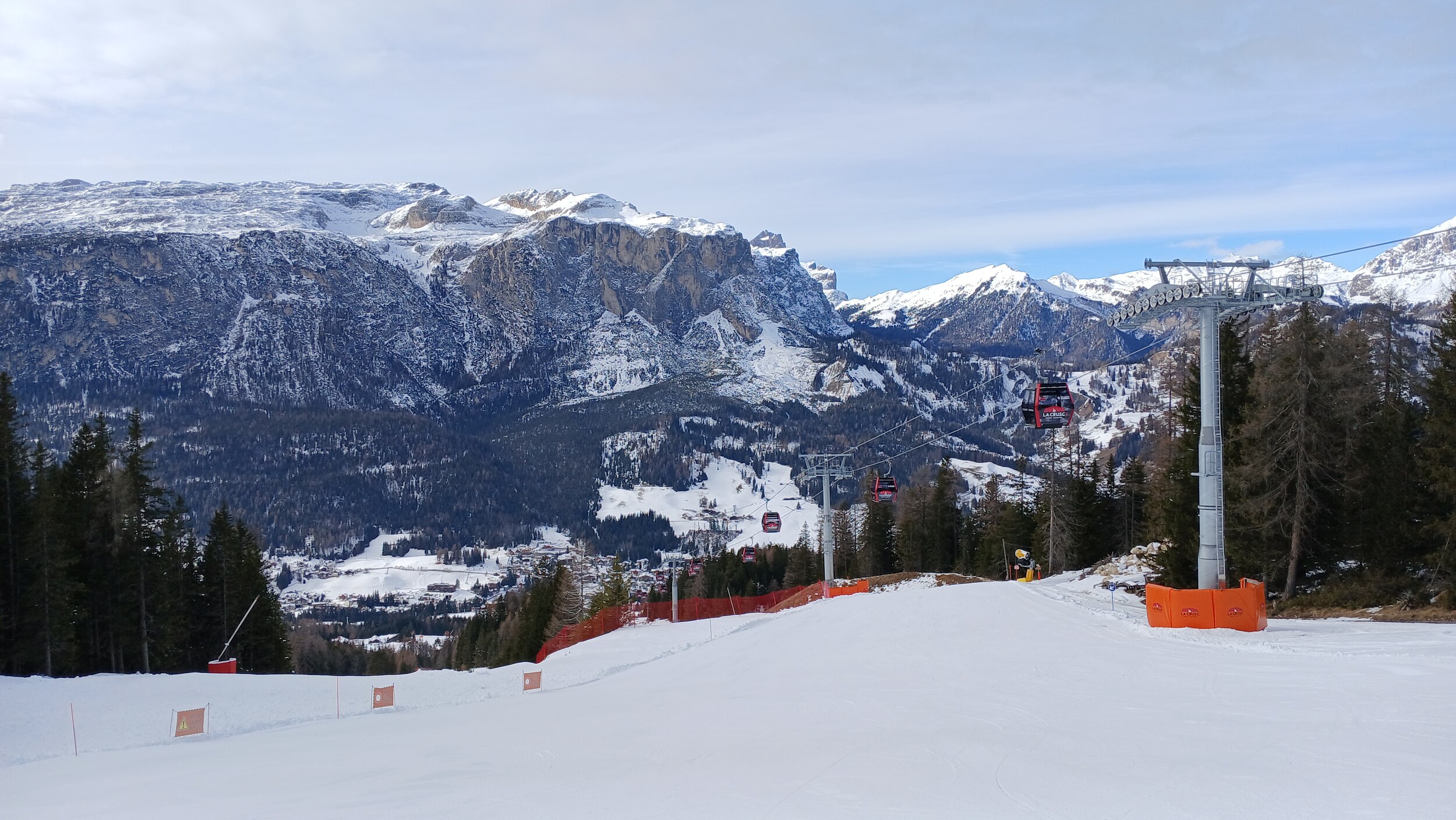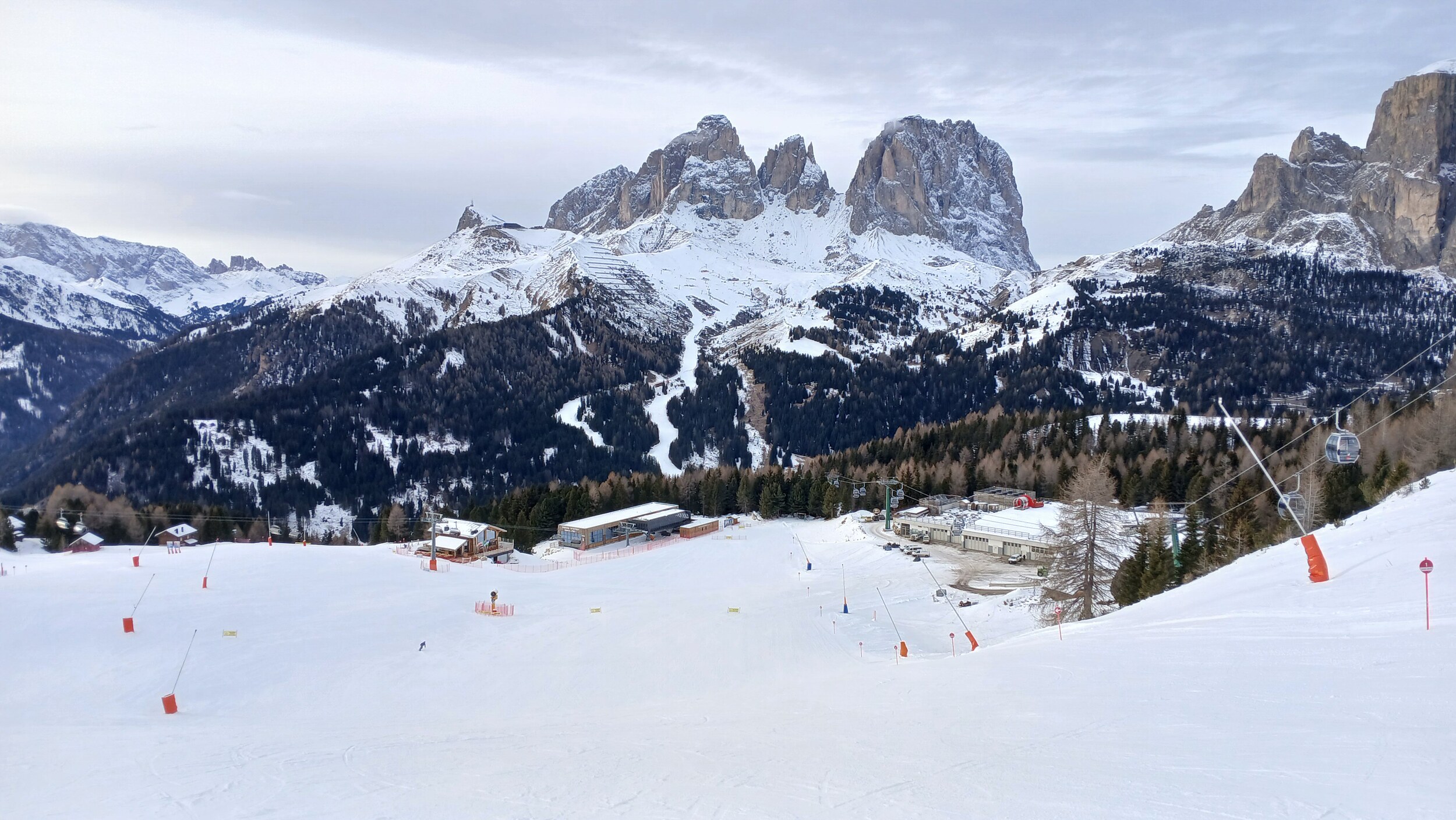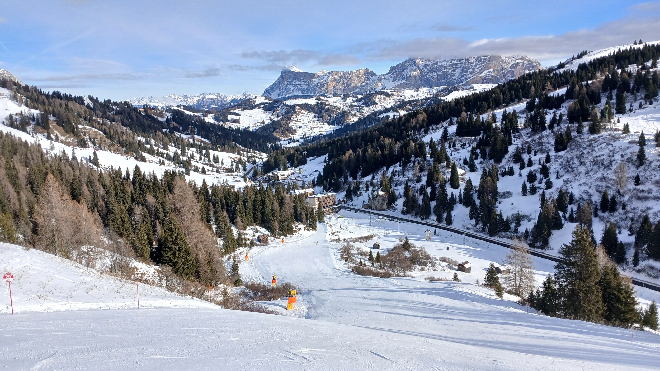 Es war ein sehr schönes Gefühl, endlich wieder in einem wirklichen Großskigebiet Runden drehen zu können. Dafür sind die Dolomiten einfach perfekt. Die Bedingungen waren für einen ersten Betriebstag sehr gut, wenngleich die Pisten - wie erwartet - doch teilweise unruhig und hart und stellenweise knollig waren.