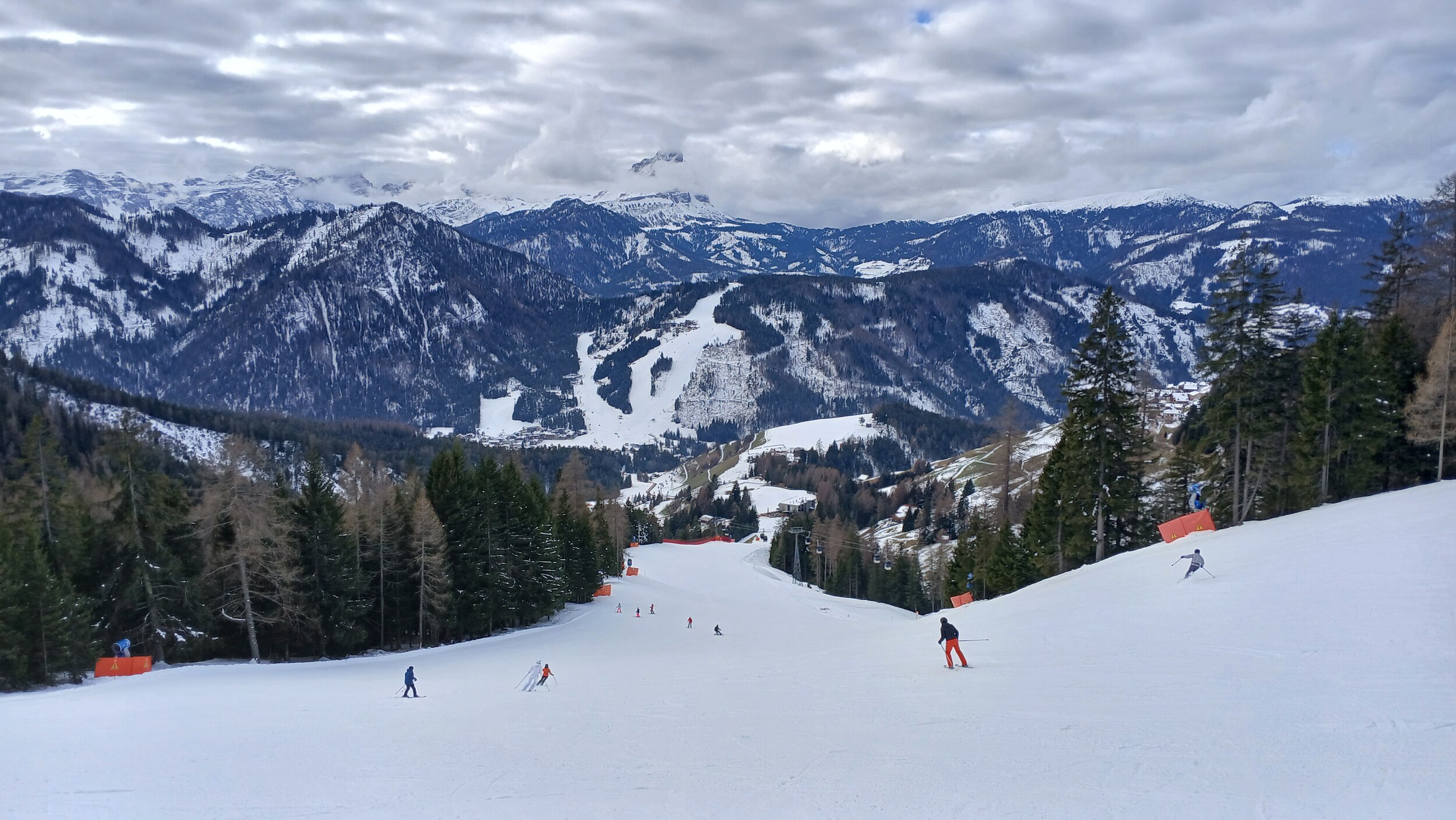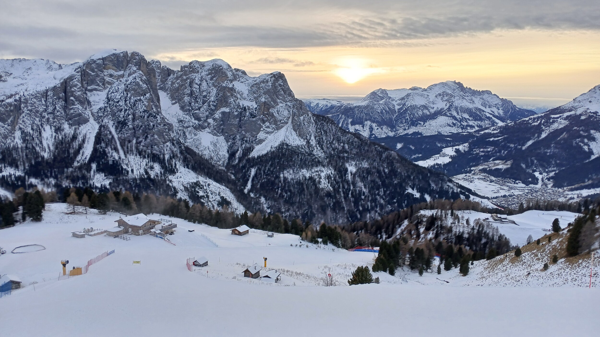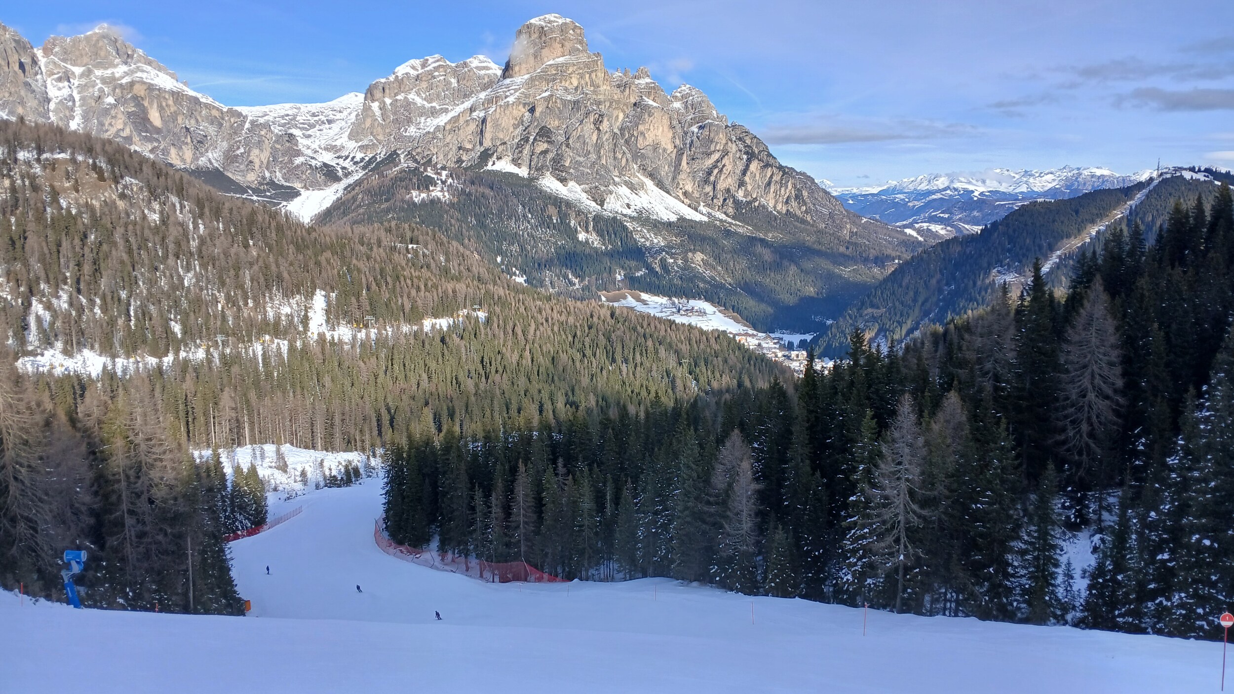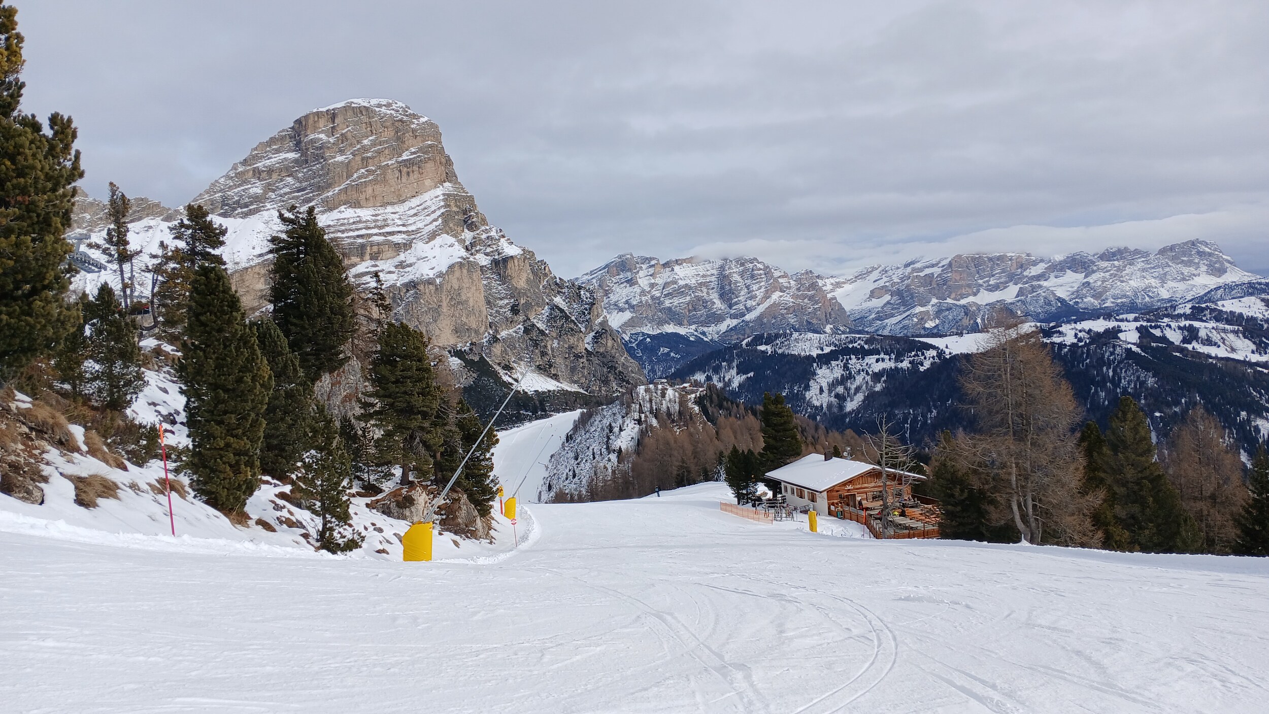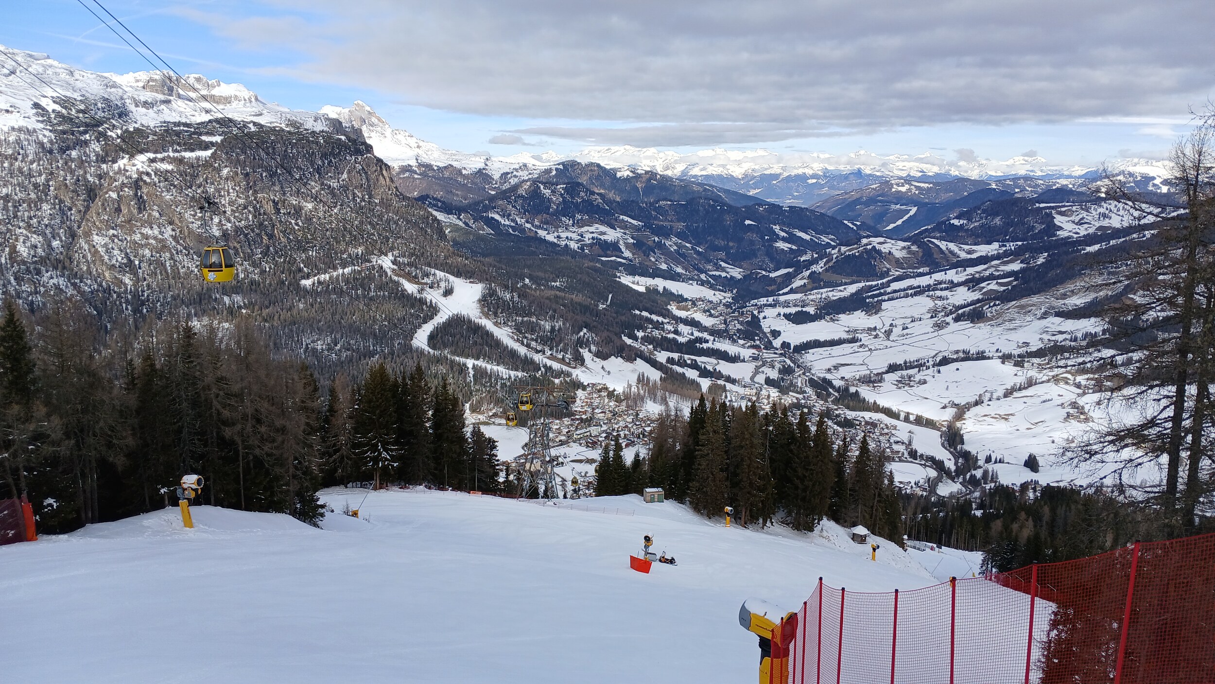 Es war ein sehr schönes Gefühl, endlich wieder in einem wirklichen Großskigebiet Runden drehen zu können. Dafür sind die Dolomiten einfach perfekt. Die Bedingungen waren für einen ersten Betriebstag sehr gut, wenngleich die Pisten - wie erwartet - doch teilweise unruhig und hart und stellenweise knollig waren.