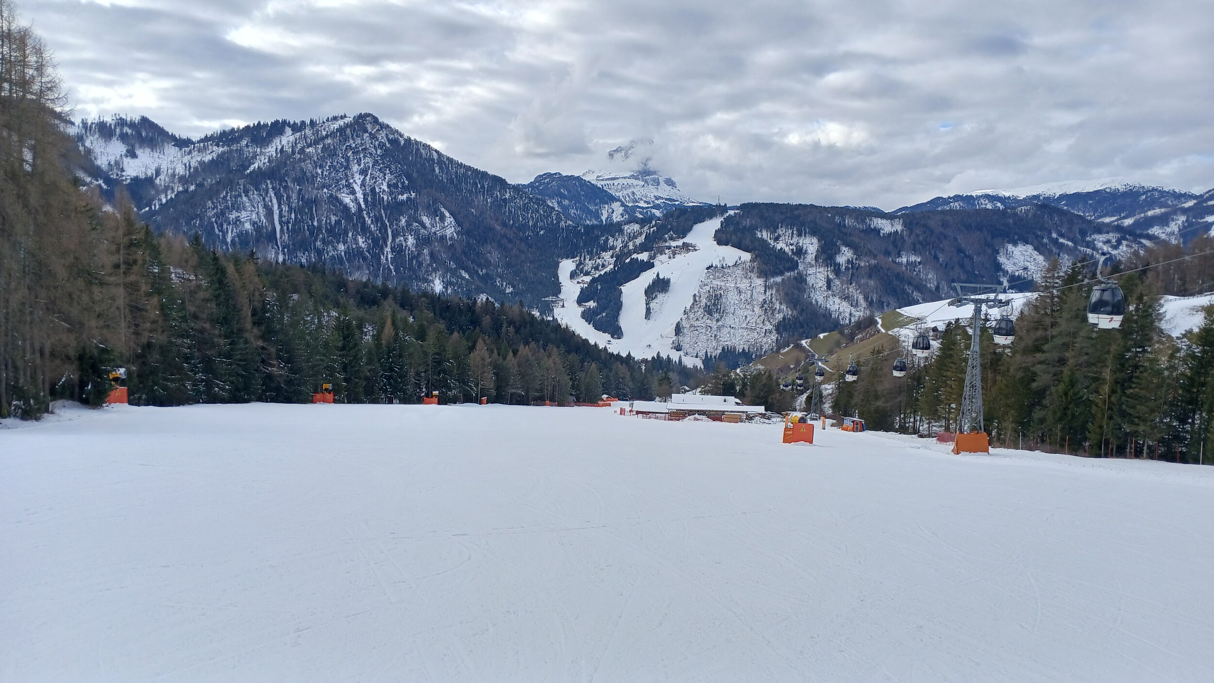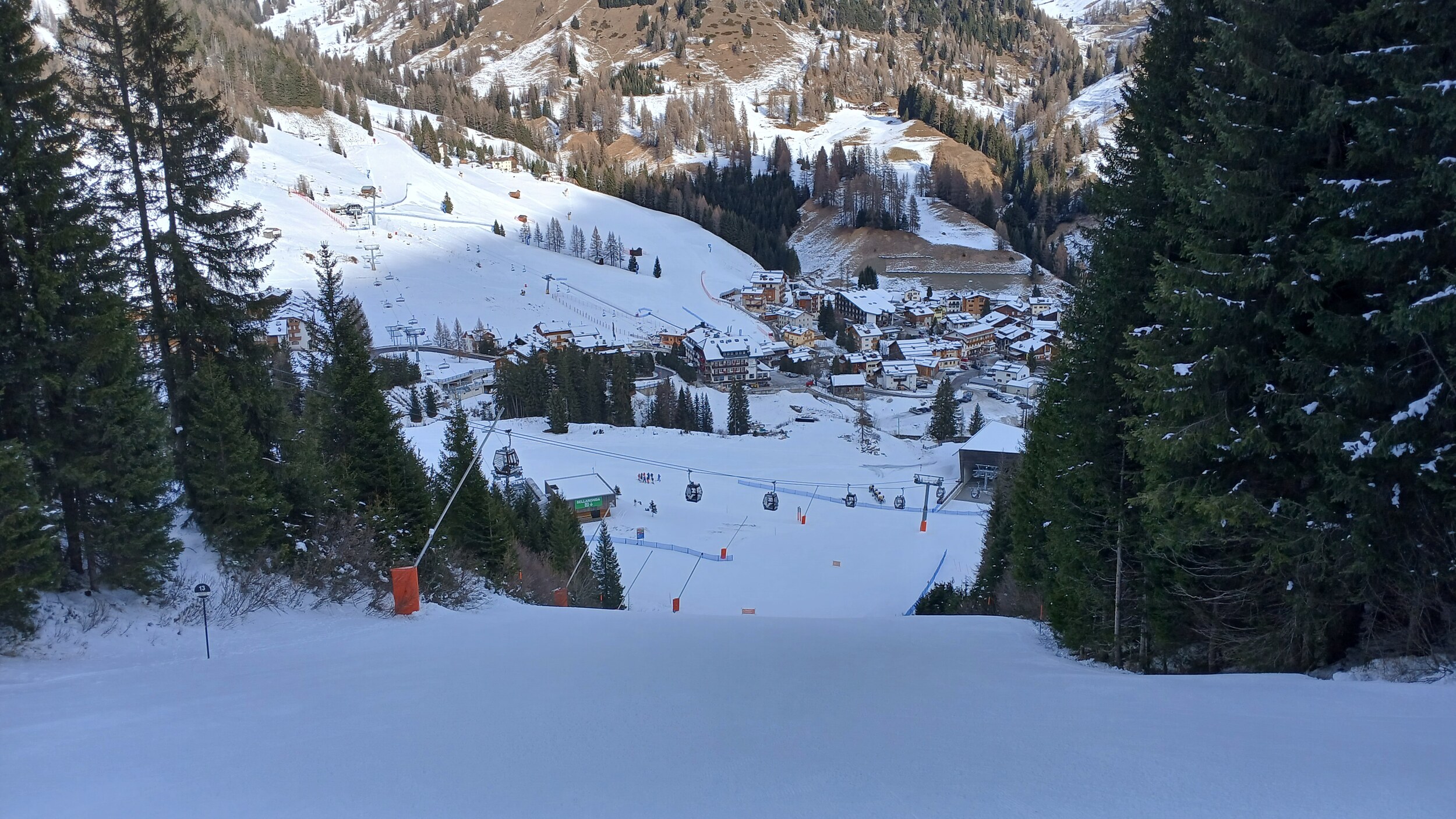Die Lezuo-Abfahrt war ohne Erschließungsanlage natürlich herrlich leer, nur etwas arg hart