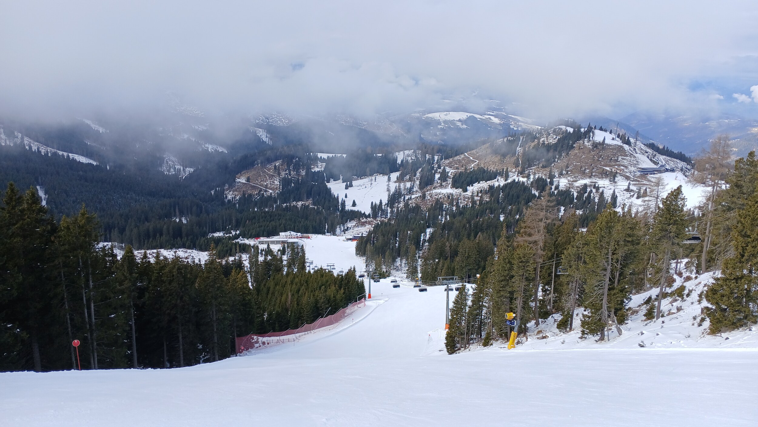 Der direkte obere Teil der Hasenköpfl-Abfahrt war der einzige Teil der Pisten im Skigebiet, die nicht gut war. Ich denke, man sieht es auch im Bild.