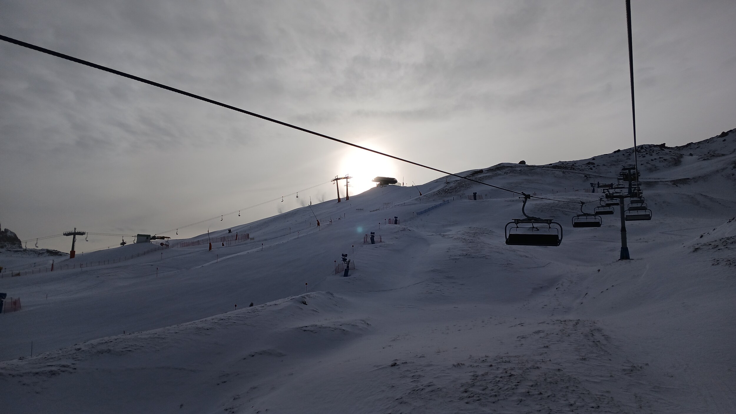 Pistenstart Belvedere, nachdem ich endlich dort ankommen durfte und sich ausreichend viele Mitfahrer gefunden hatten...