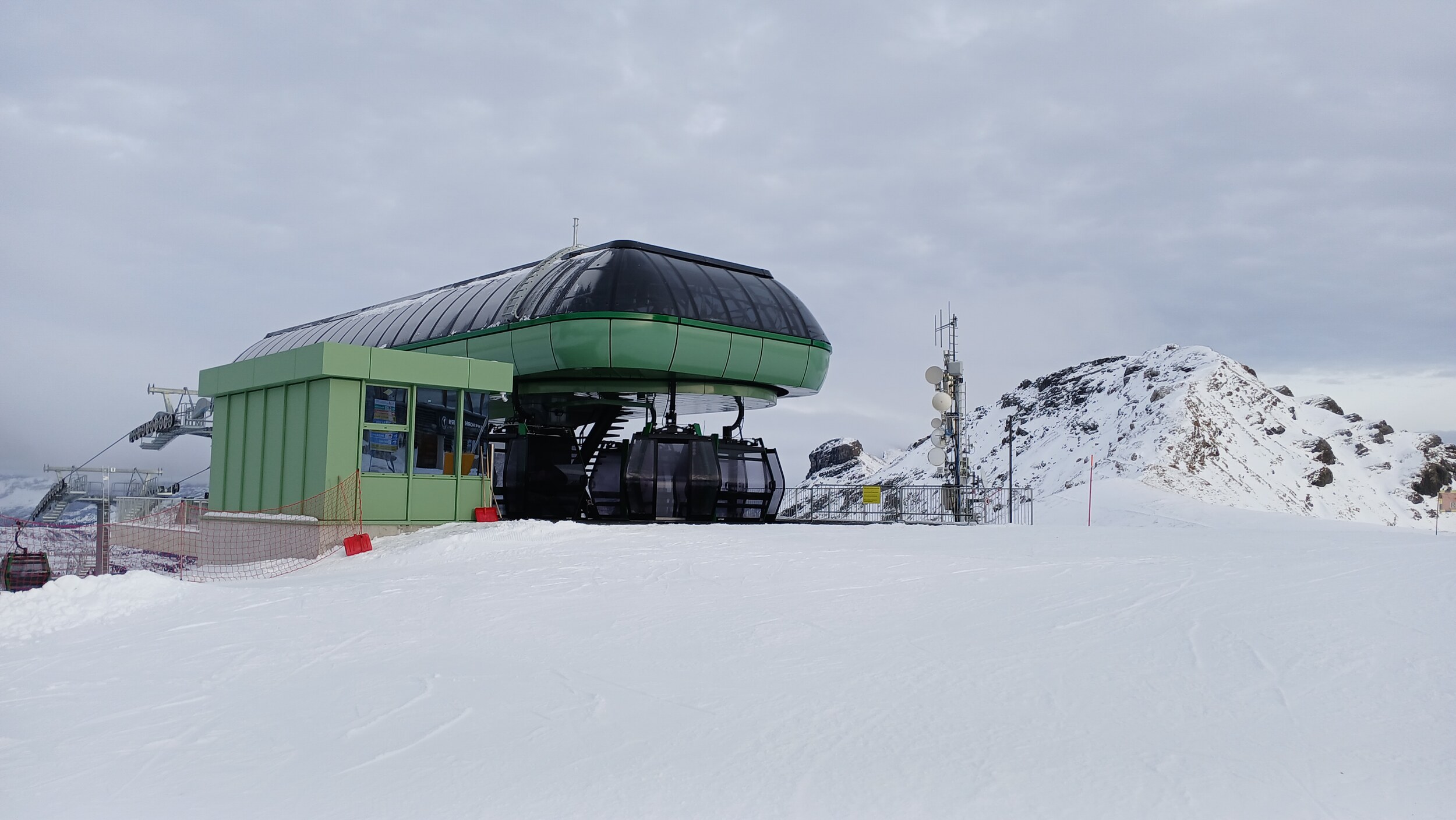 Bergstation der neuen Gondelbahn. Die Bahn ist gut geworden.
