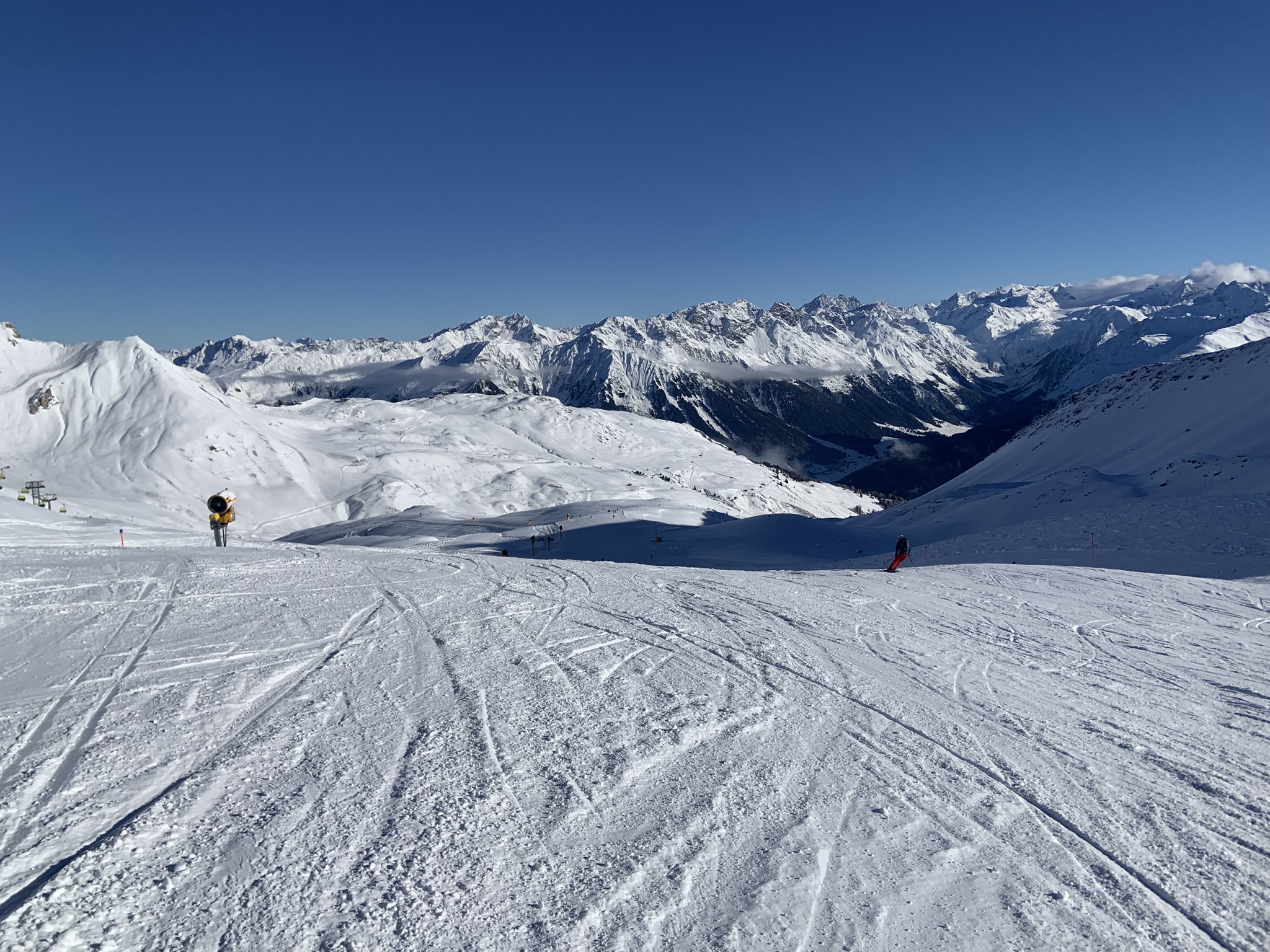 Dafür gab am Montag (01.12.) und Dienstag (02.12.) zwei traumhafte Skitage am Parsenn. Ich will gar nicht viele Worte machen und hoffe, dass die Bilder für sich sprechen. Schnee, Sonne ausreichend geöffnete Pisten, unendliche Blicke auf die Schweizer Bergwelt und kein Andrang. Einziger Wermutstropfen war, dass die Schiferbahn und die dazugehörigen Pisten noch nicht geöffnet waren.