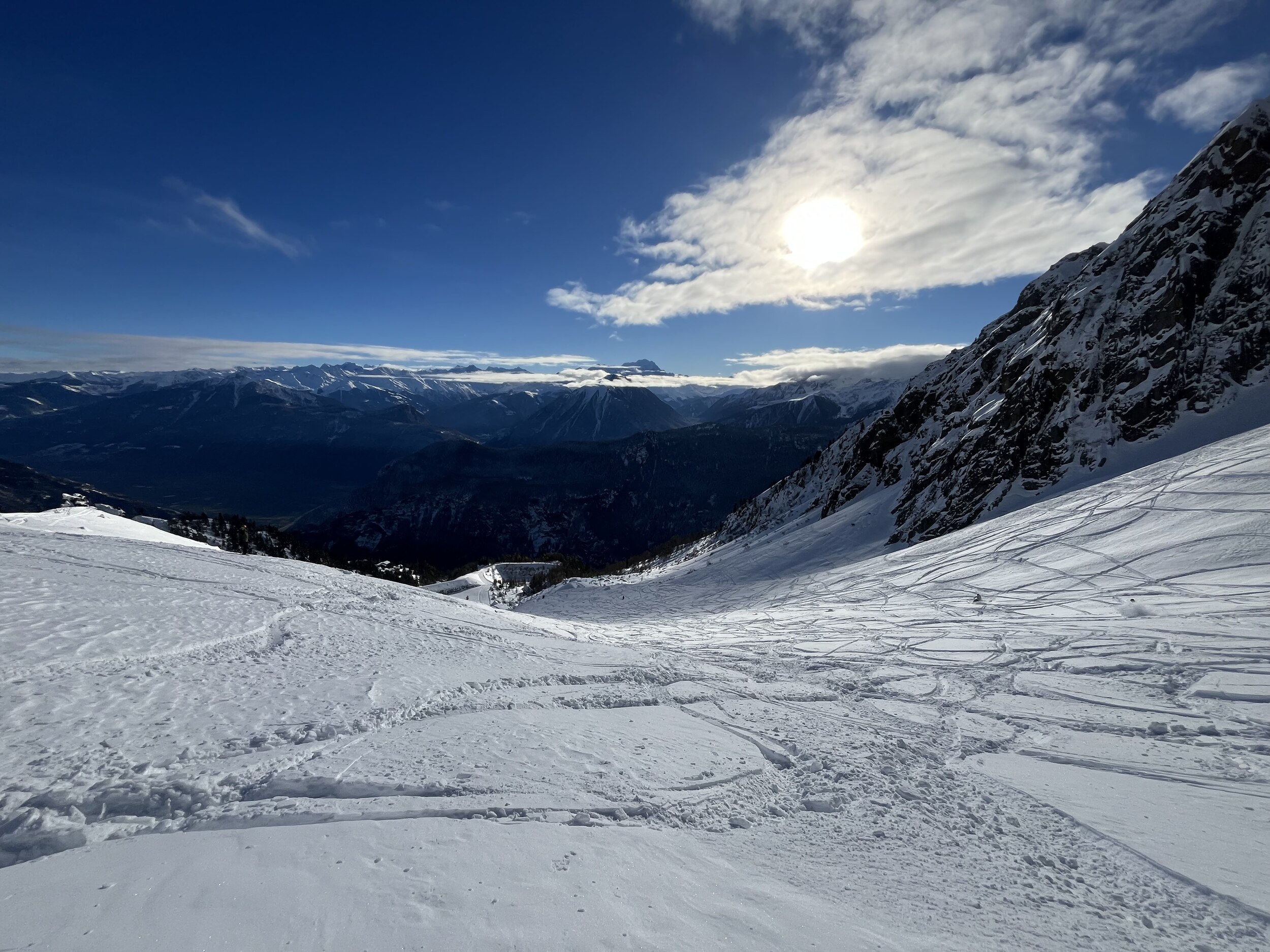 Krasse Schneehöhe, da ist Graubünden neidisch: Es gibt leider auf der Piste einige ausweichbare Steine, vor den Sessel gibt es am Ende des Tages doch ein Minenfeld: Das waren zwei wunderbare Tage in der Romandie, mene erste mehrtägige Skireise, die ich alleine unternommen habe.