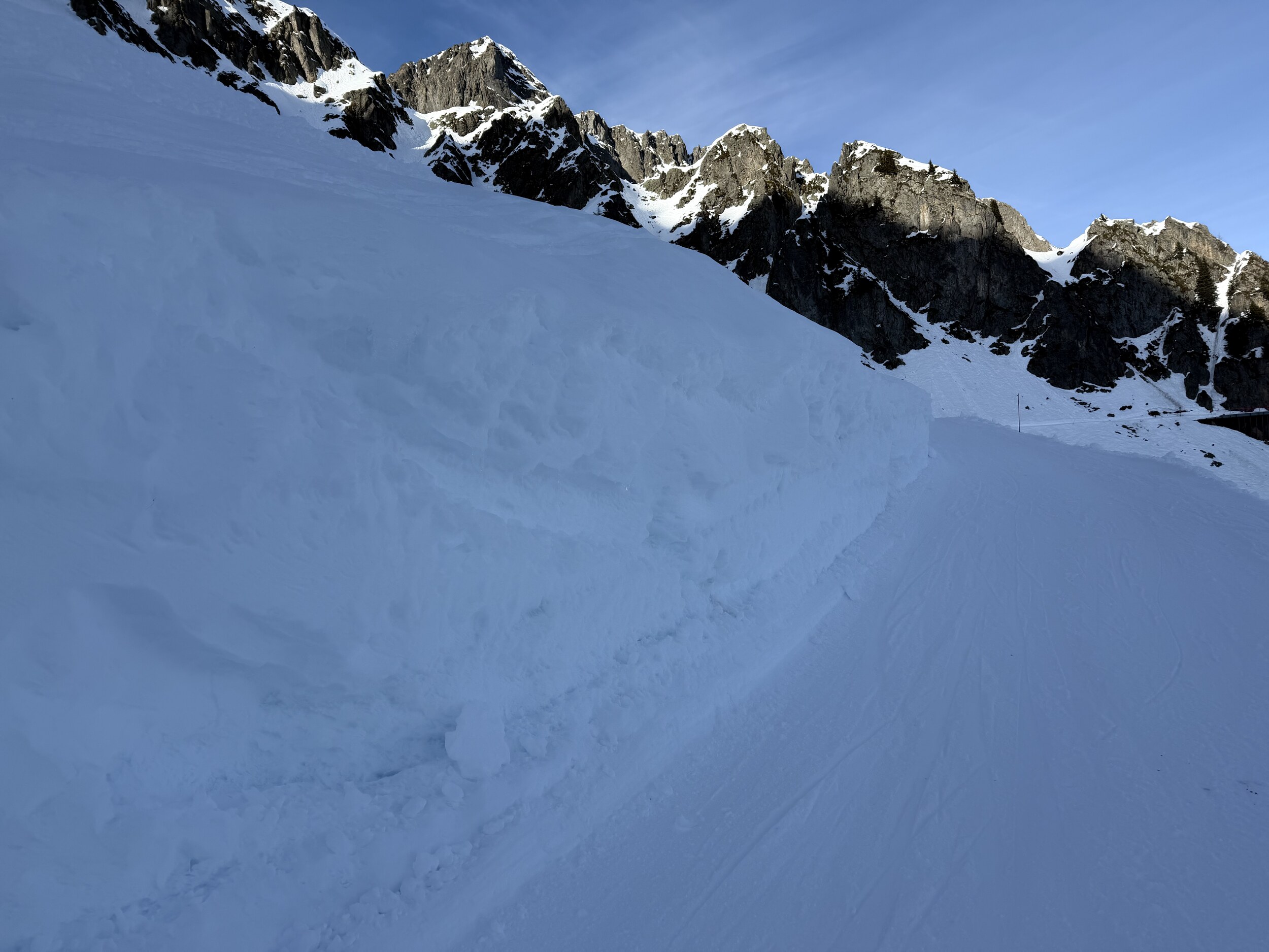 Gestern war es gespenstisch leer im Gebiet, es gab definitiv mehr Tourengeher als reguläre Skifahrer. Aber auch der off-piste-Schnee wirkte nicht sehr spassig.