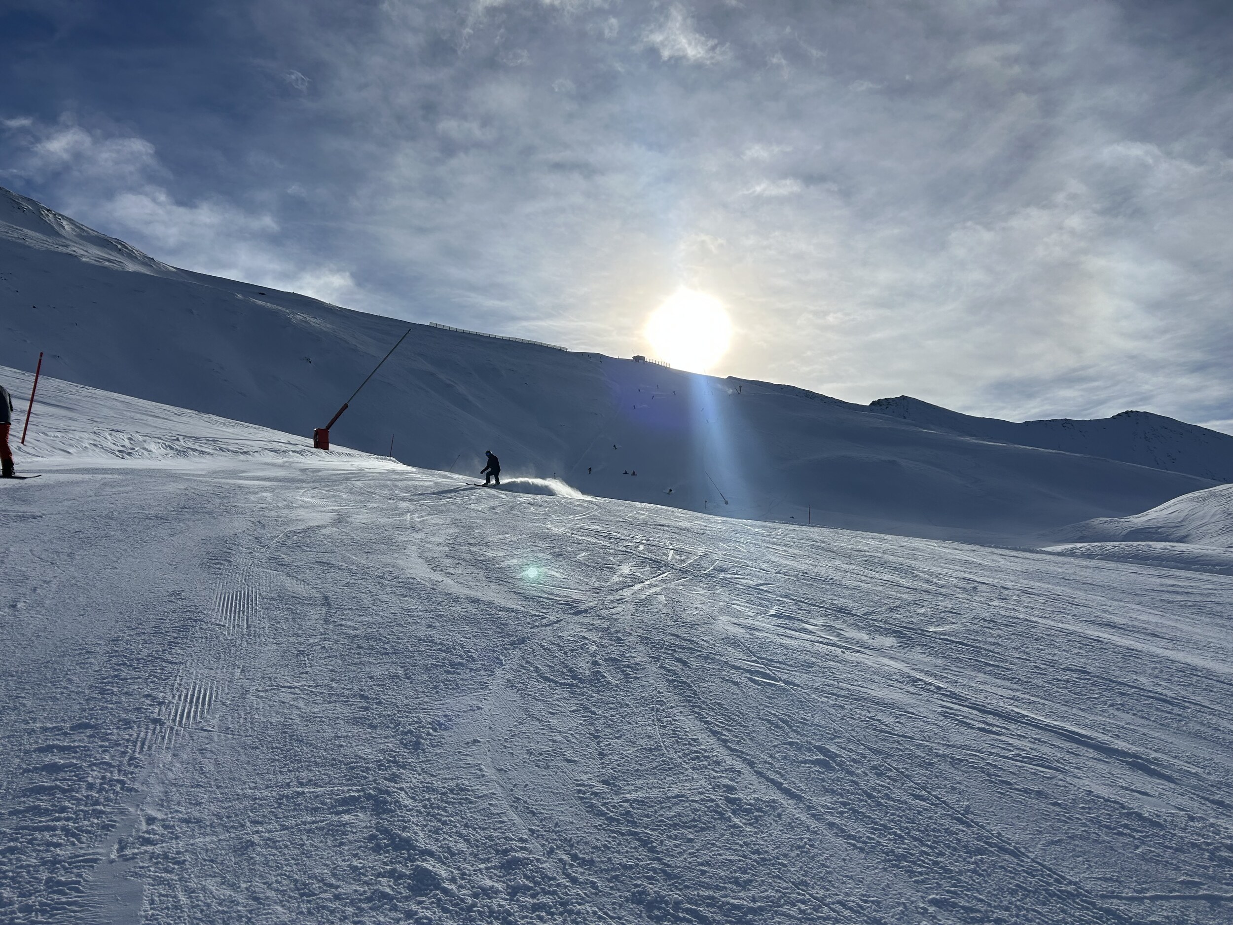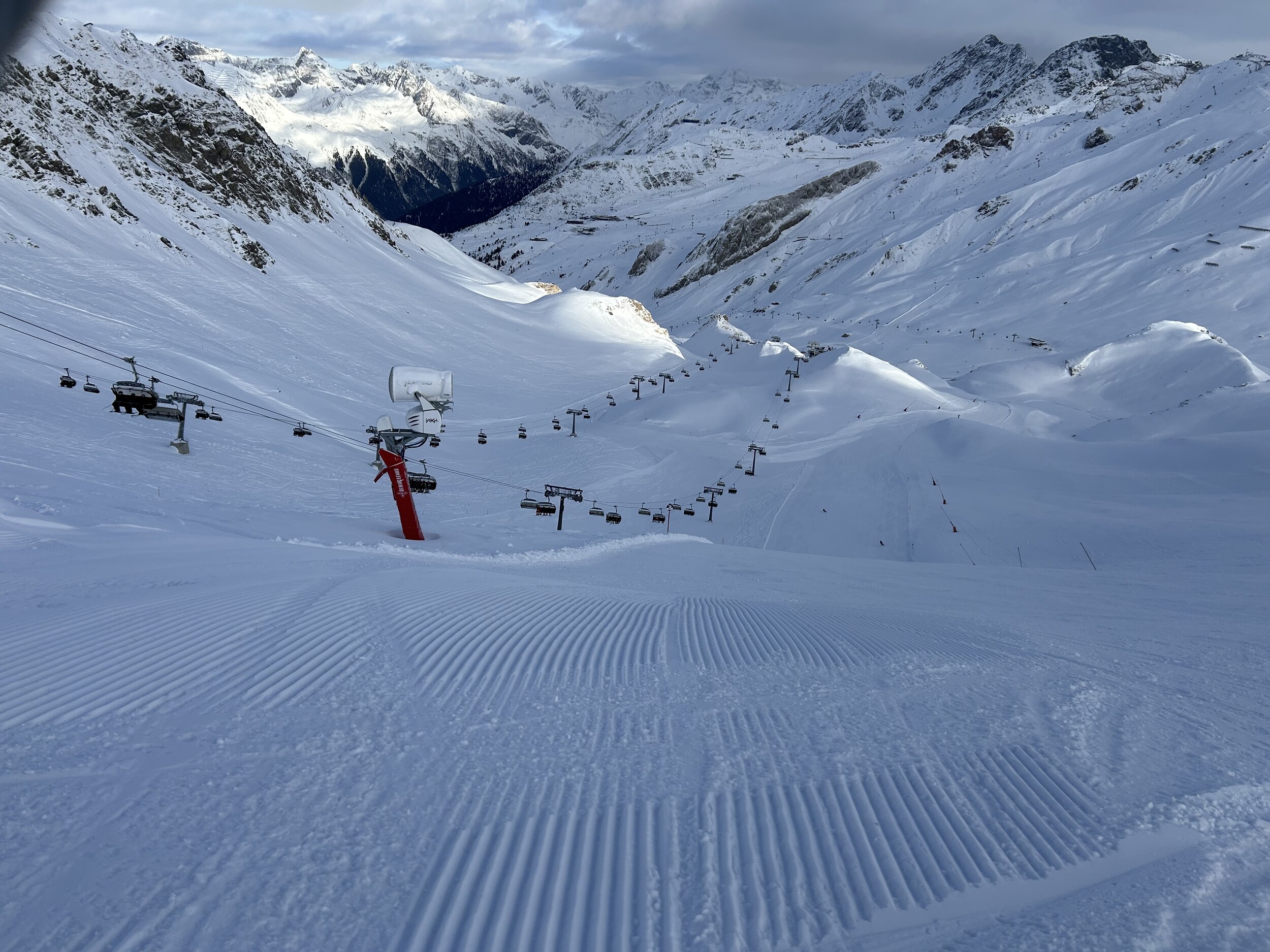 "Fimba Bahn erstmal mit Russen geteilt, die zwar wie immer laut schreien wenn sie sprechen, dafür haben sie ein „Guten Morgen“ raus gebracht. Und die Kombination einer frischen Orange mit Wodka kannte ich so auch nicht, hab aber nichts angeboten bekommen. Da waren die Rumänen in Sölden spendabler