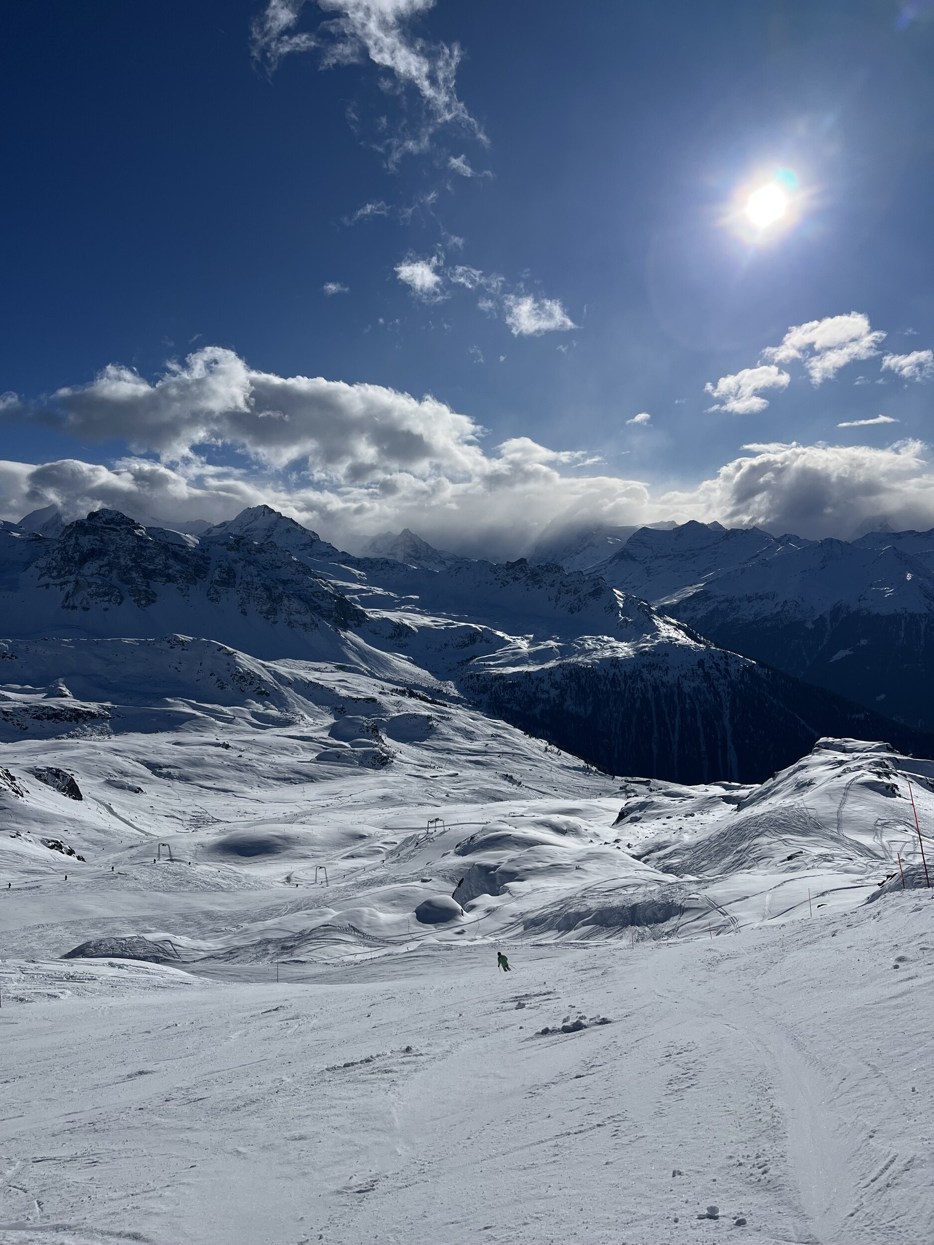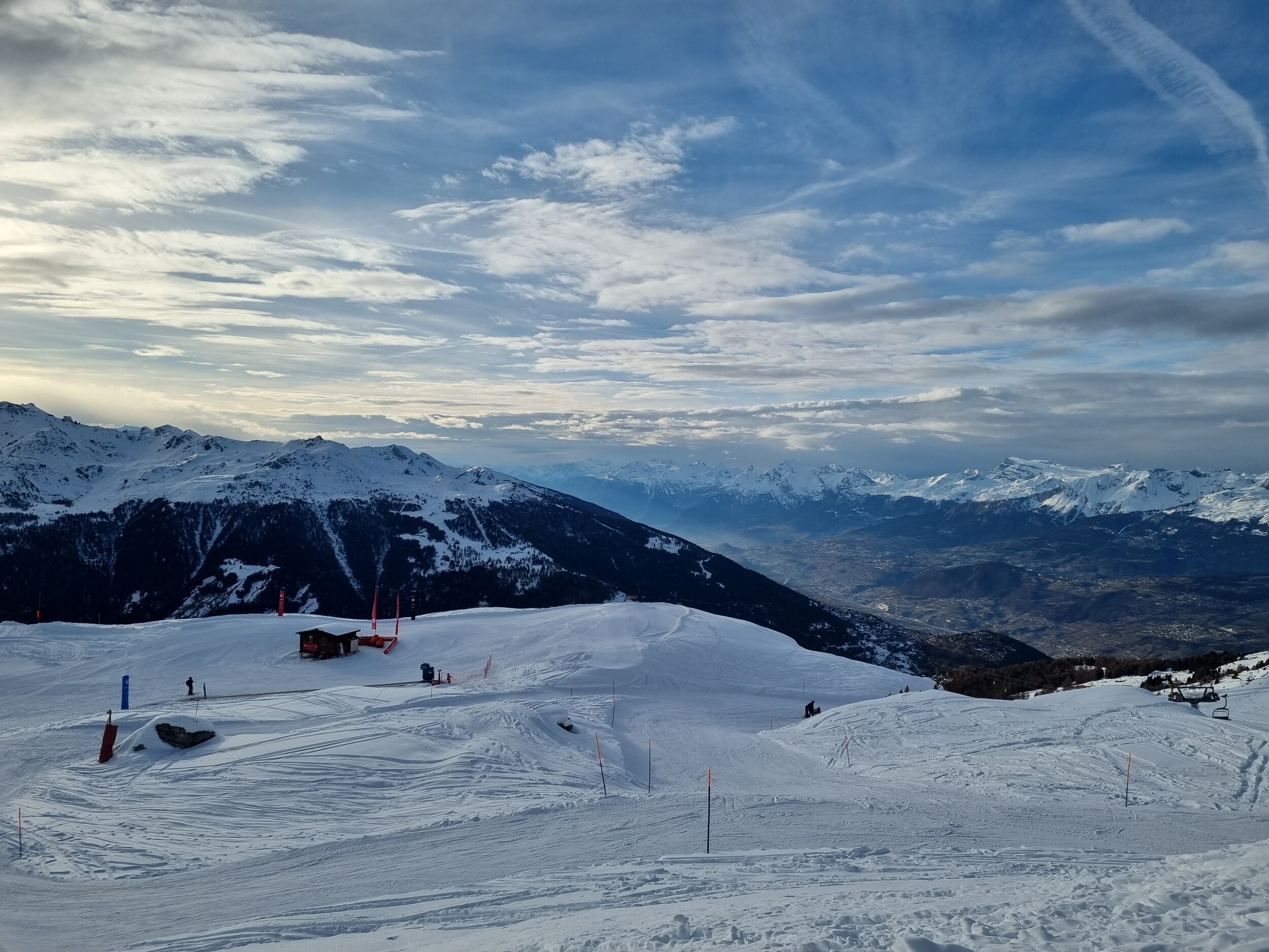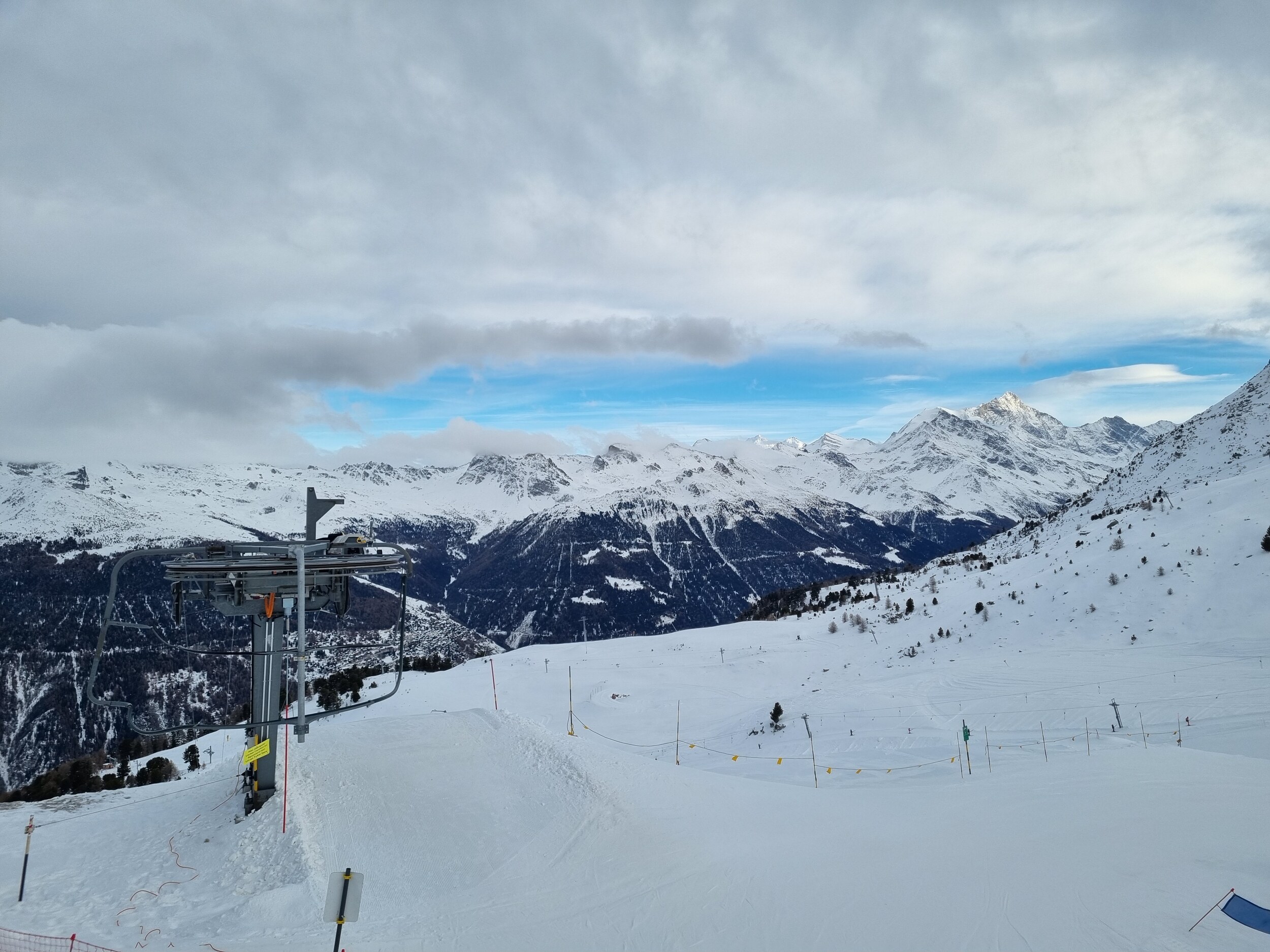 Heute war ich zum ersten Mal in dieser Saison in Grimentz-Zinal. Es war ein ziemlich guter Tag: keine Überfüllung, und der Schnee ist auf allen Pisten gut genug – mit Ausnahme der Talabfahrt nach Grimentz, die etwas bröselig war, sowie der Arête-Piste, die etwas rutschig ist.