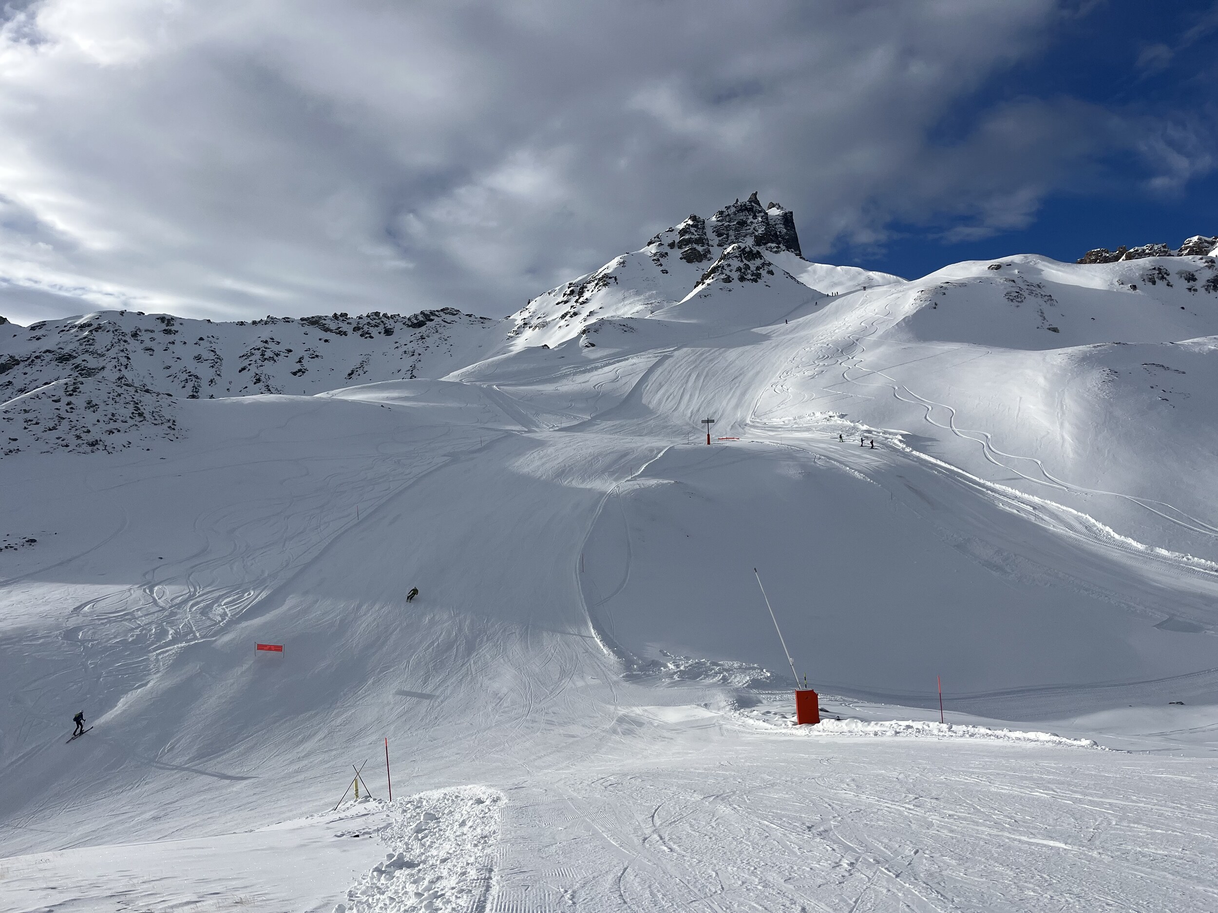 Die Präparation ist wie gewohnt sehr gut, und die Pisten sind griffig genug – abgesehen von den üblichen Problemstellen. In der Combe Durand liegen ein paar unkritische Steine, ansonsten ist der Schnee dort recht gut. Die schwarze Barthélémy hingegen hat ziemlich viel freiliegenden Fels und ist nicht präpariert. Meiden, wenn man seine Ski nicht beschädigen möchte.