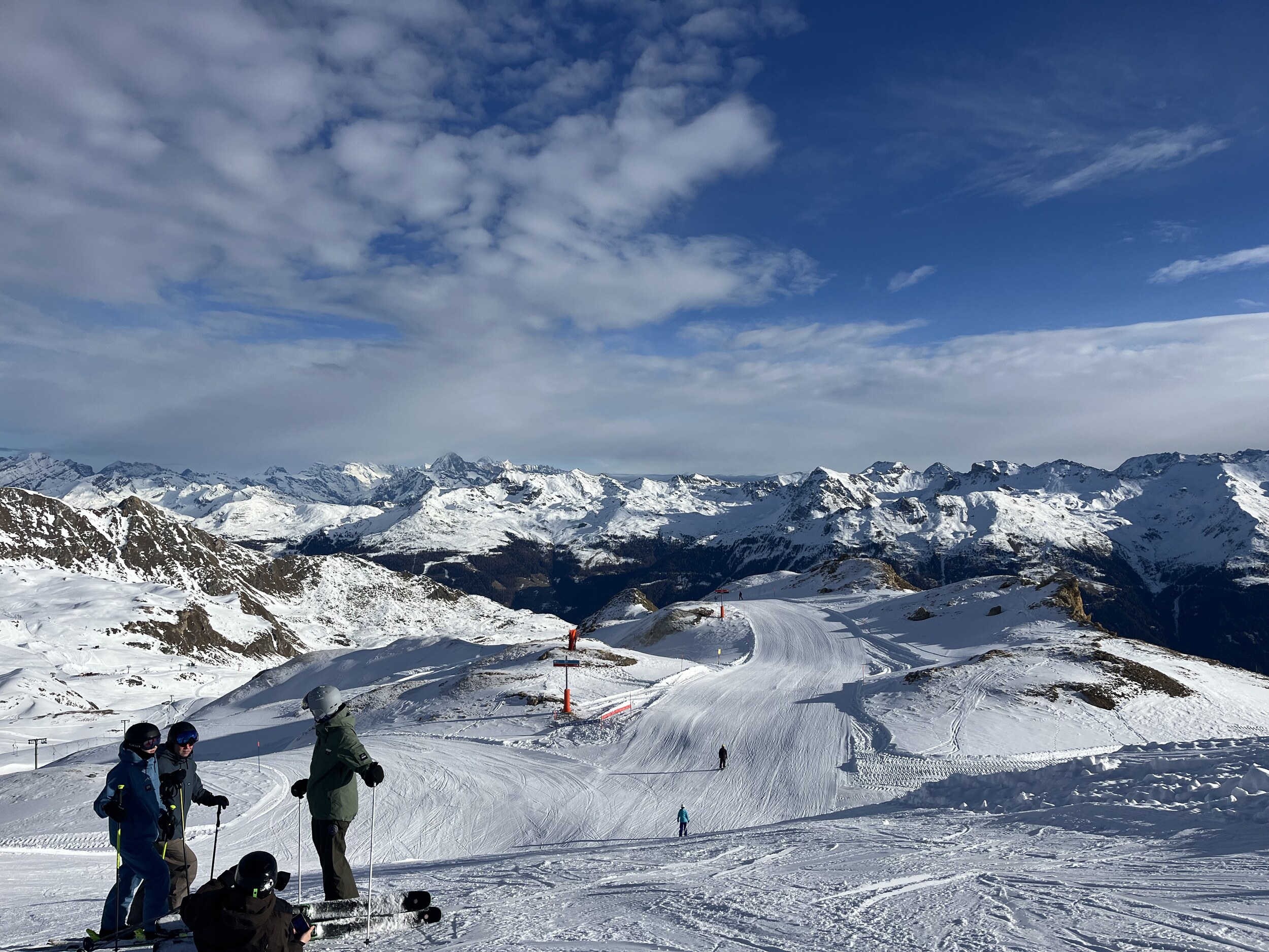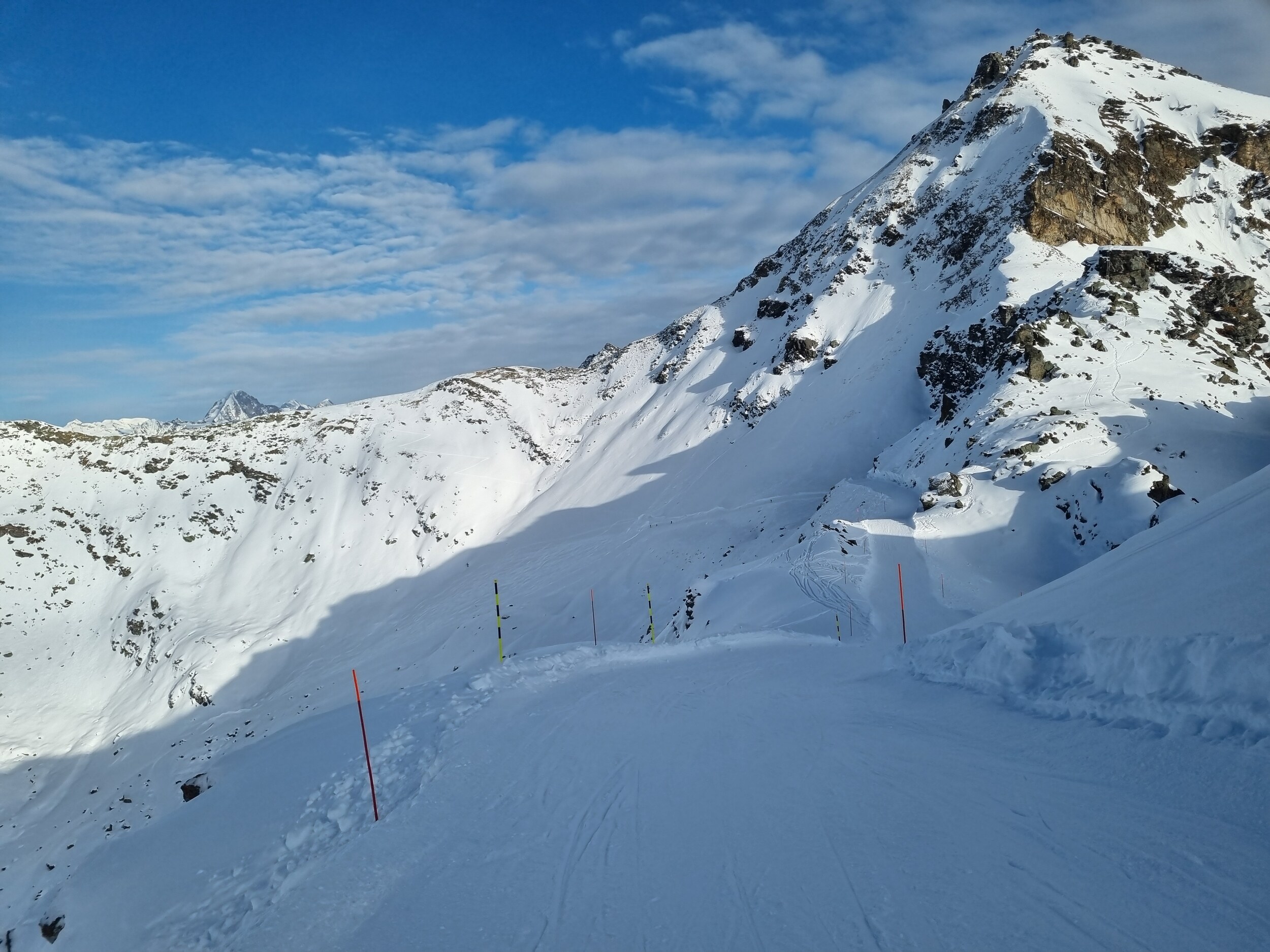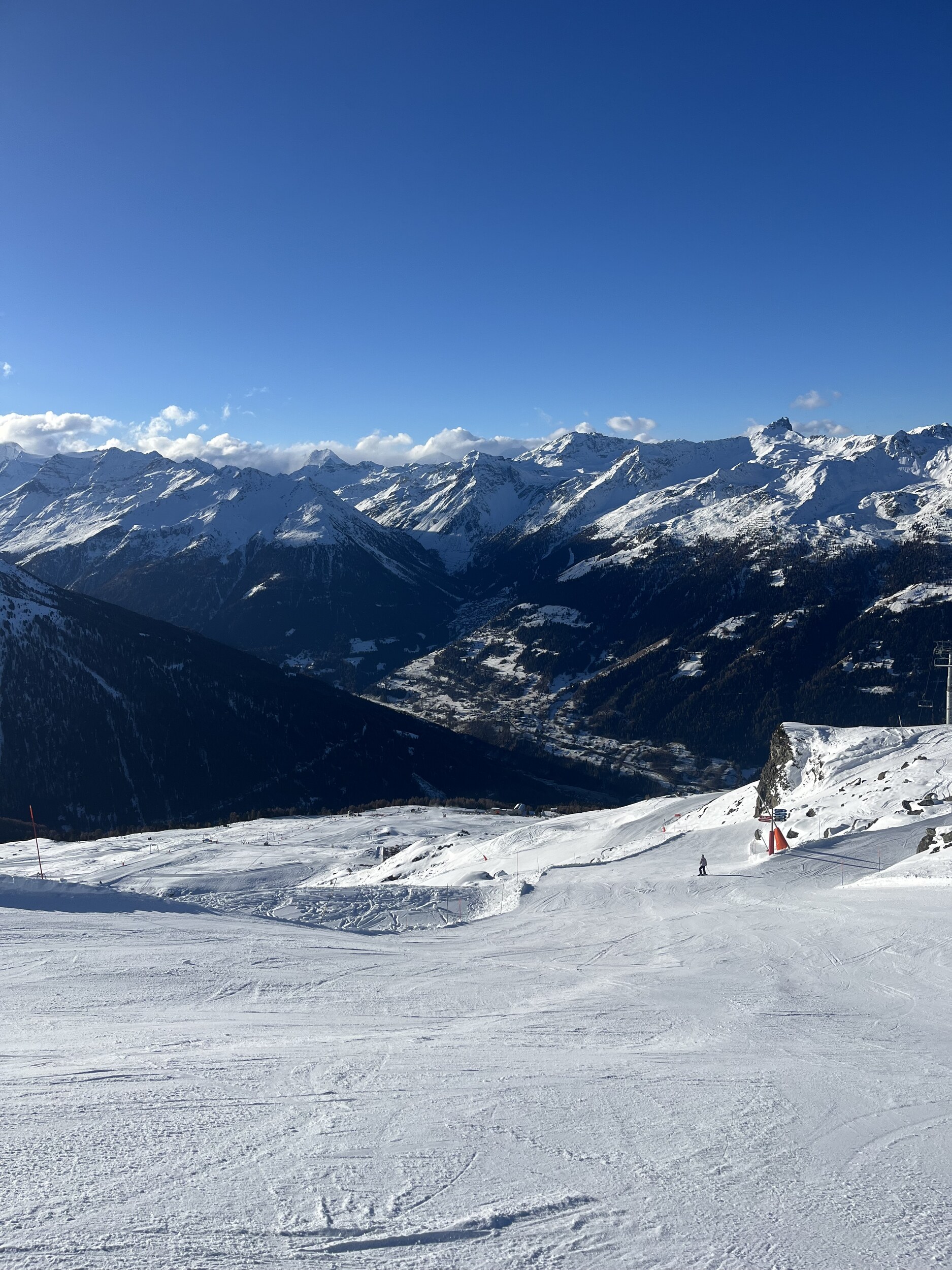 Alle Lifte sind in Betrieb, ausser dem SL Durand, der den ganzen Tag als «in Vorbereitung» angezeigt wurde. Ich bin mir nicht sicher, welche Pisten dort noch geöffnet werden sollen. Die schwarze Barthélémy wurde präpariert, scheint aber in der unteren Hälfte noch einige dunkle Stellen zu haben. Der SL Lona war heute zum ersten Mal in dieser Saison offen, allerdings gibt es auf der Lona-Piste noch keine sichtbaren Präparationsspuren. Der obere Teil der blauen Bonvin ist grundsätzlich präpariert, der steile untere Abschnitt hingegen noch nicht.