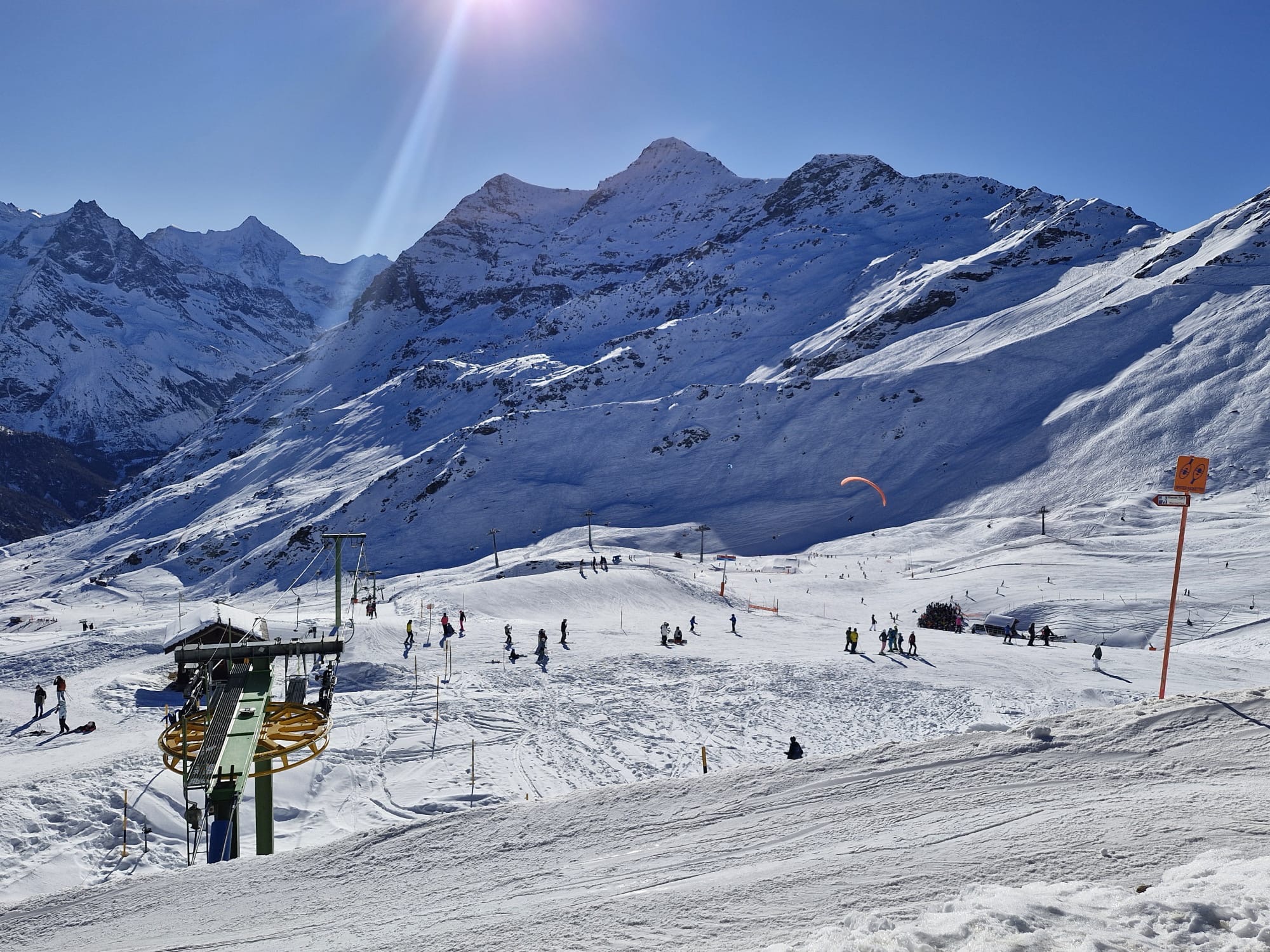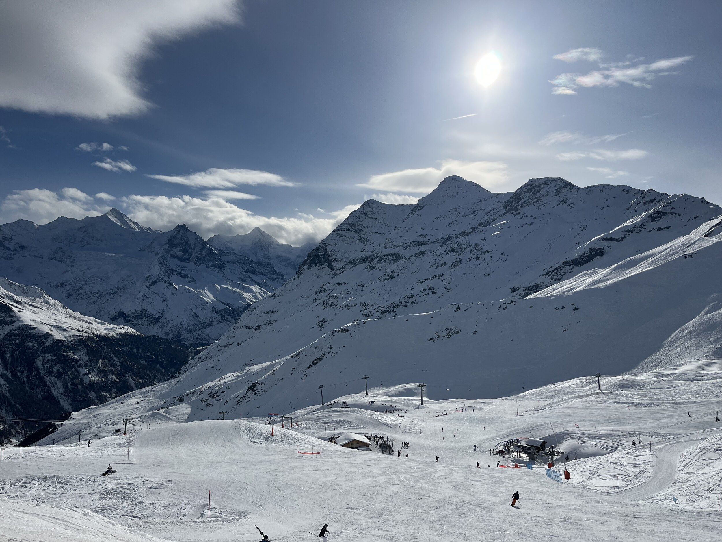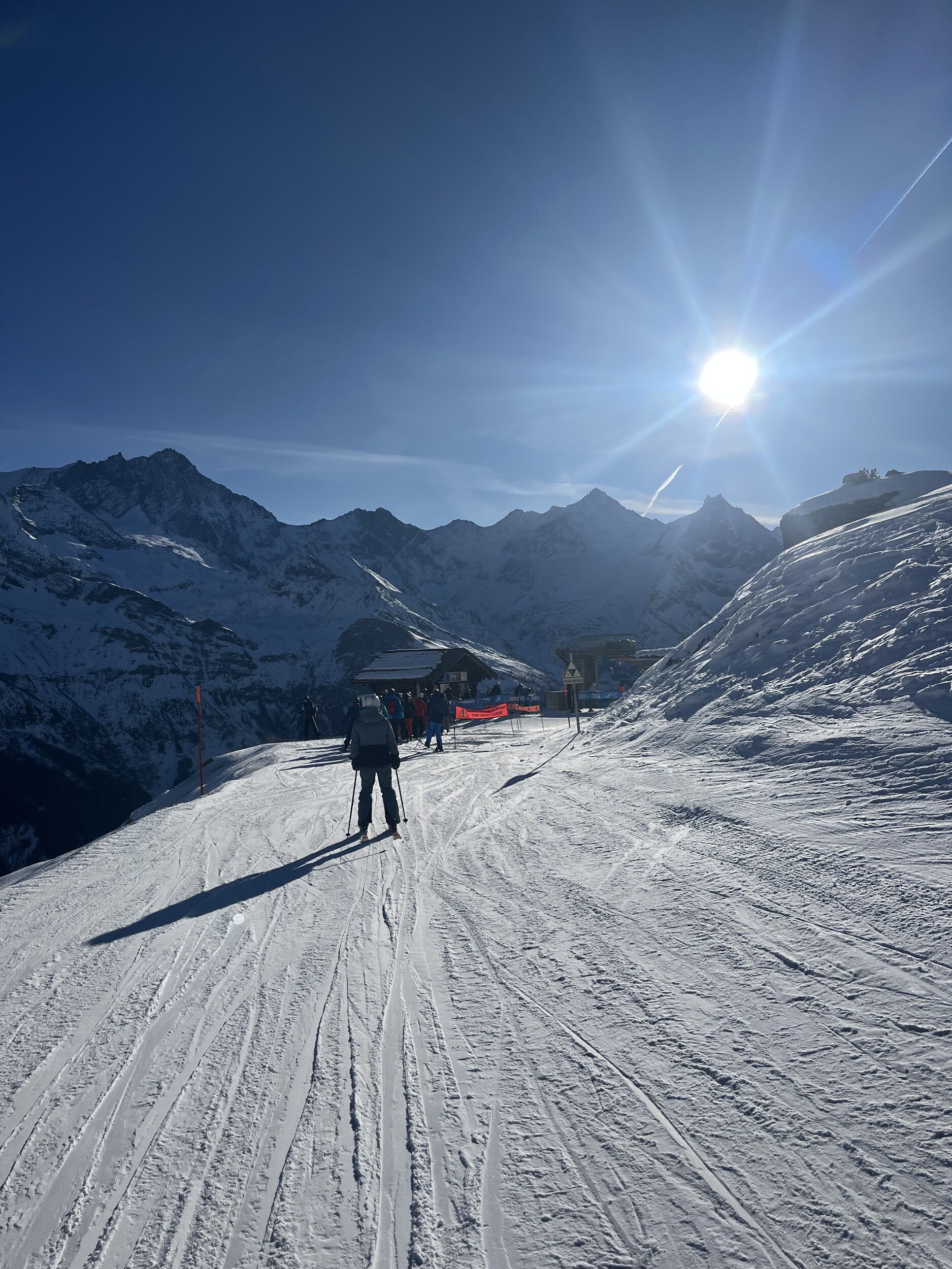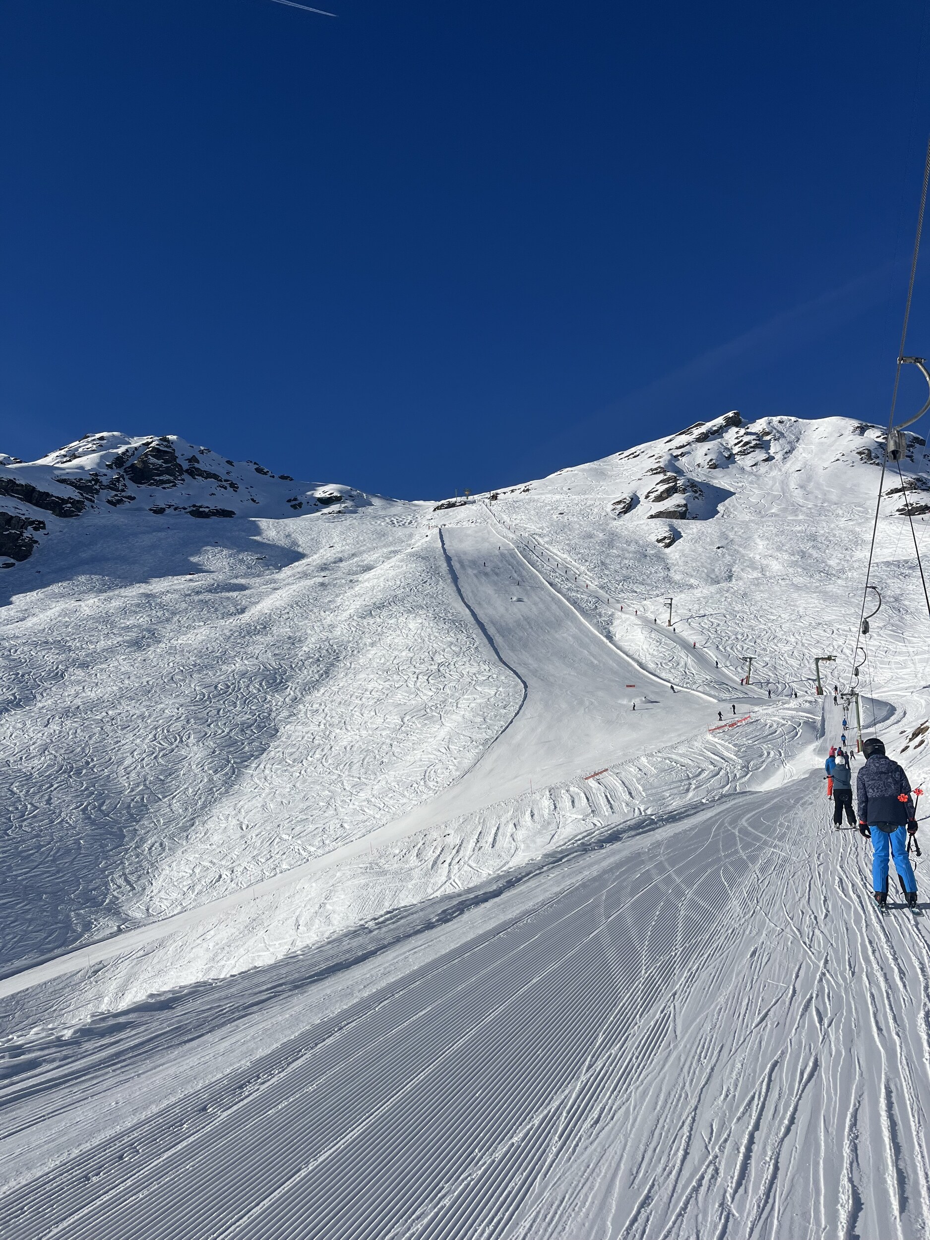 Heute bin ich ausschliesslich in Zinal Ski gefahren. Es war insgesamt nicht zu überfüllt, besonders vor 11 Uhr. Die Wartezeiten an den Liften sind kürzer als an einem typischen Januar-Wochenende, am deutlichsten merkt man das beim SL Durand.